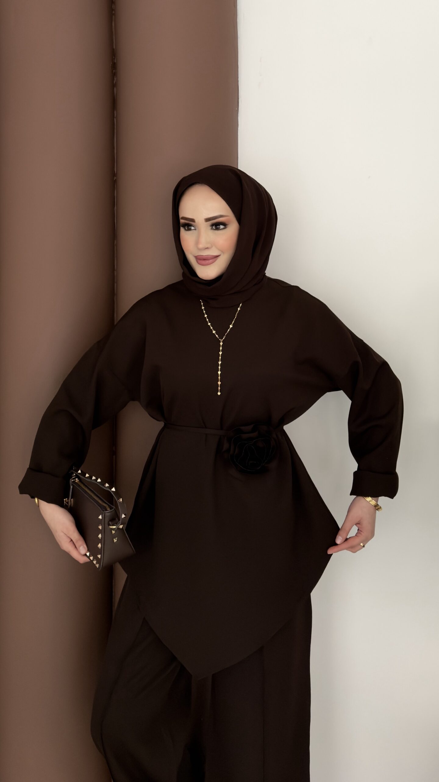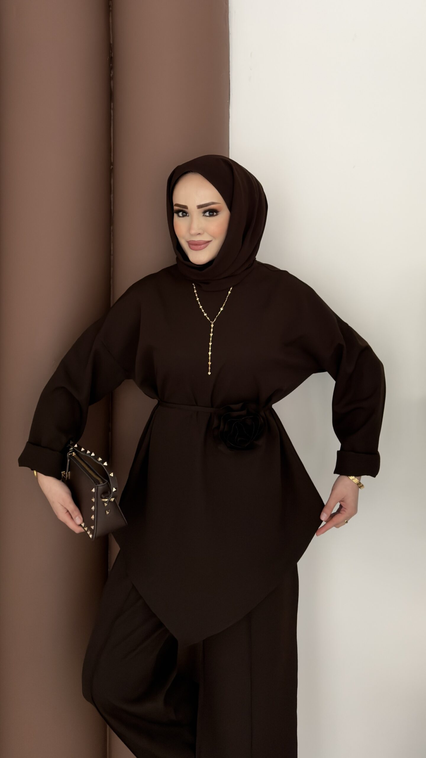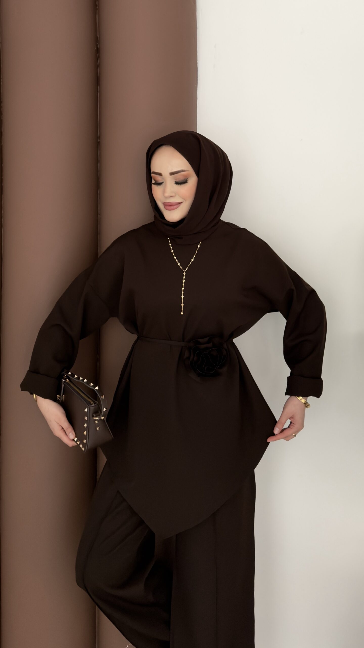 Anvelop Güllü Dabıl İkili Takım – Kahverengi
