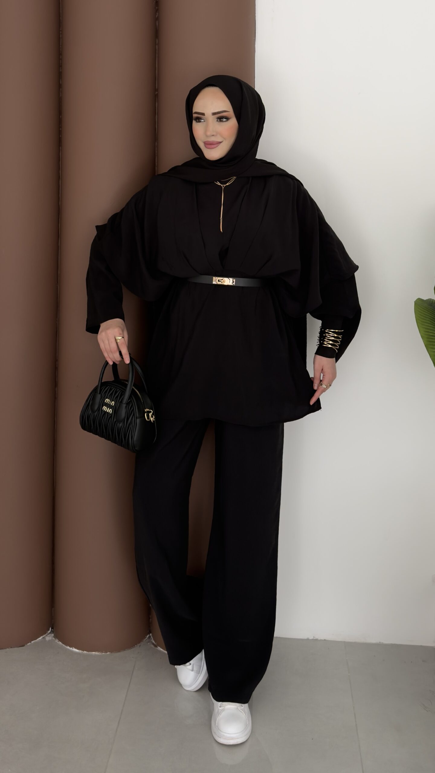 Arabic Pelerinli Modal İkili Takım – Siyah