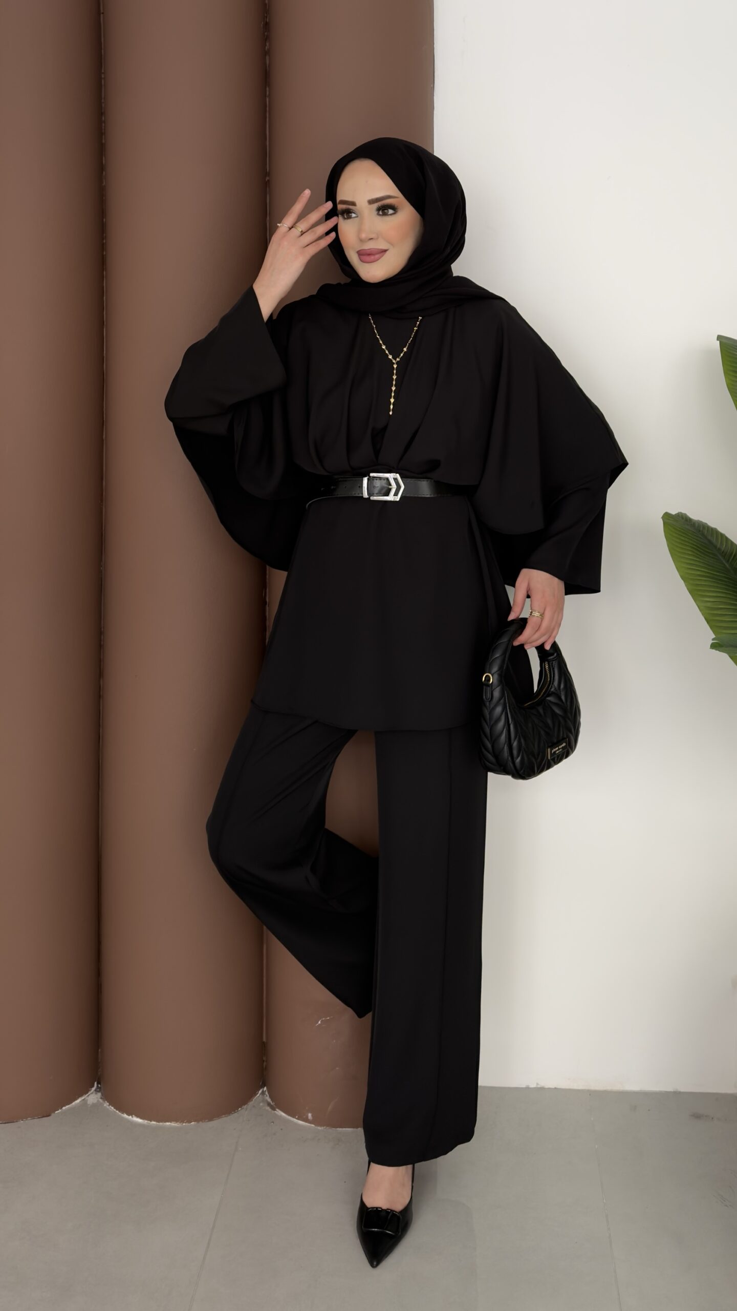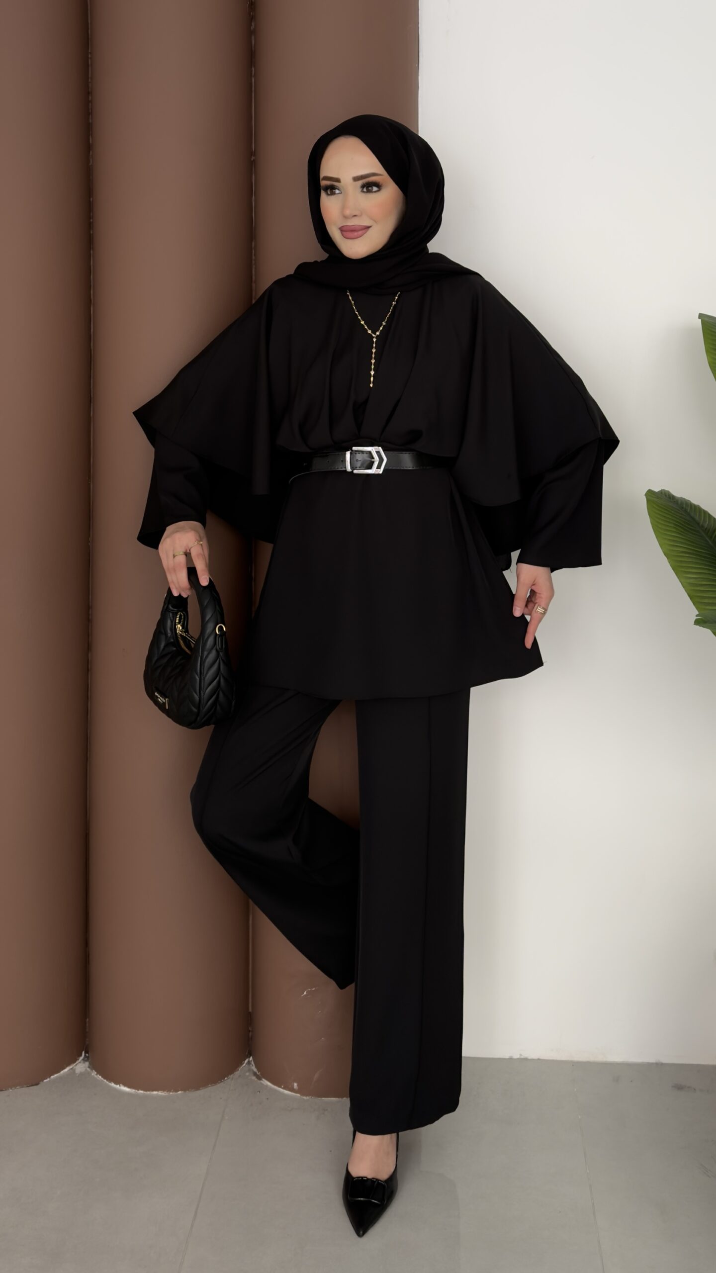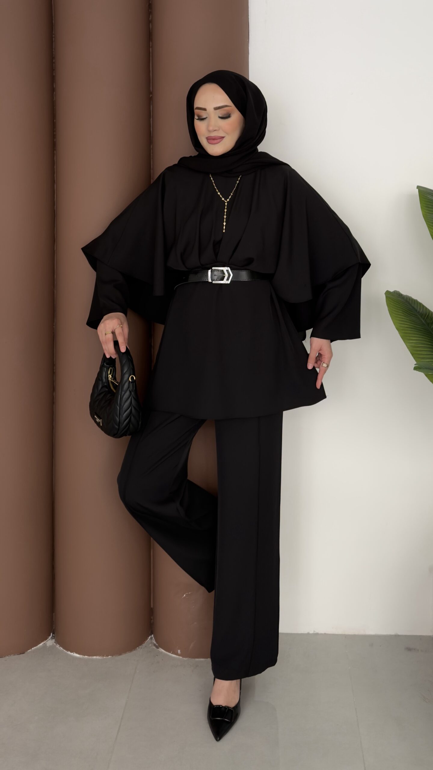 Arabic Pelerinli Modal İkili Takım – Siyah