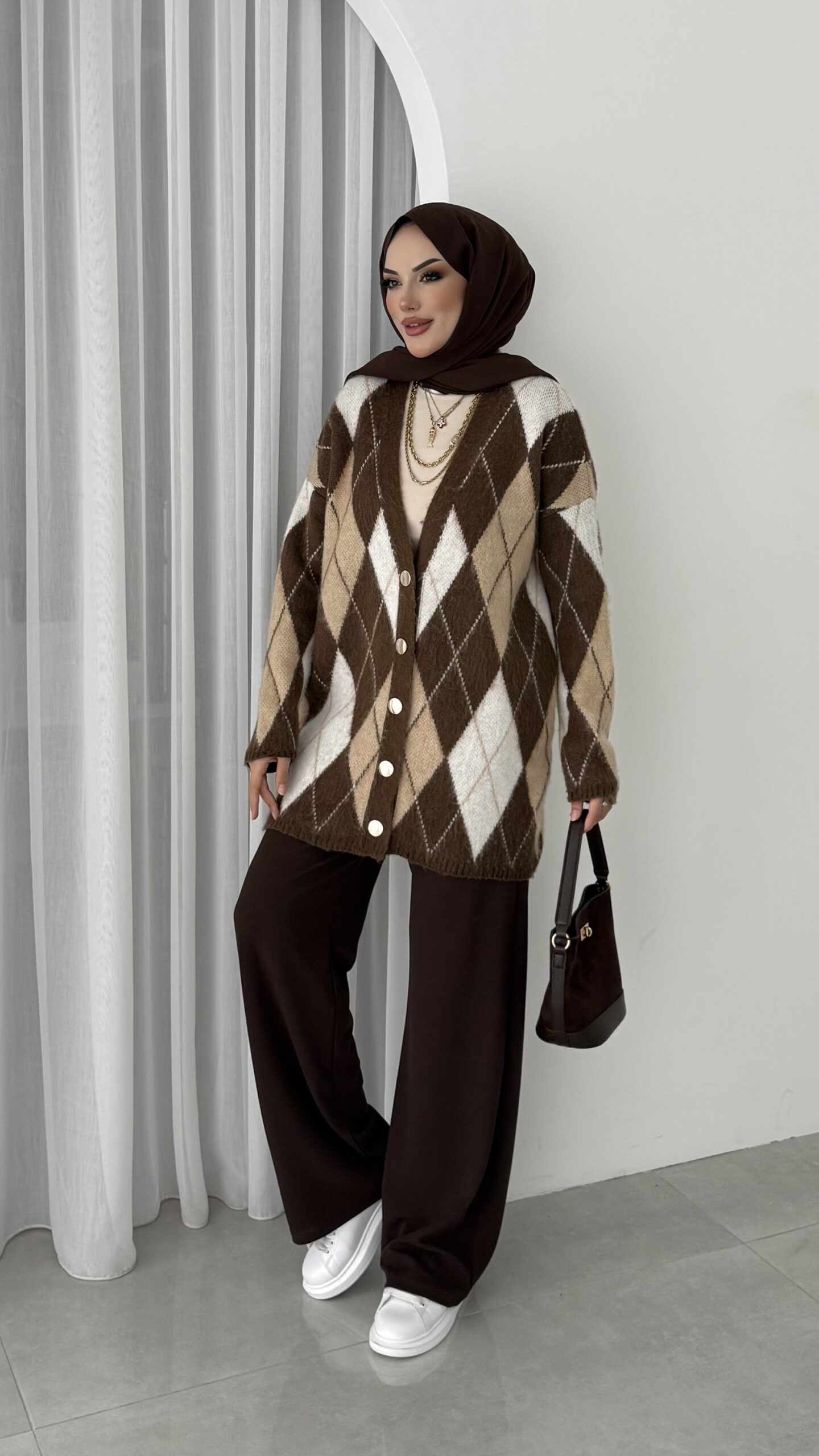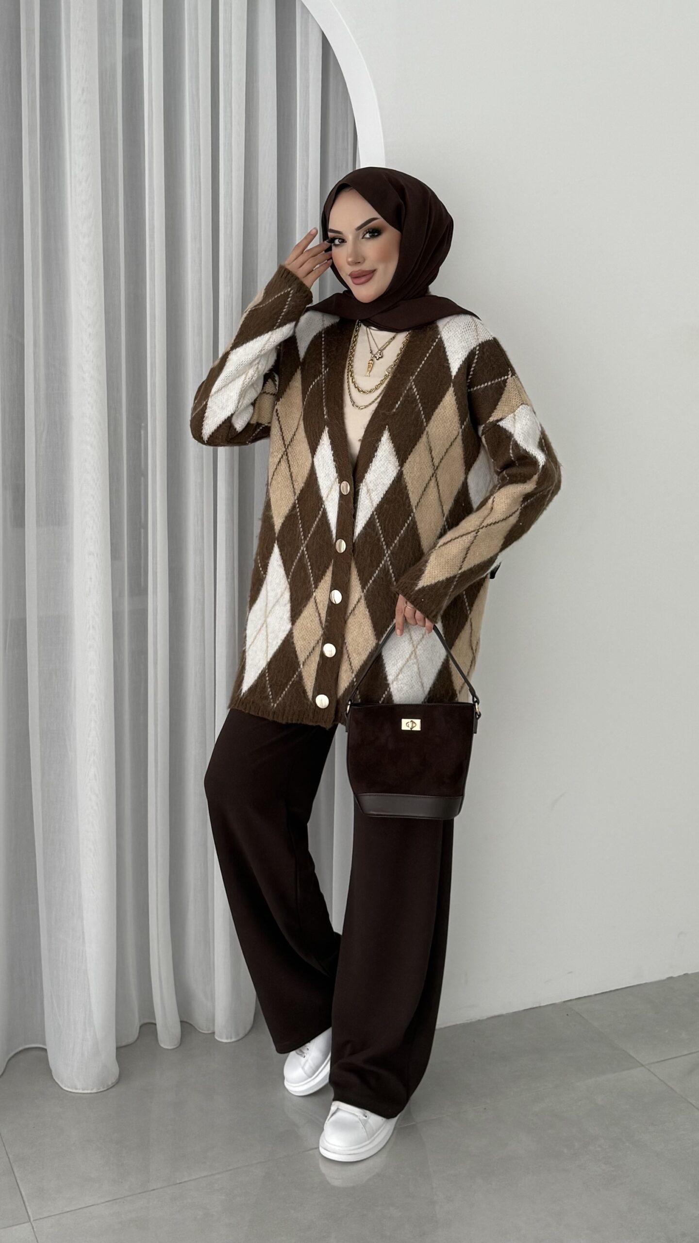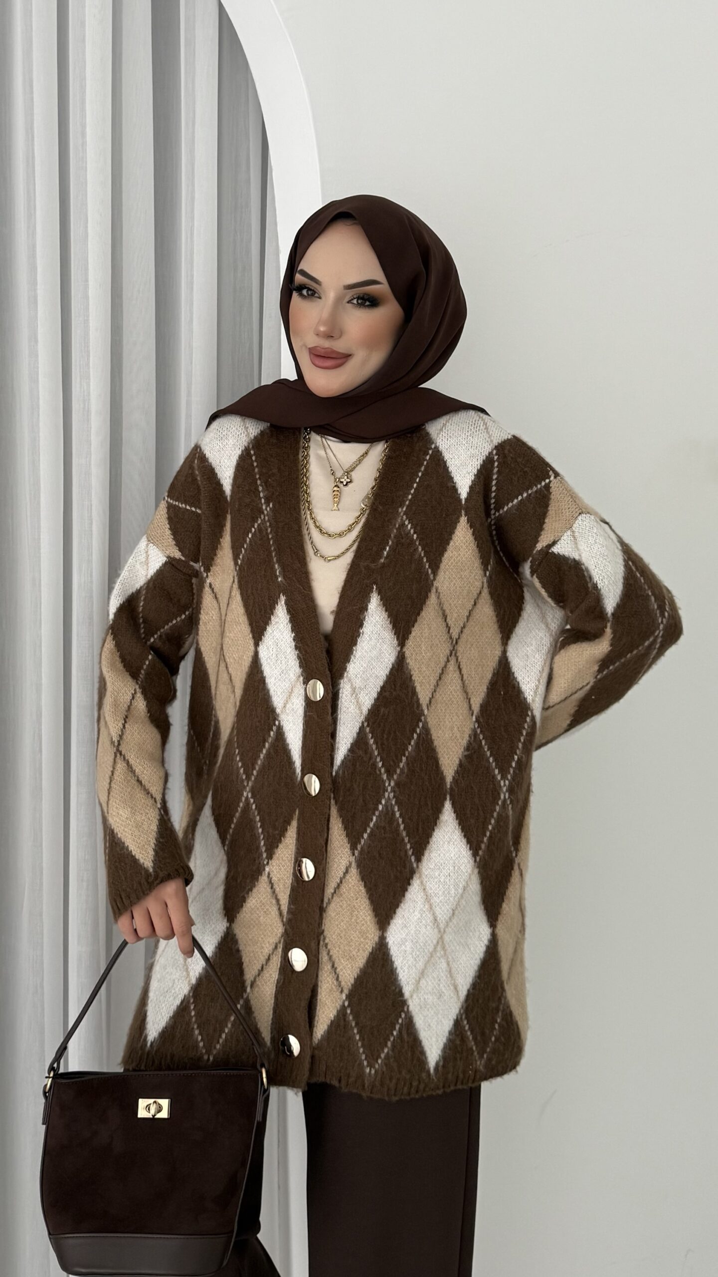 Baklava Desen Muadil Hırka – Kahverengi