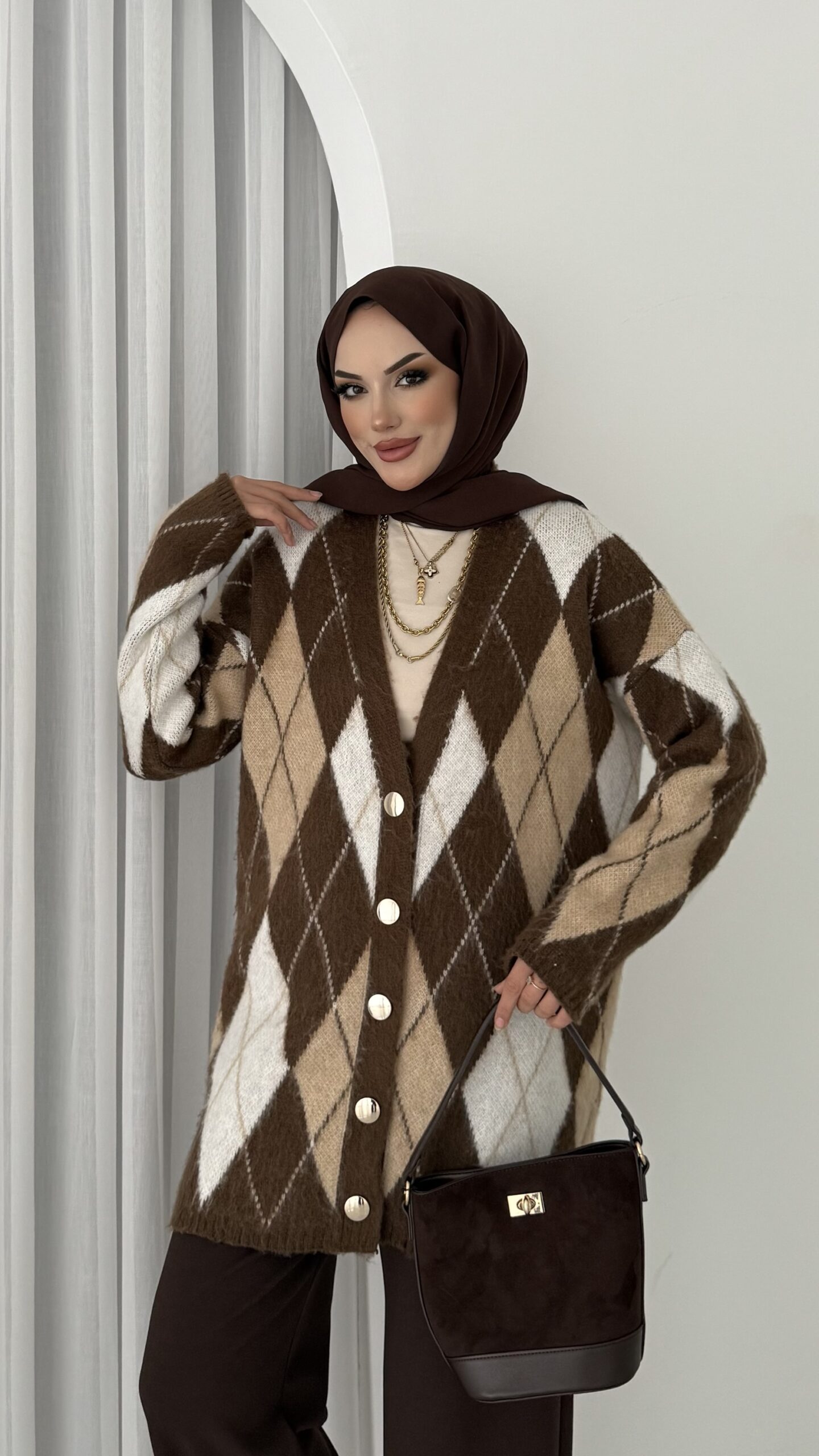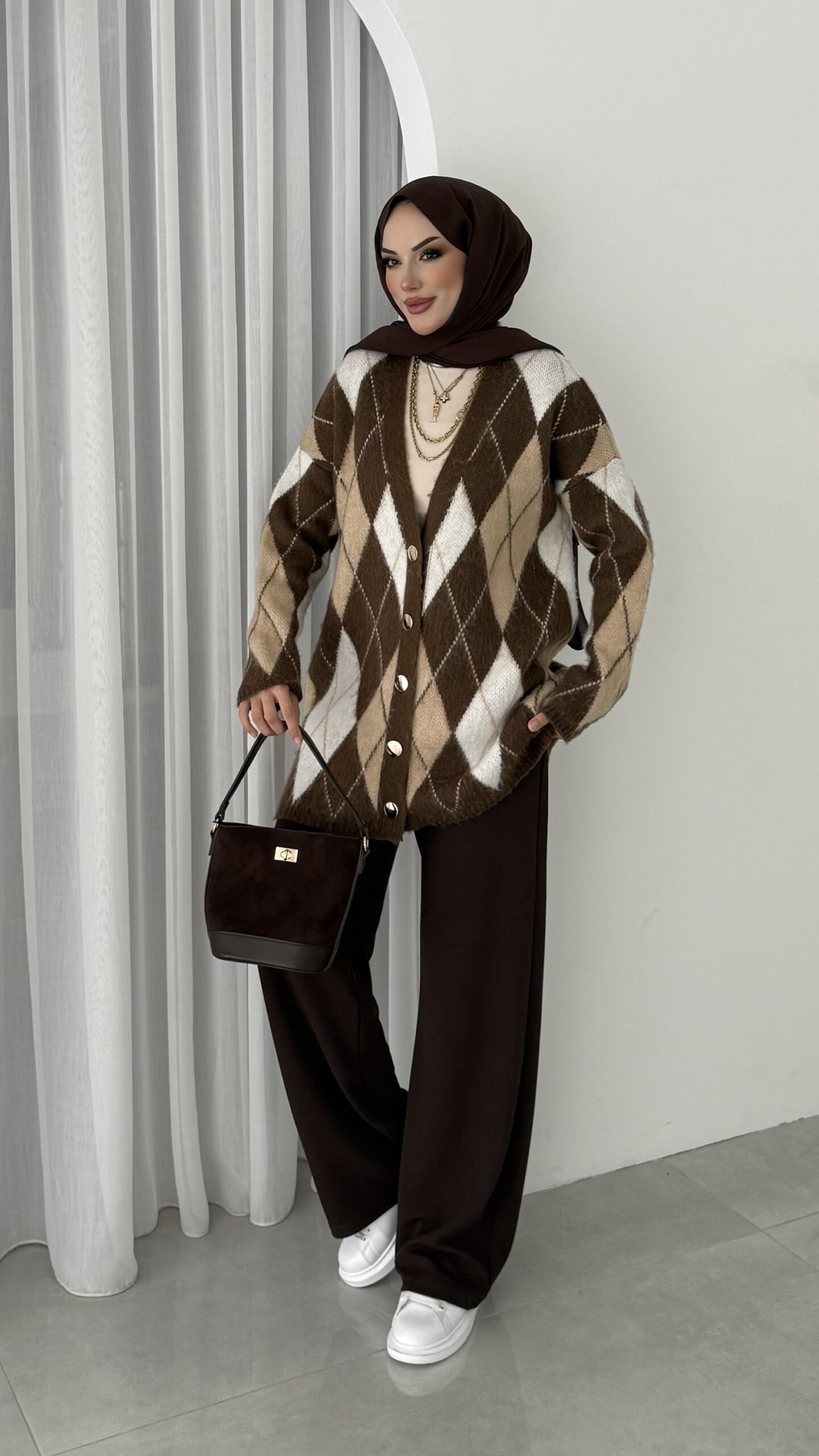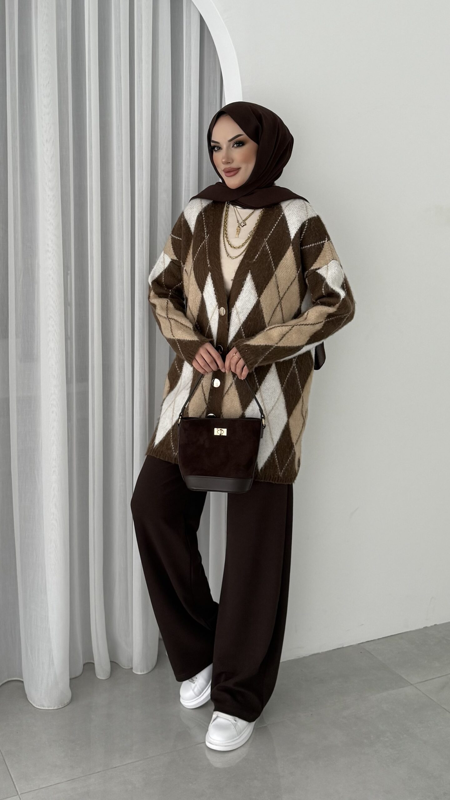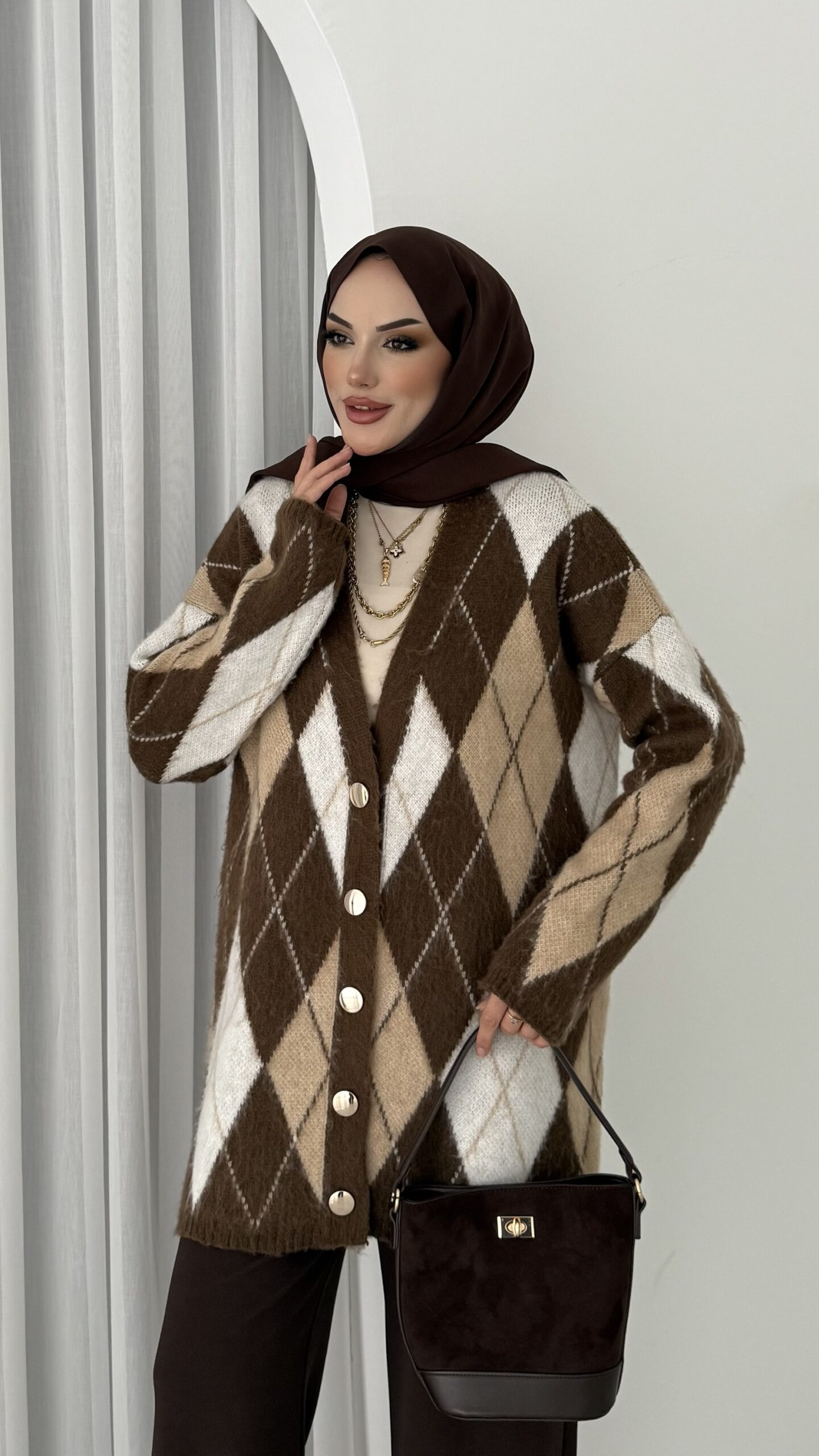 Baklava Desen Muadil Hırka – Kahverengi