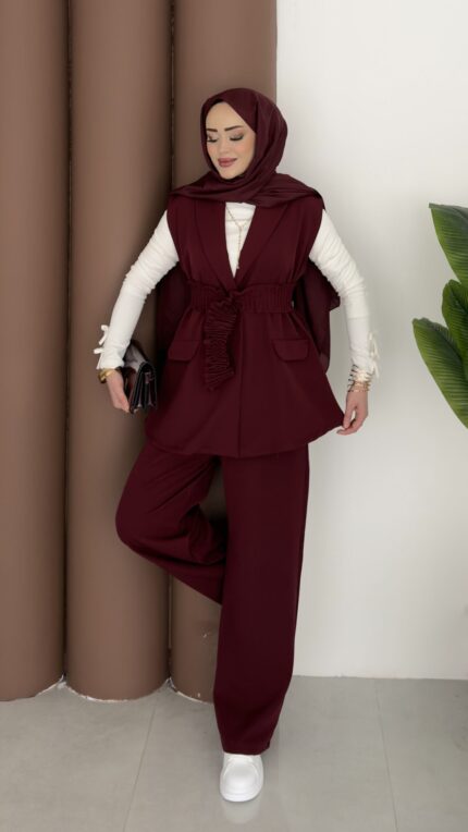 Carel Double Yelekli İkili Takım – Bordo