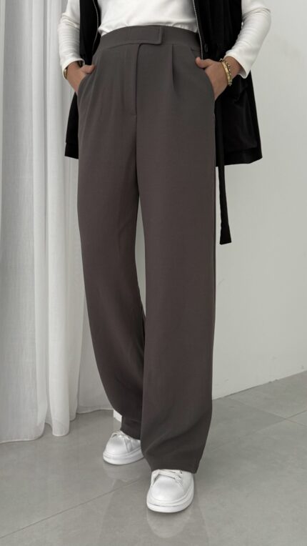 Çırtçırtlı Palazzo Krep Pantolon – Antrasit