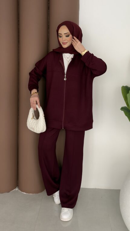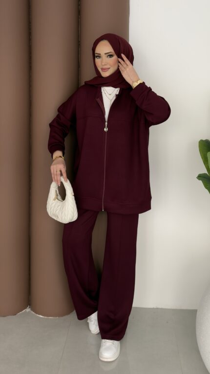 Block Parçalı Dabıl İkili Takım - Mürdüm