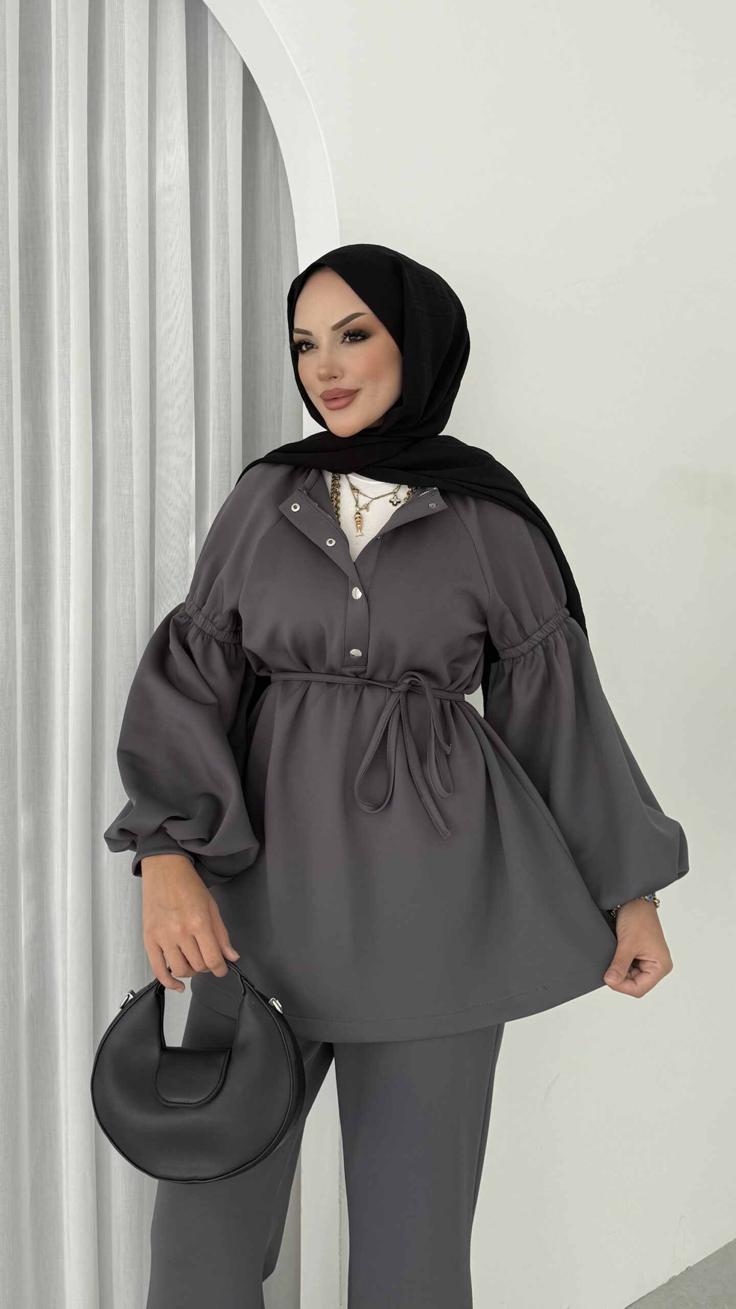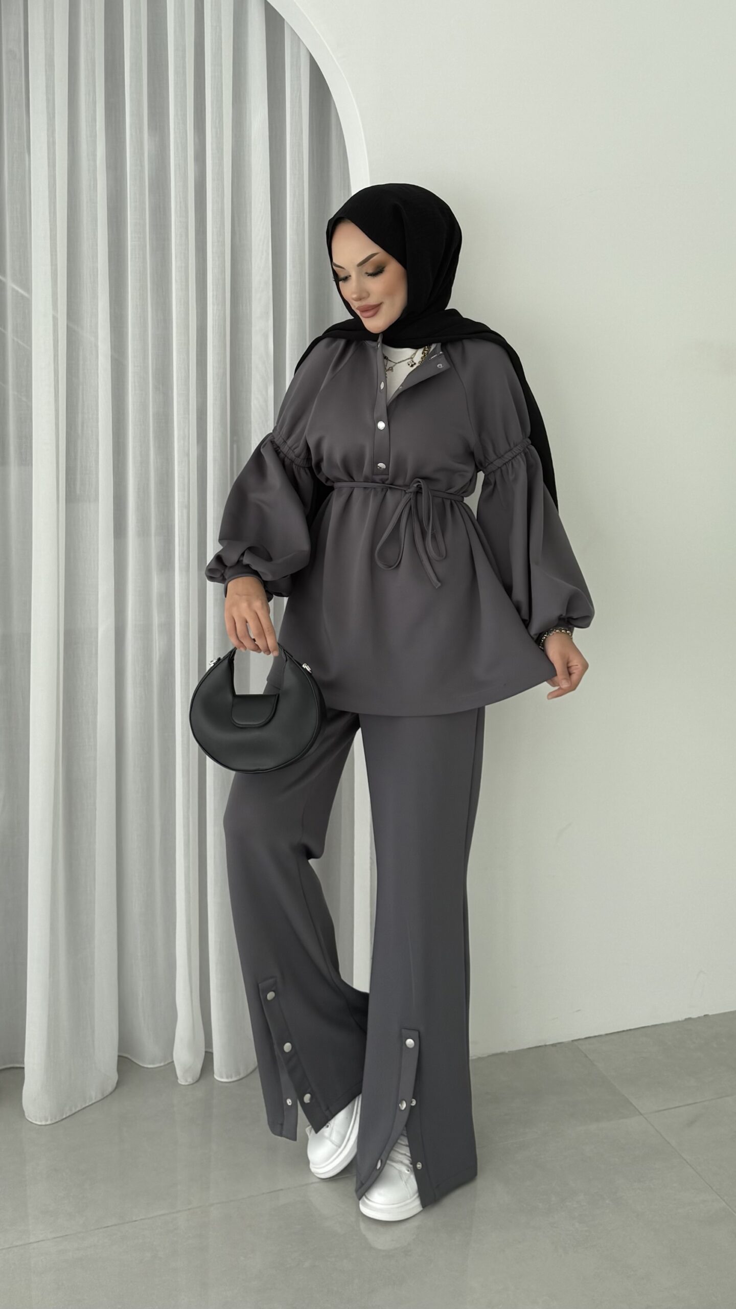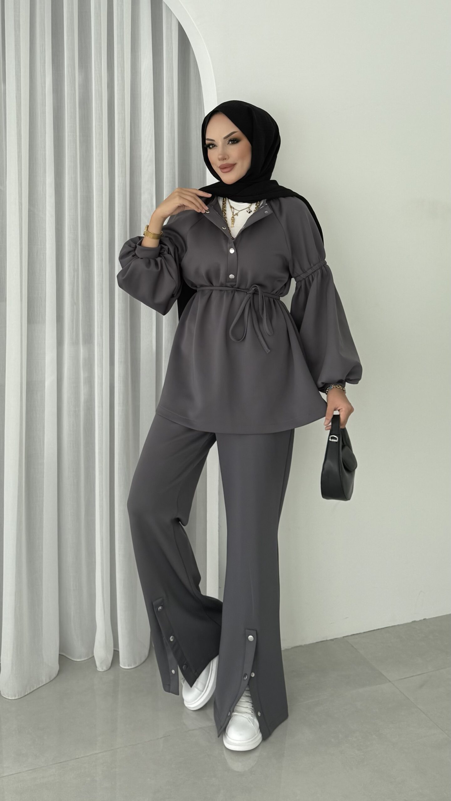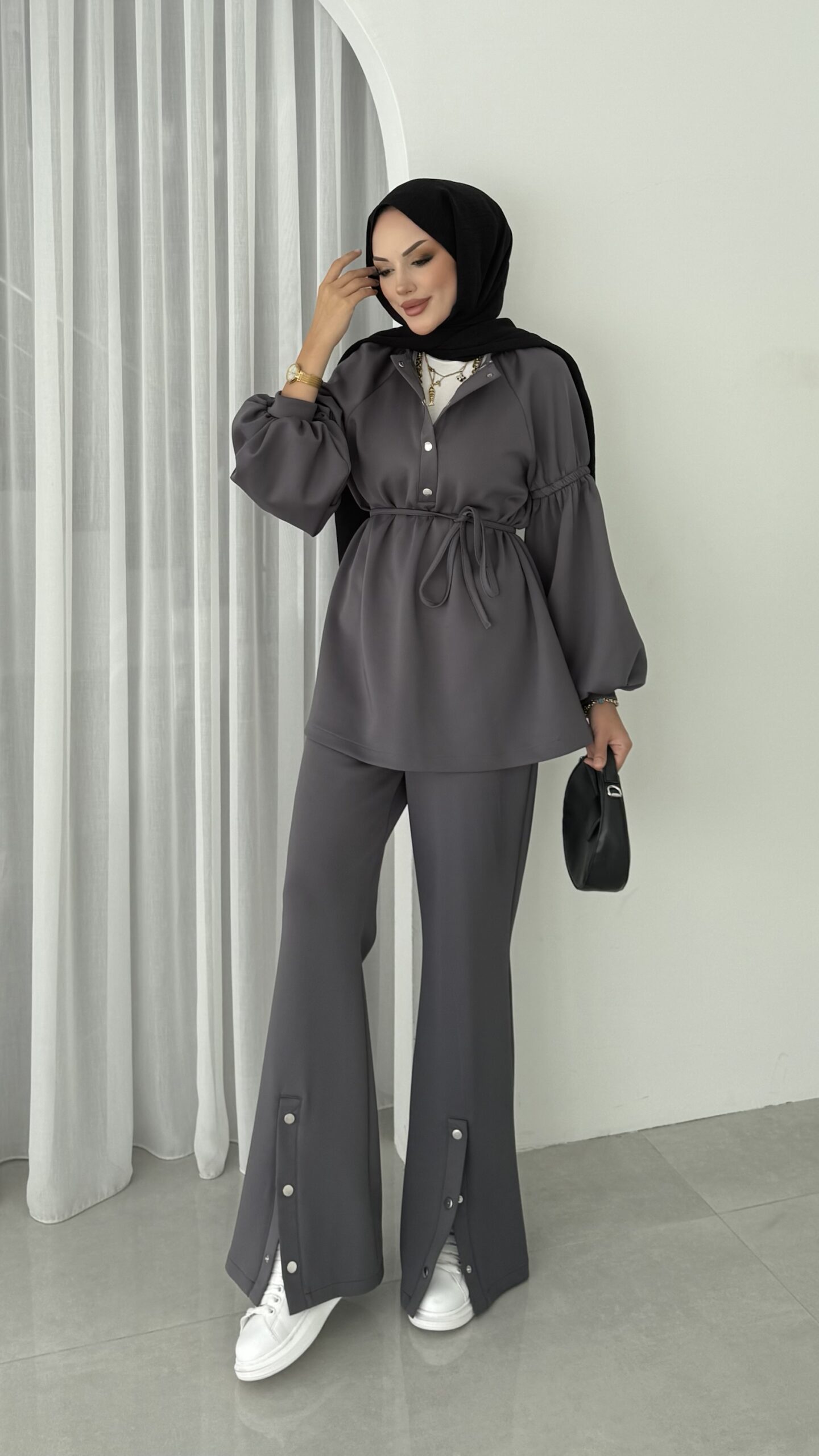 Peluş Garnili Şardonlu İkili Takım – Antrasit