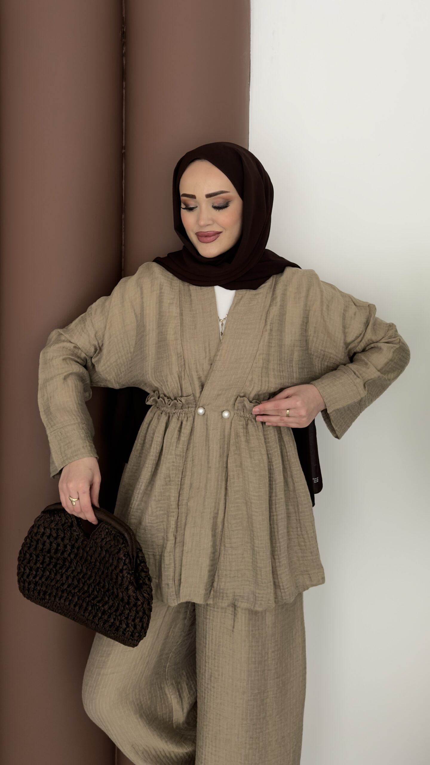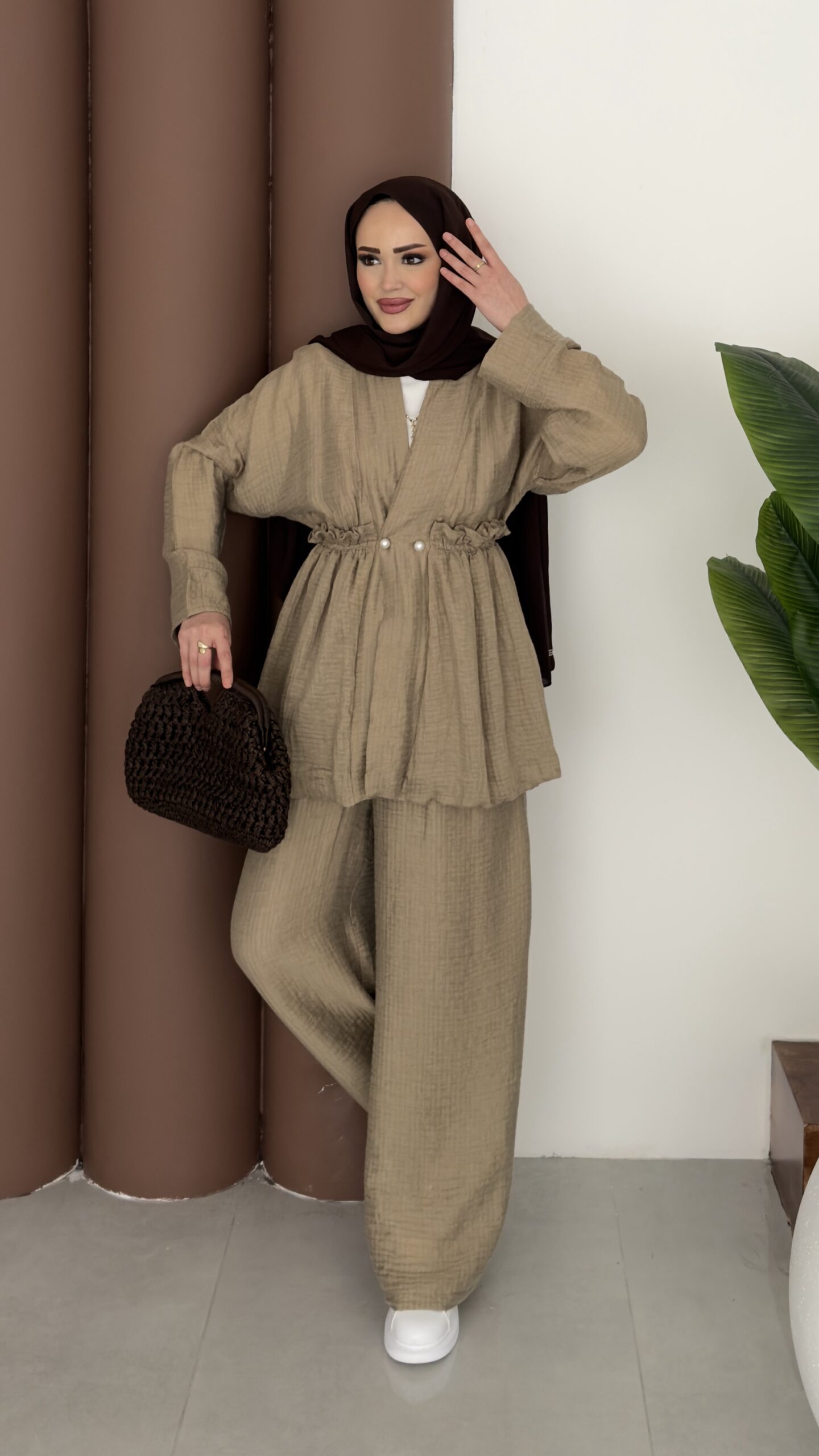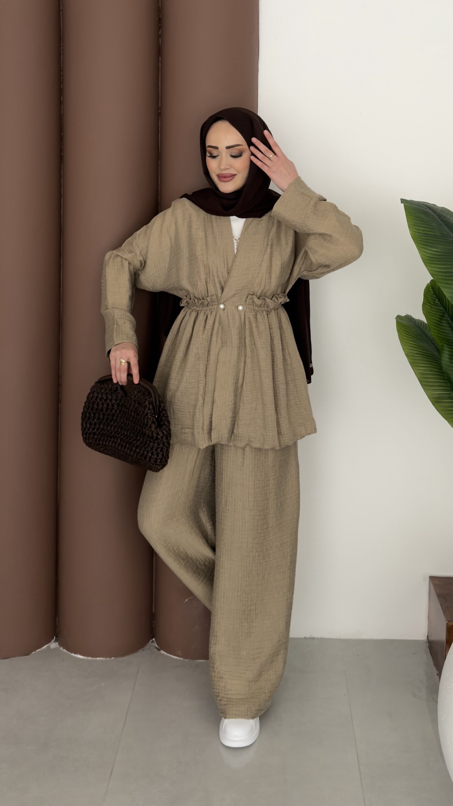 Bohem İncili Müslin İkili Takım - Kahverengi