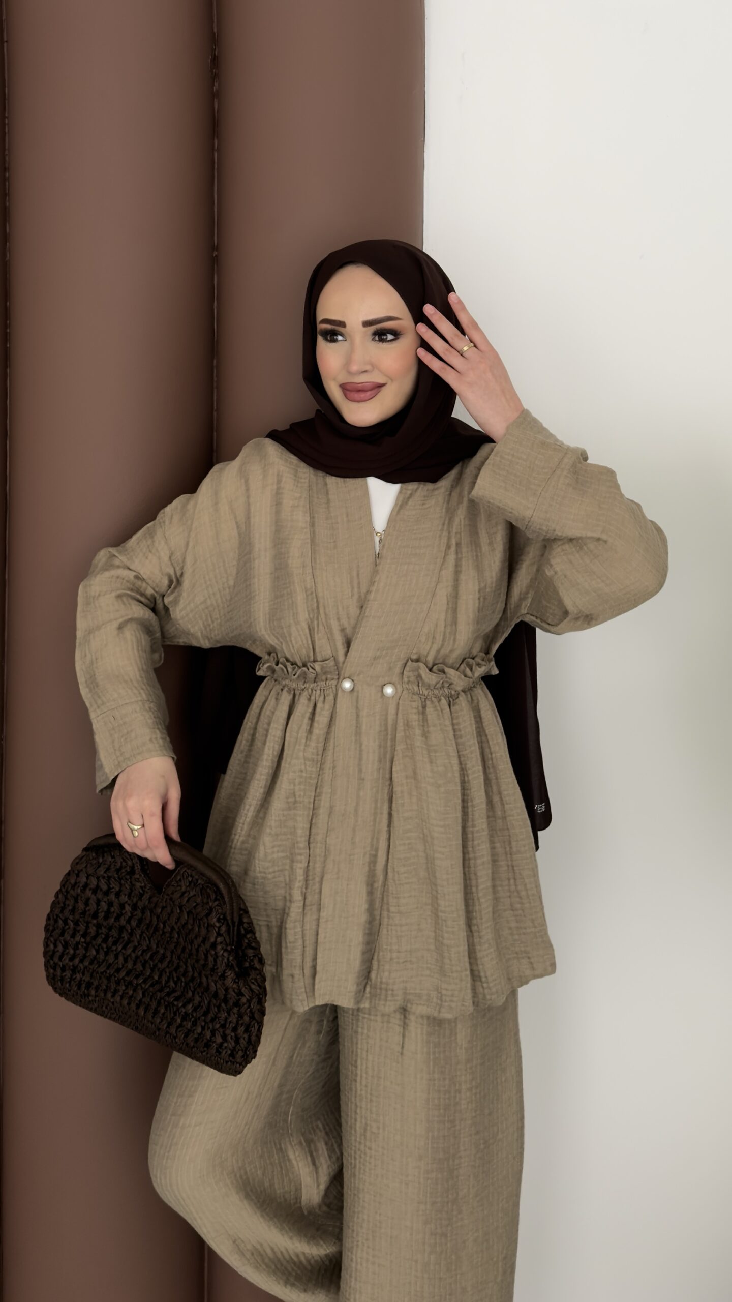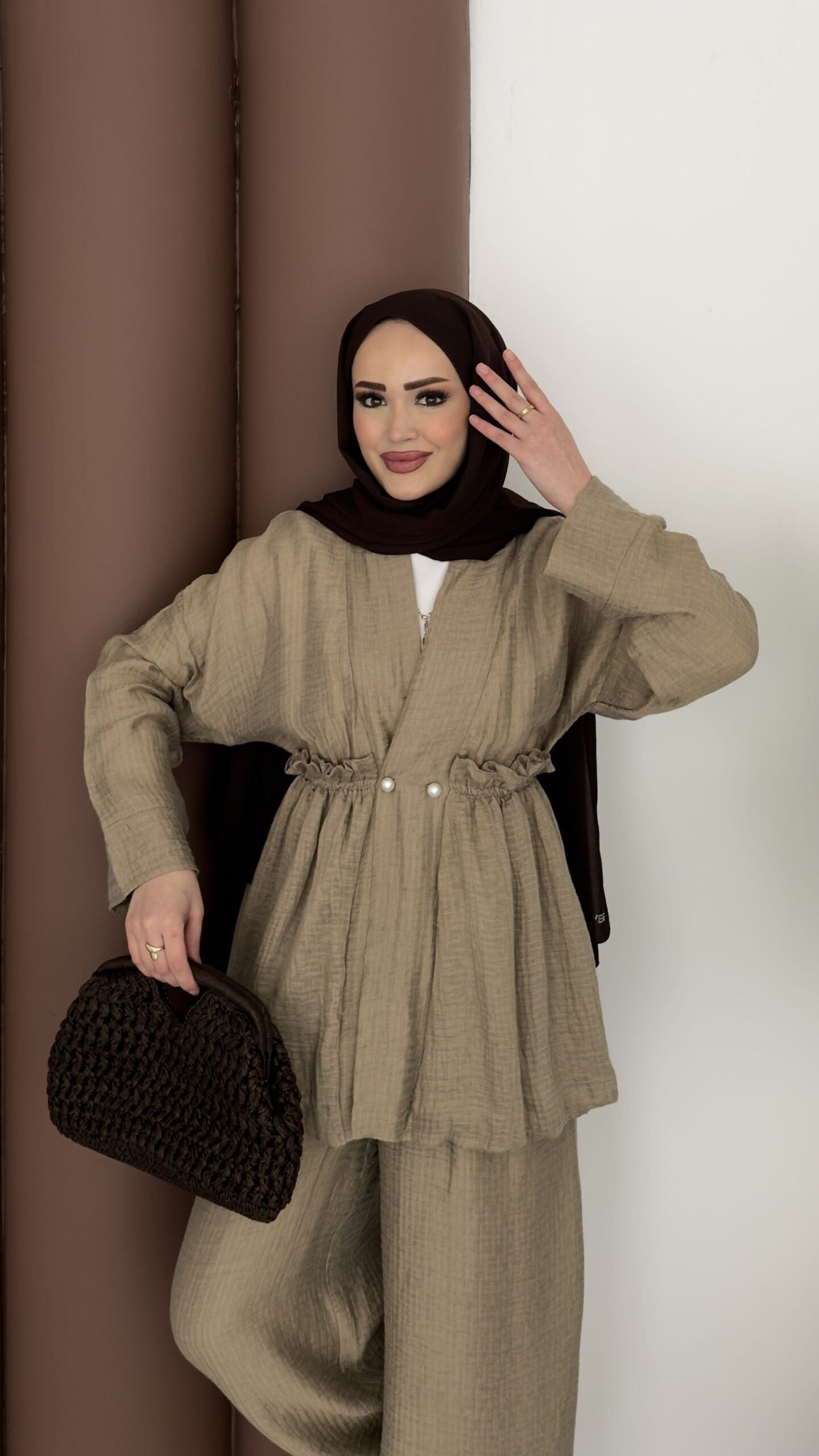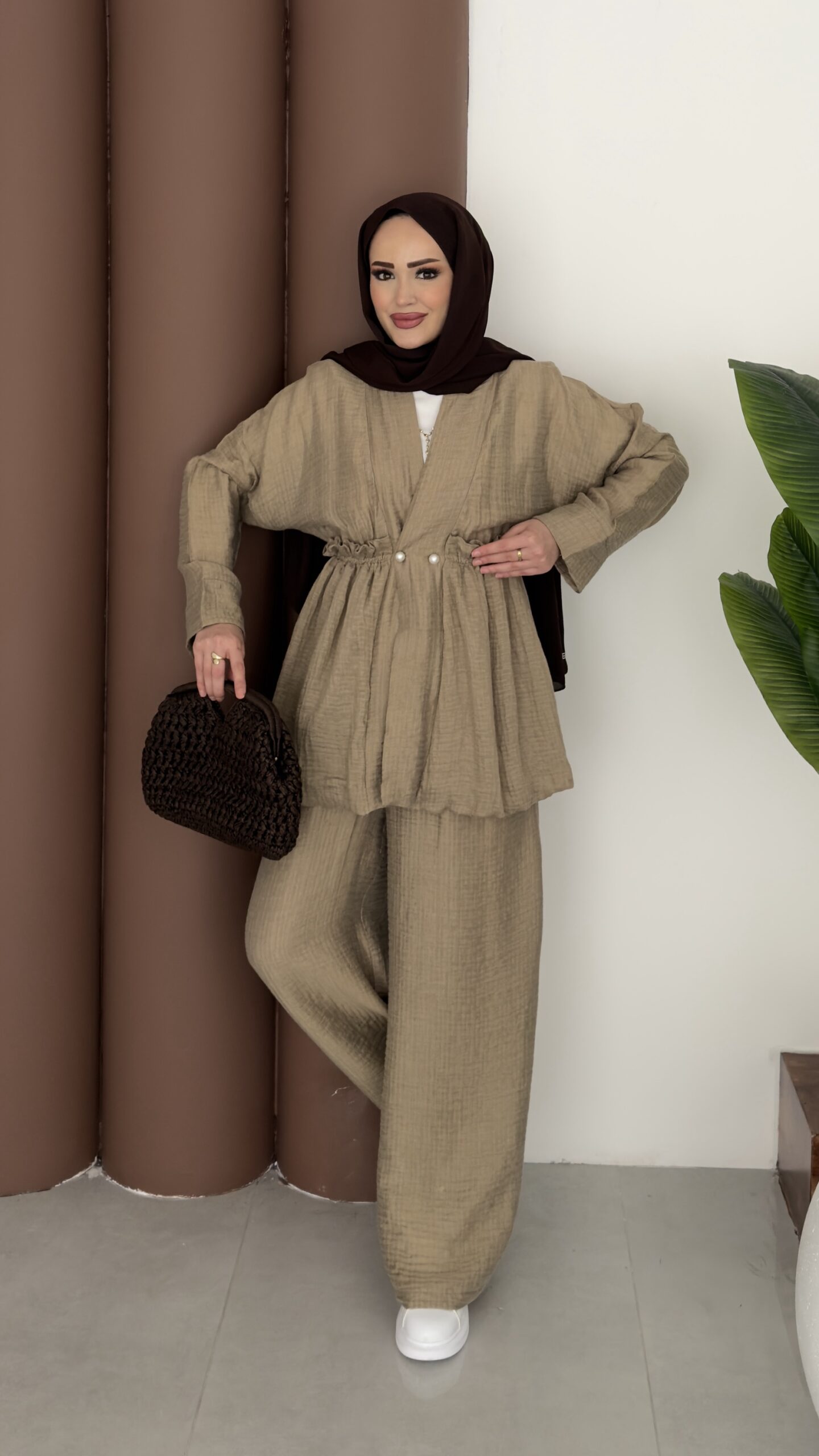 Bohem İncili Müslin İkili Takım - Kahverengi