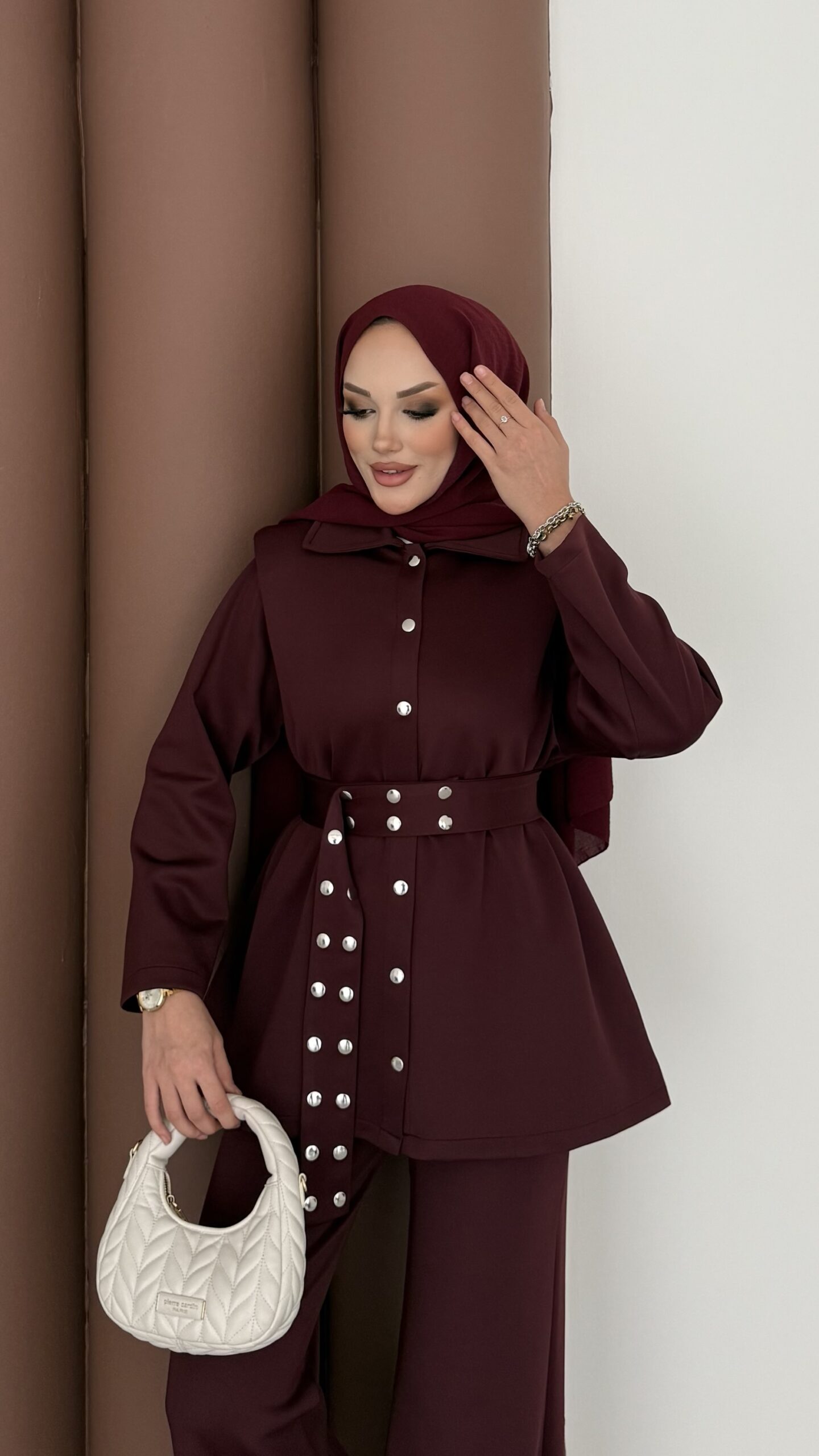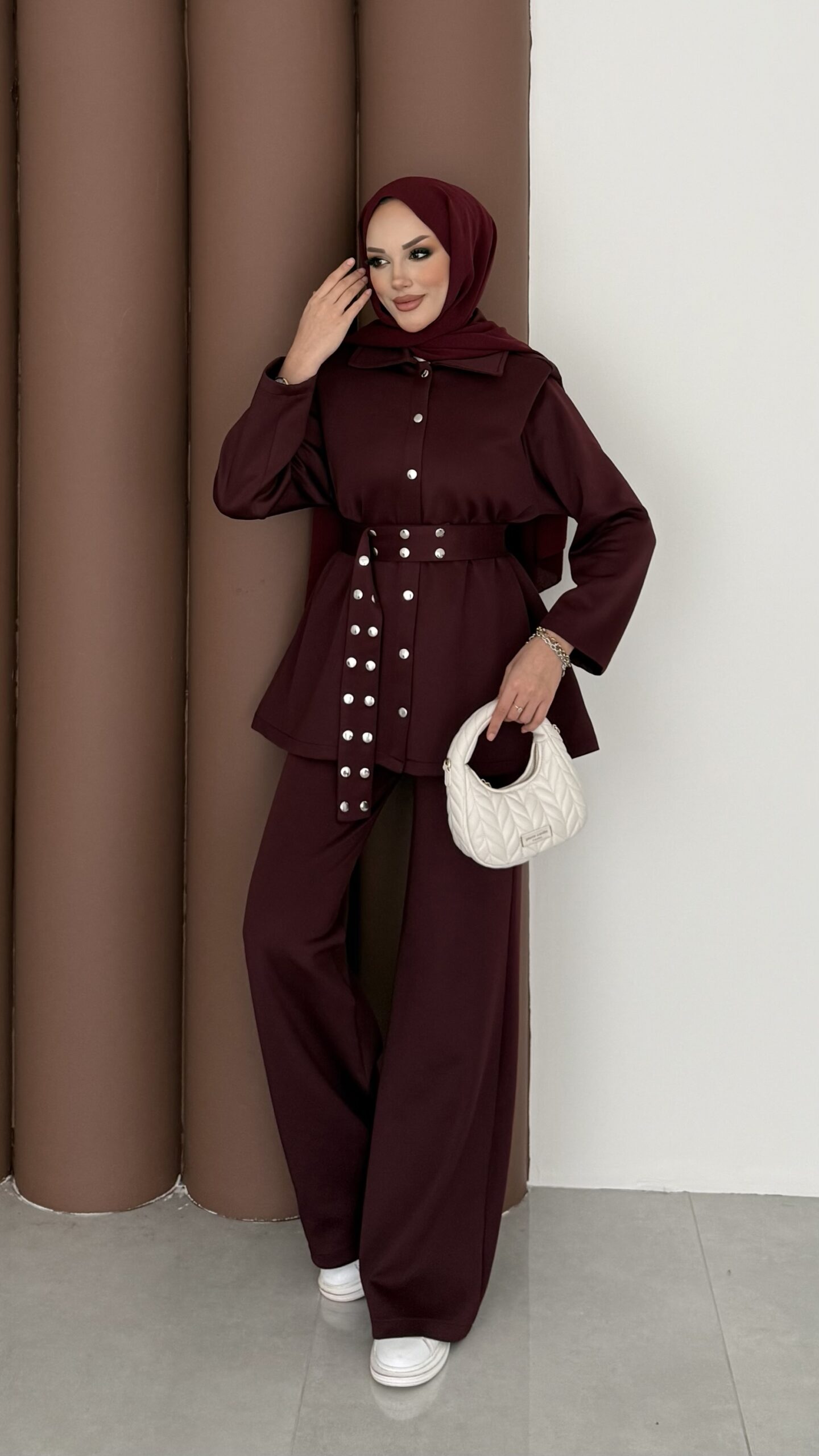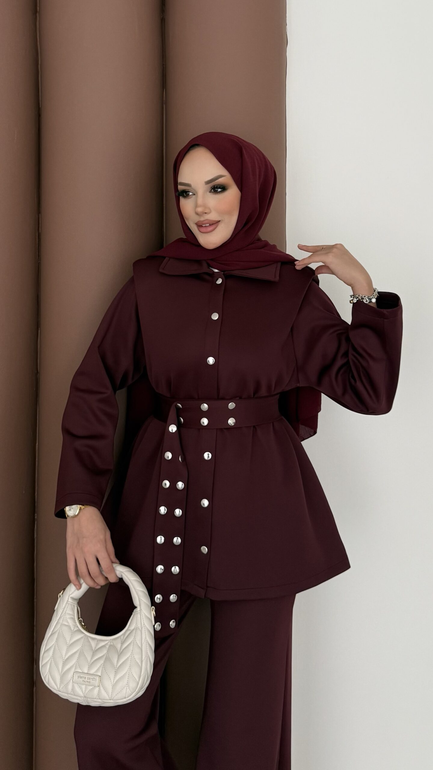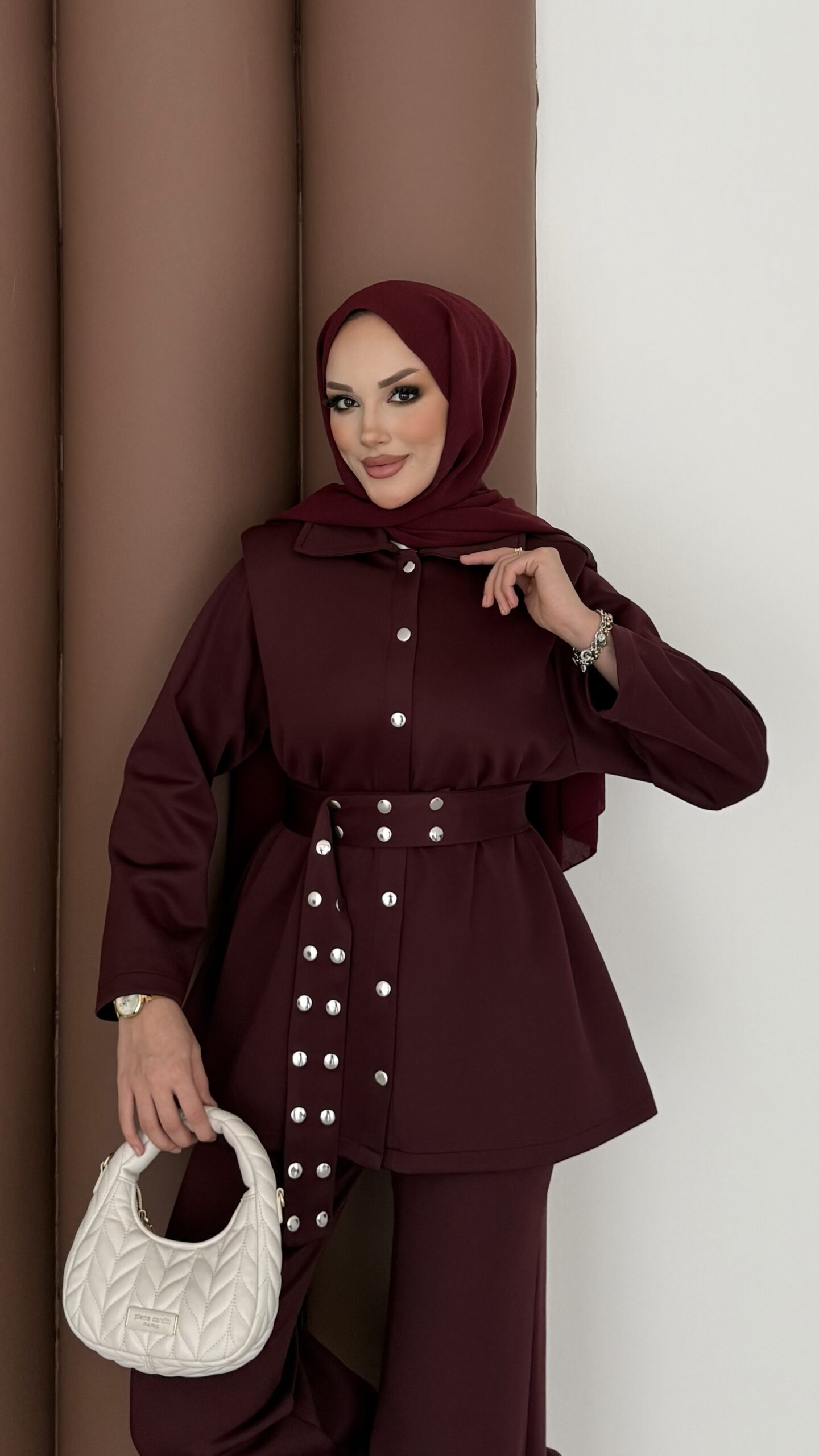 Bondi Vatkalı Çıtçıtlı Scuba İkili Takım – Bordo