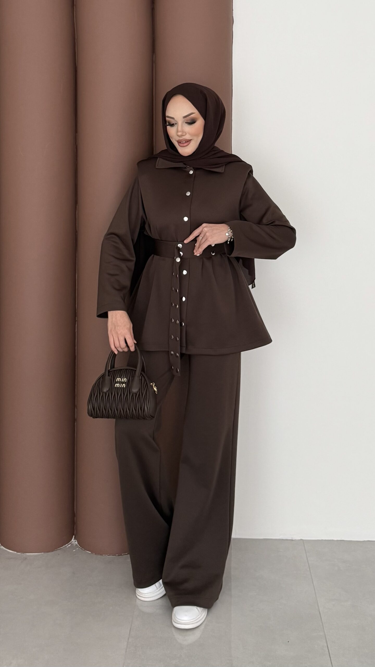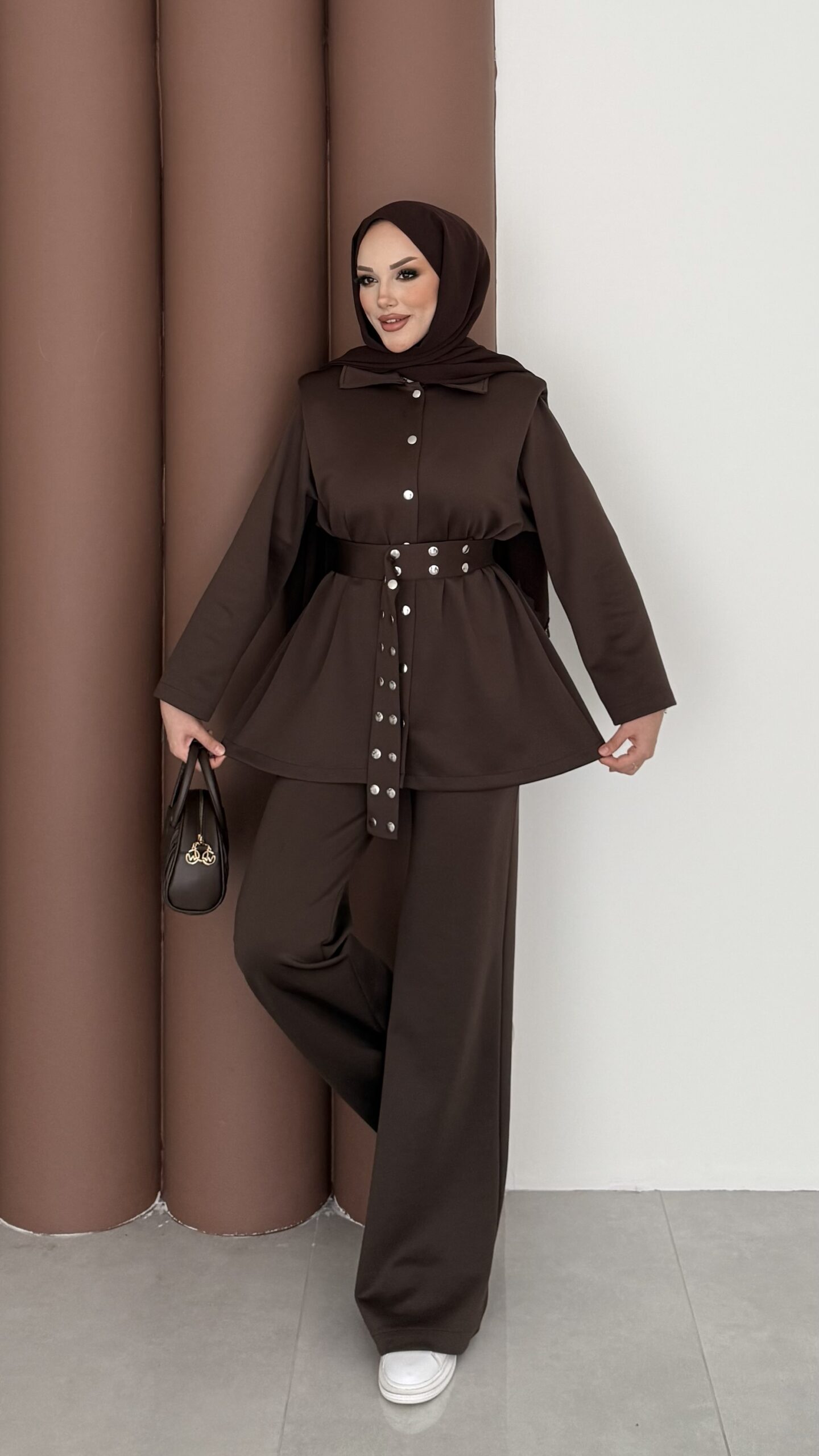 Bondi Vatkalı Çıtçıtlı Scuba İkili Takım – Kahverengi