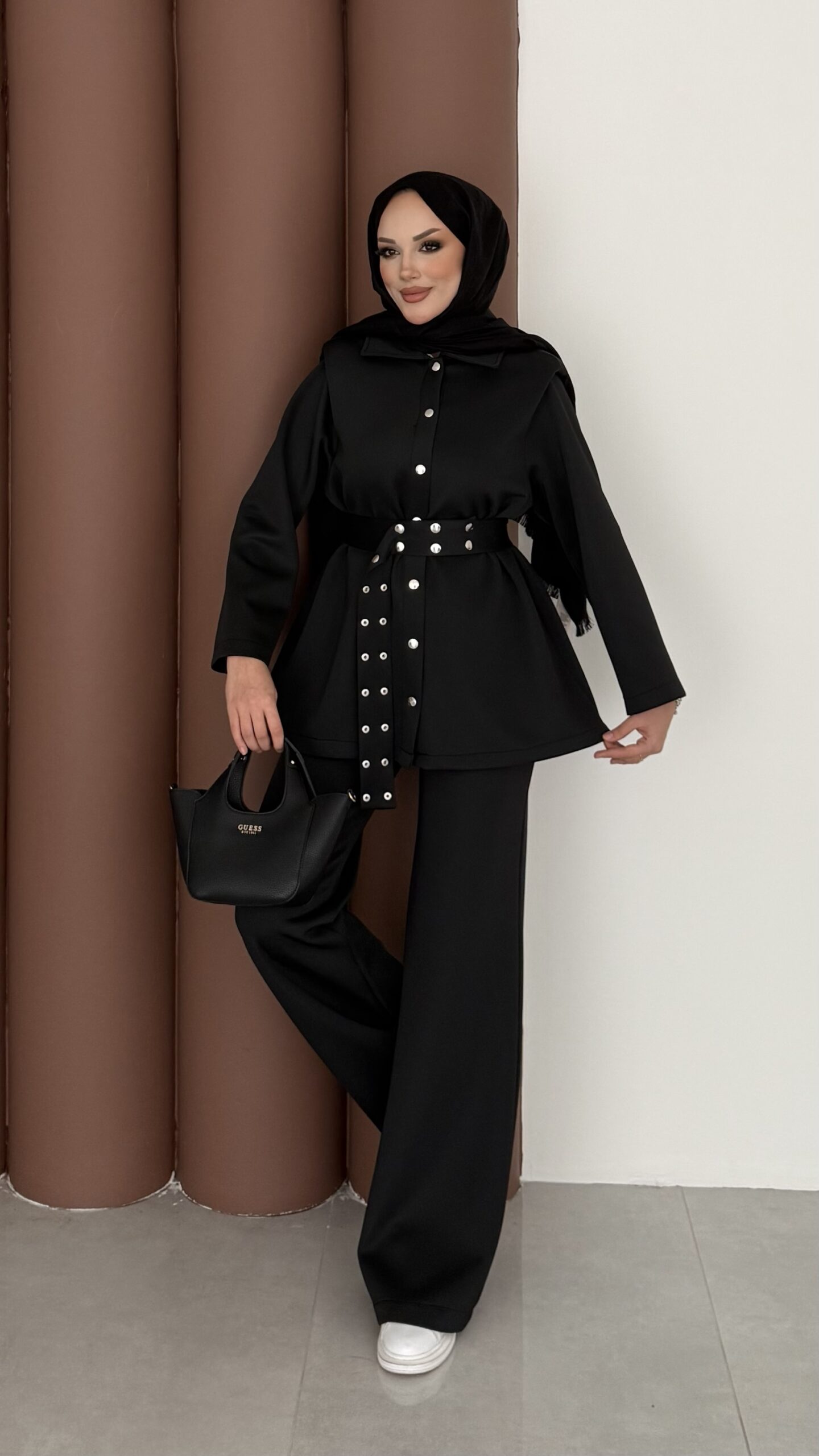 Bondi Vatkalı Çıtçıtlı Scuba İkili Takım – Siyah