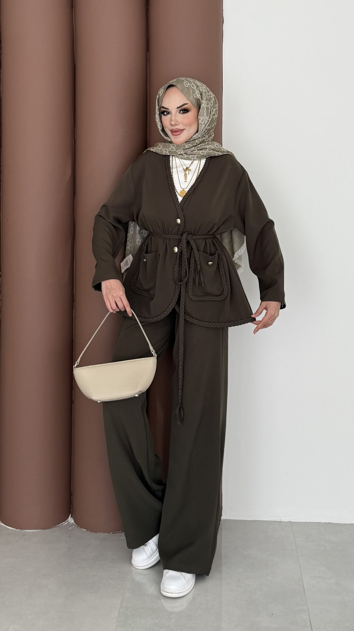 BuQlet Örgü Kemerli İkili Takım – Haki