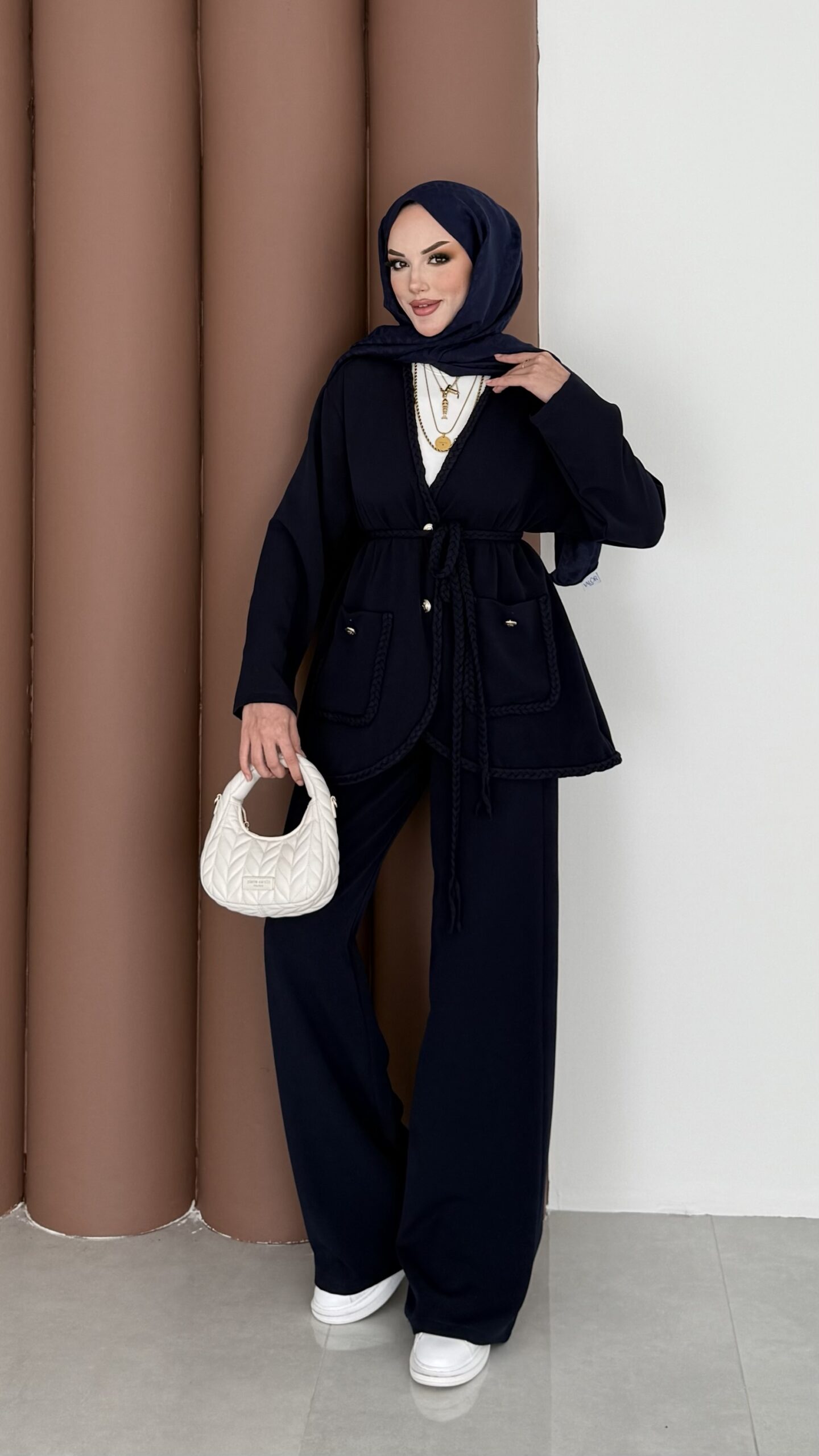 BuQlet Örgü Kemerli İkili Takım – Lacivert