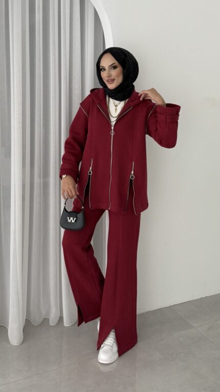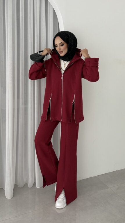 BuQlet Örgü Kemerli İkili Takım - Bordo