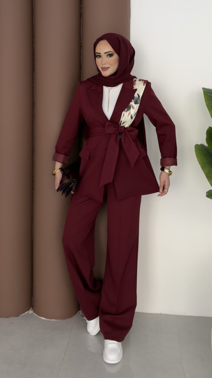 Bussines Blazer Dabıl İkili Takım – Bordo