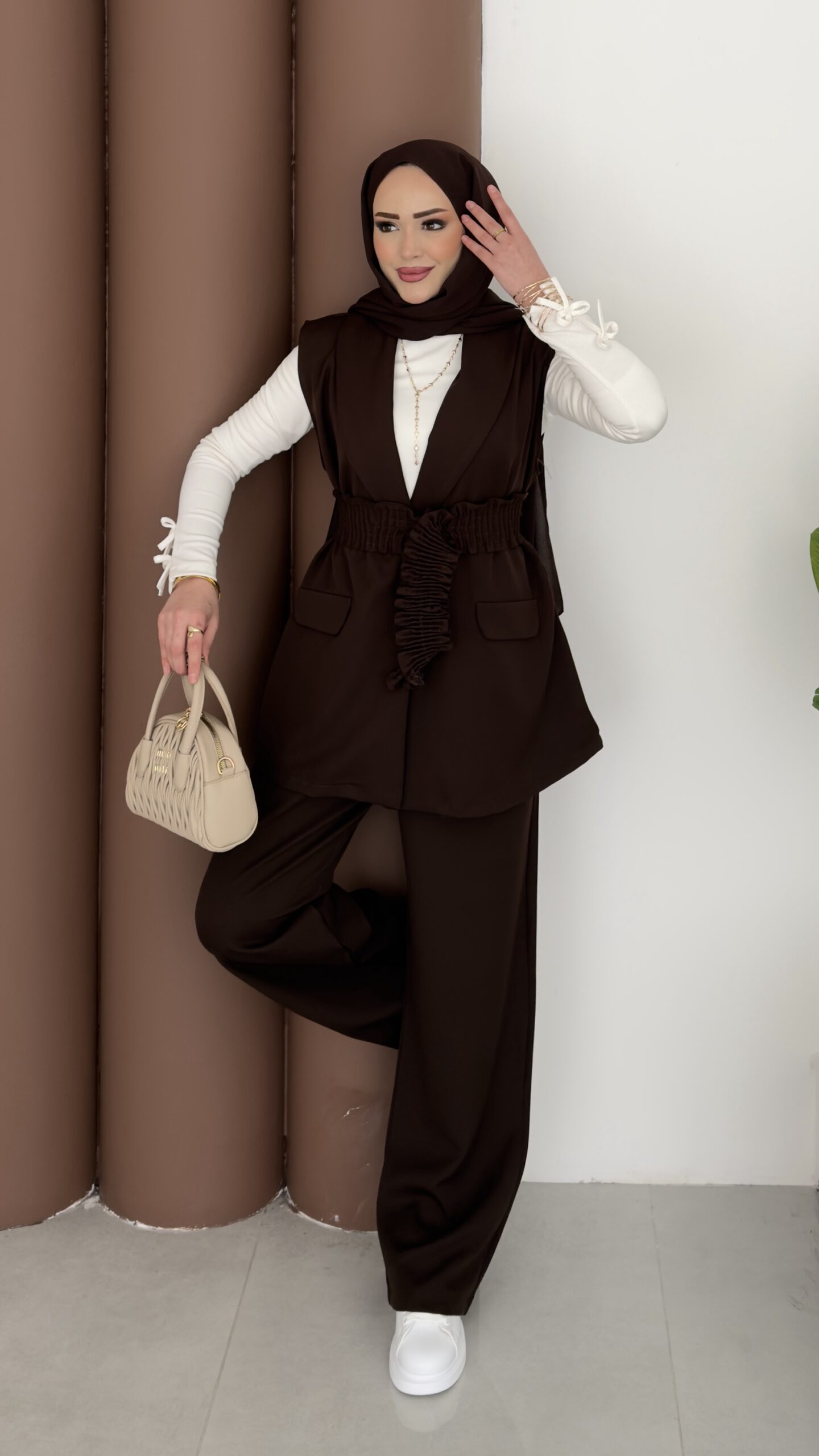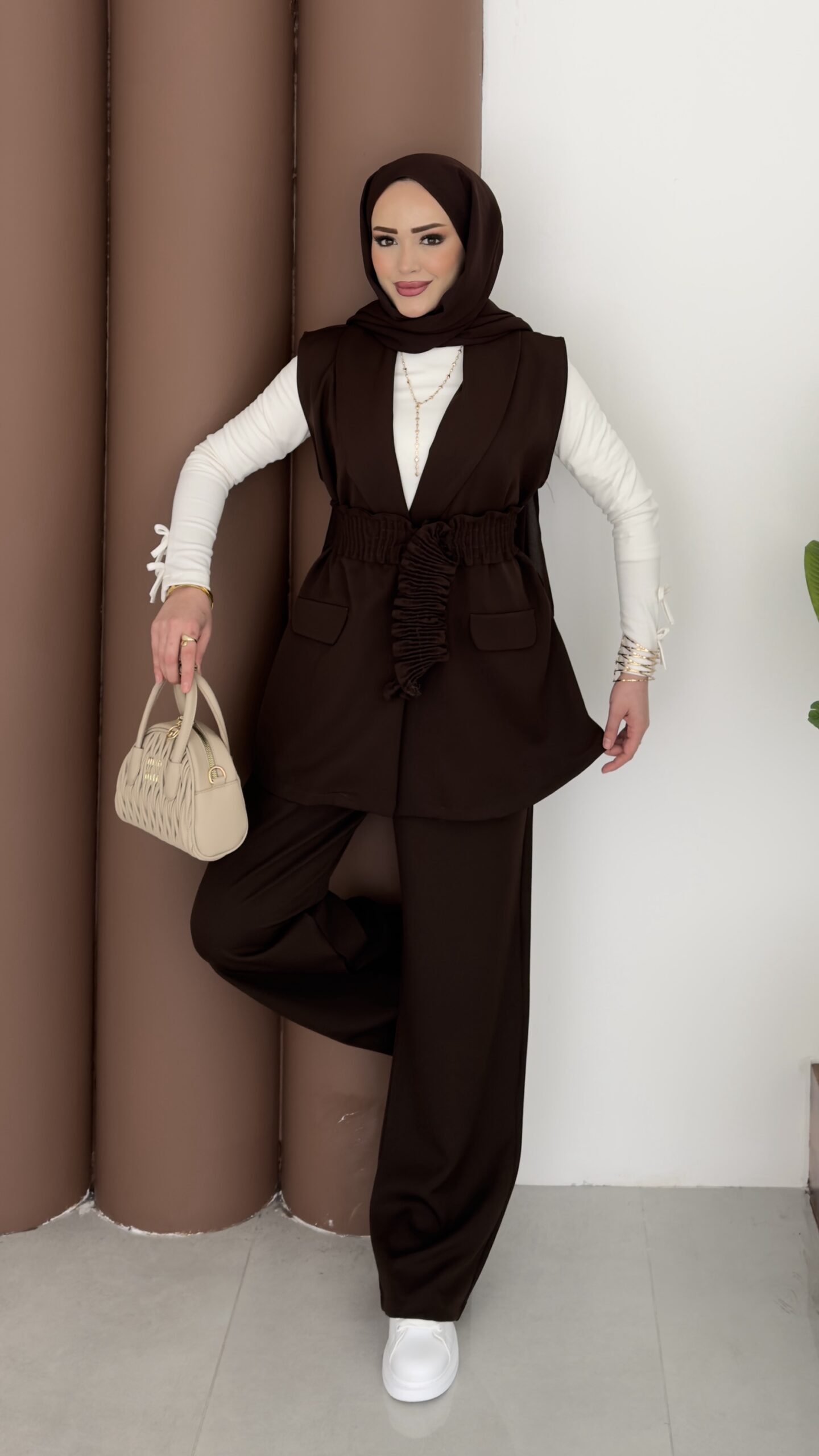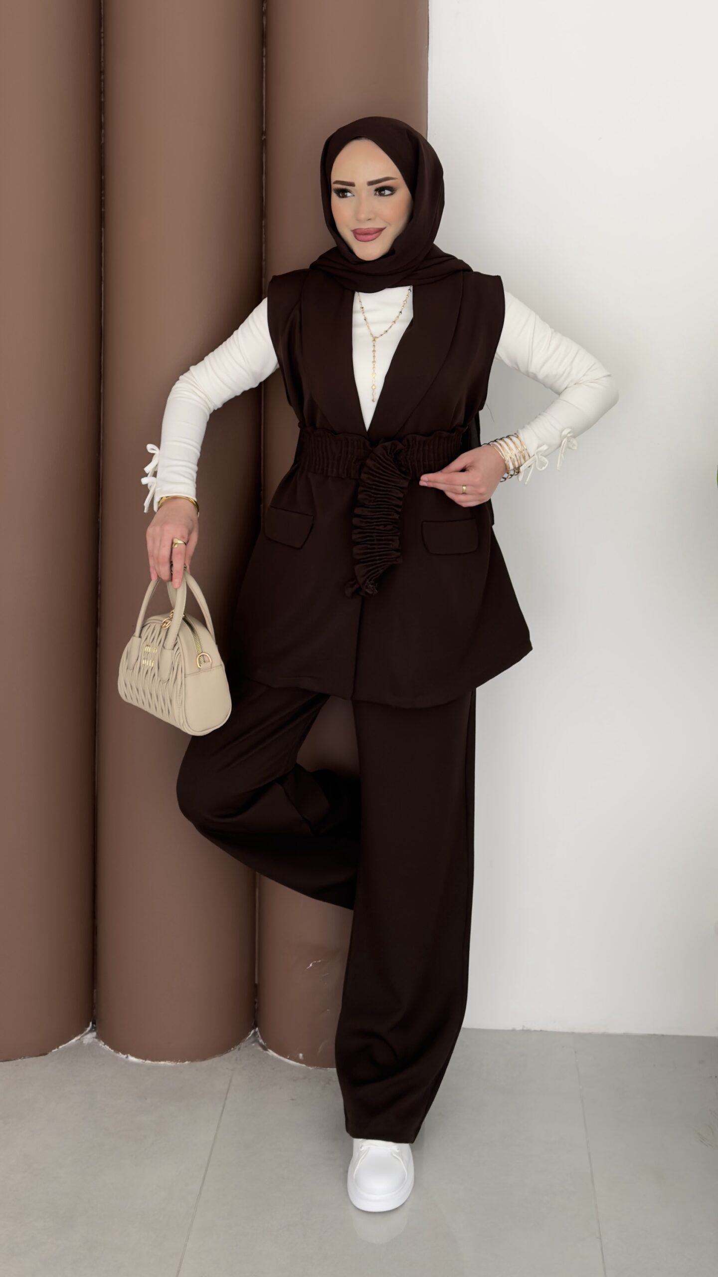 Carel Double Yelekli İkili Takım – Kahverengi