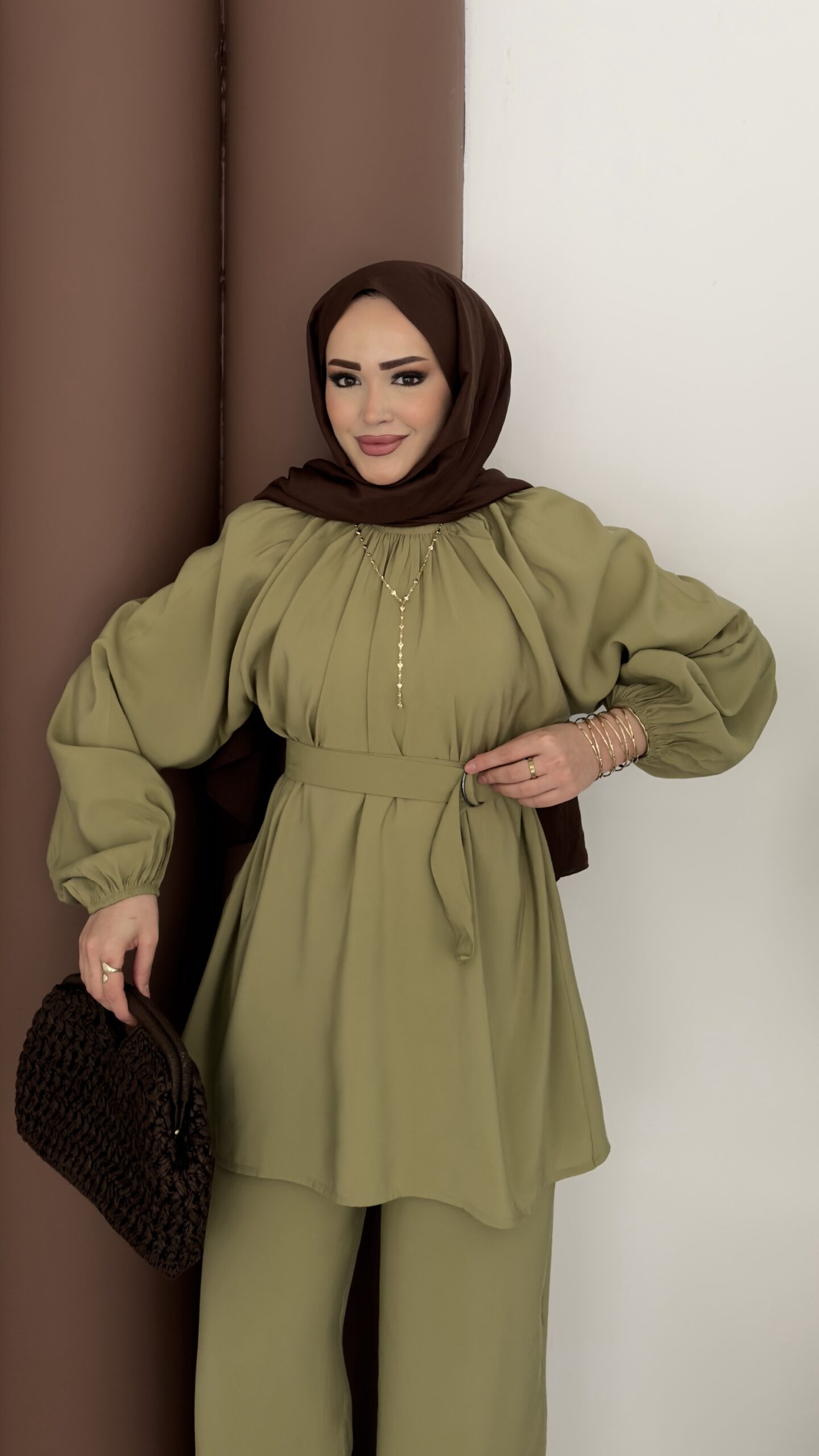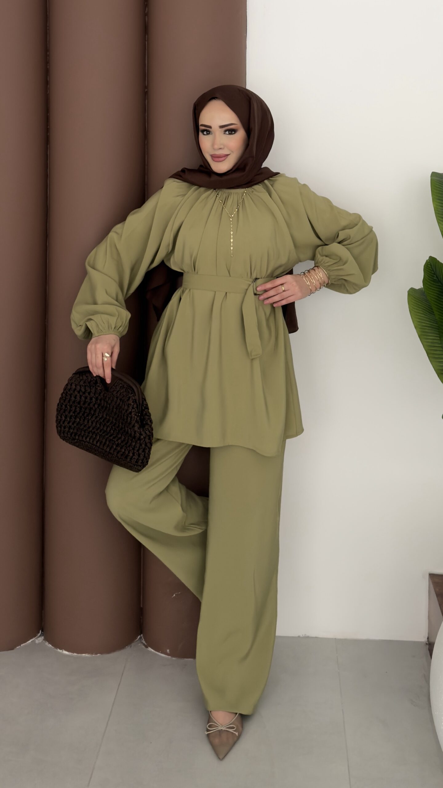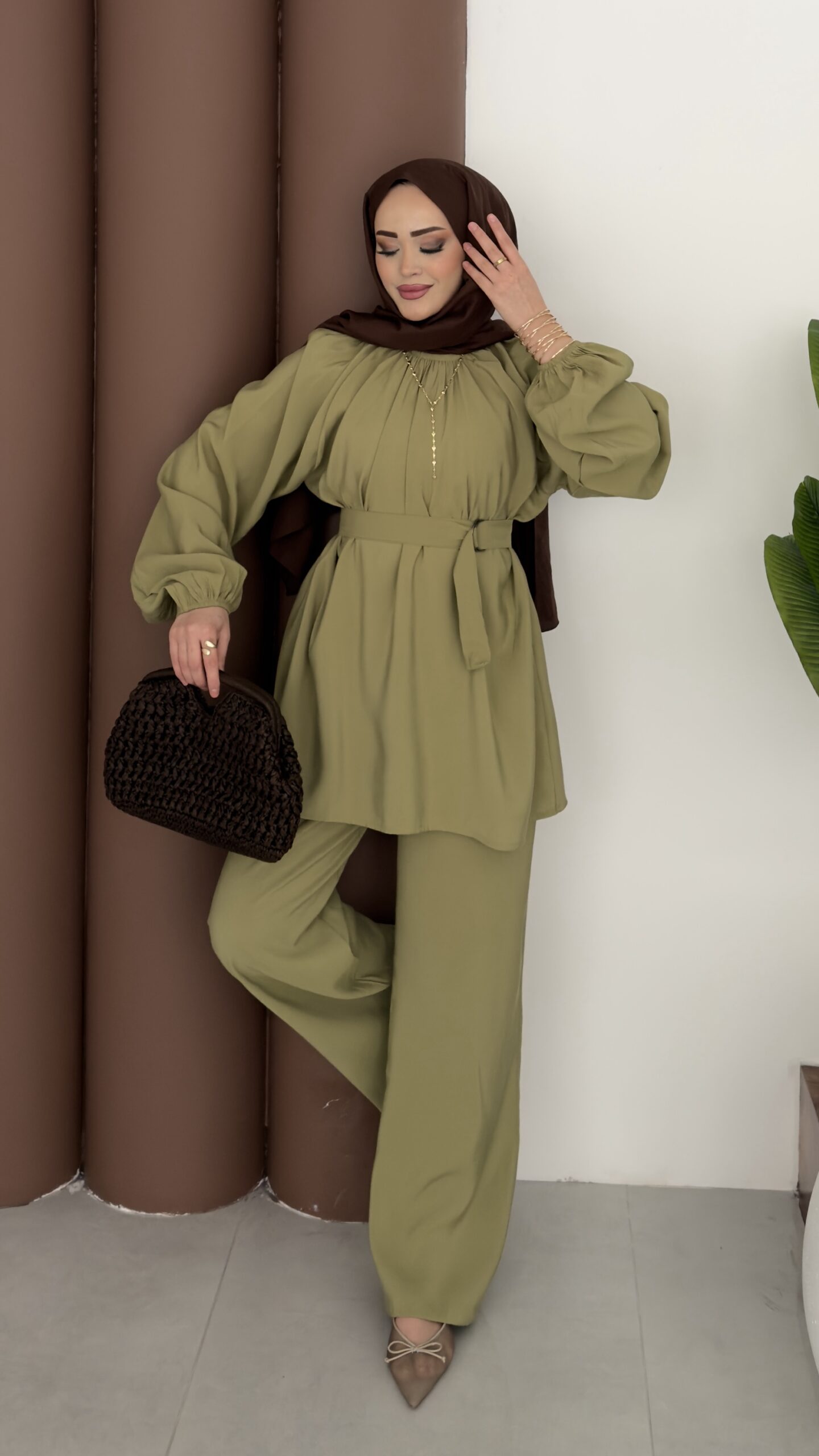 Casual Modal Kemerli İkili Takım – Yağyeşil