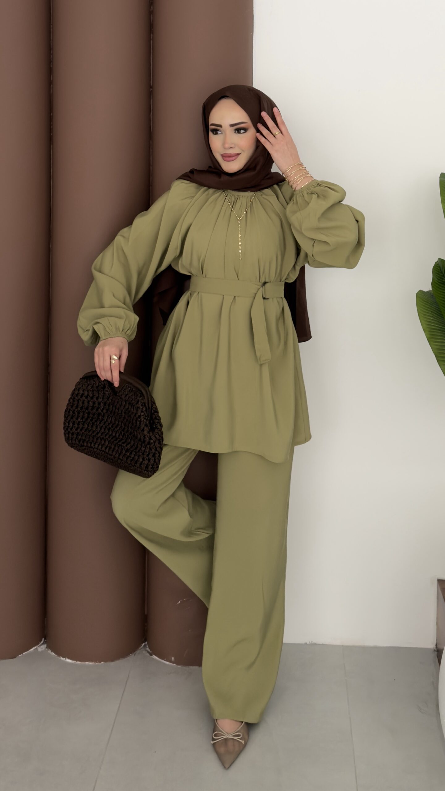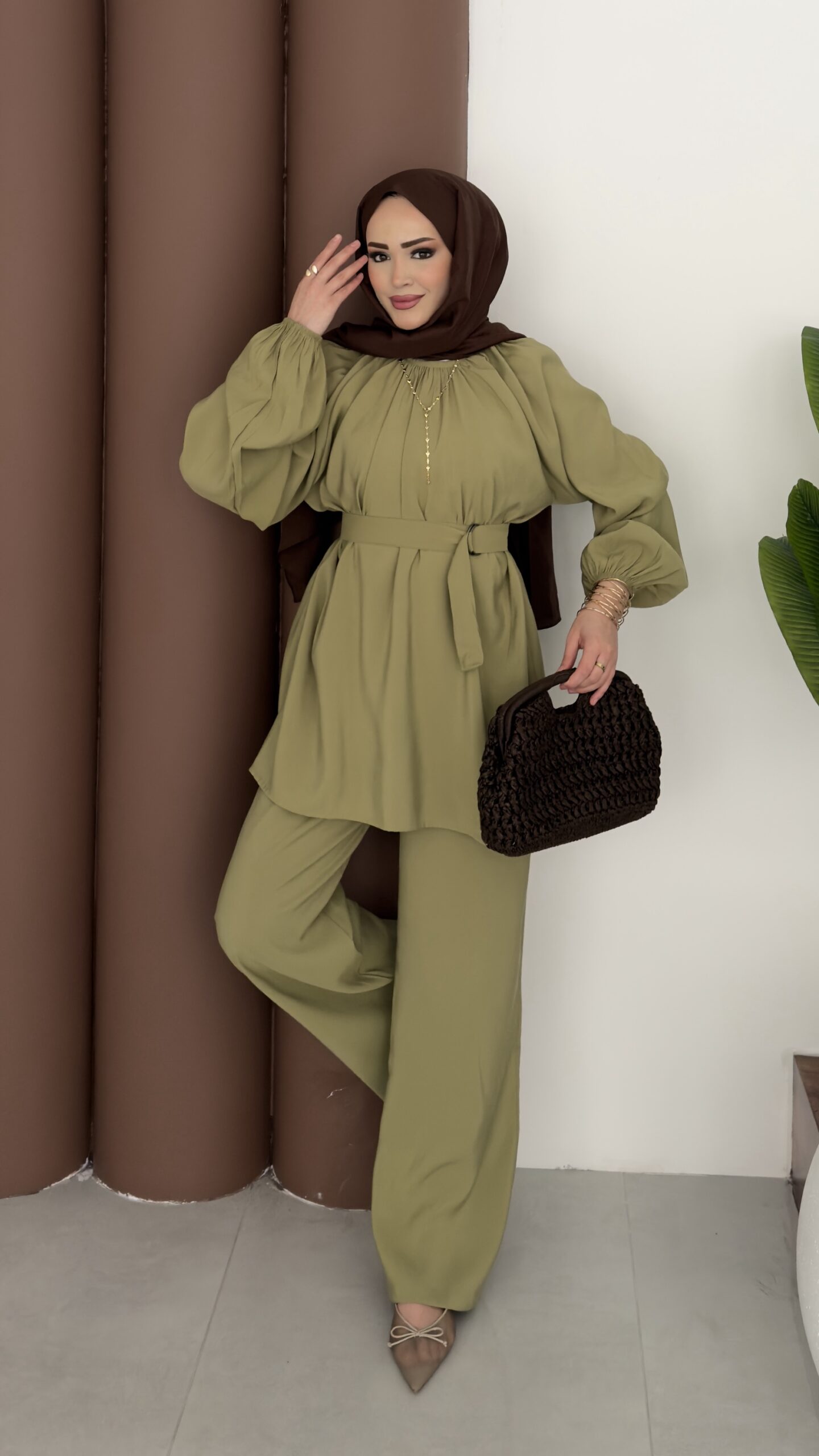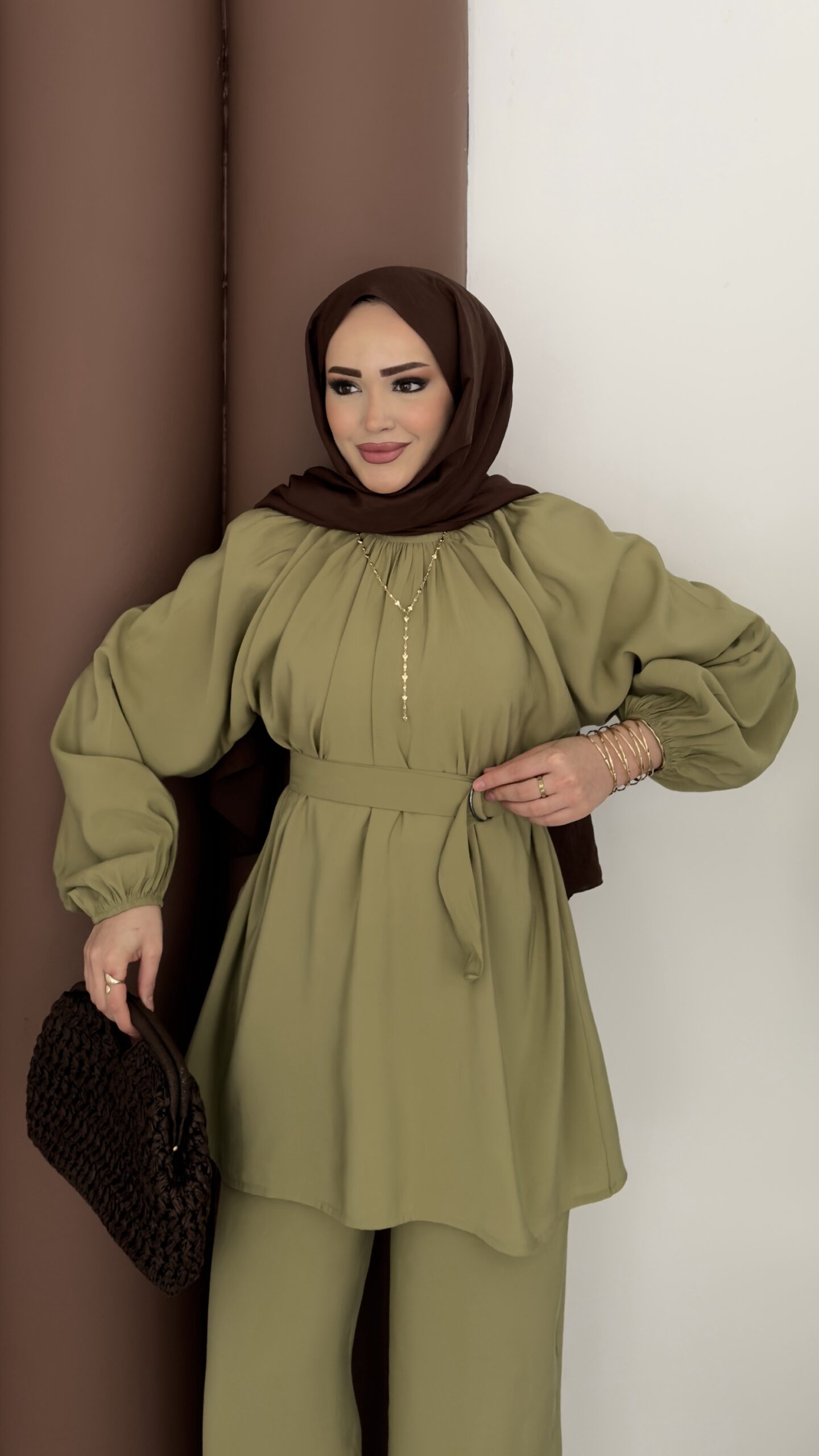 Casual Modal Kemerli İkili Takım – Yağyeşil