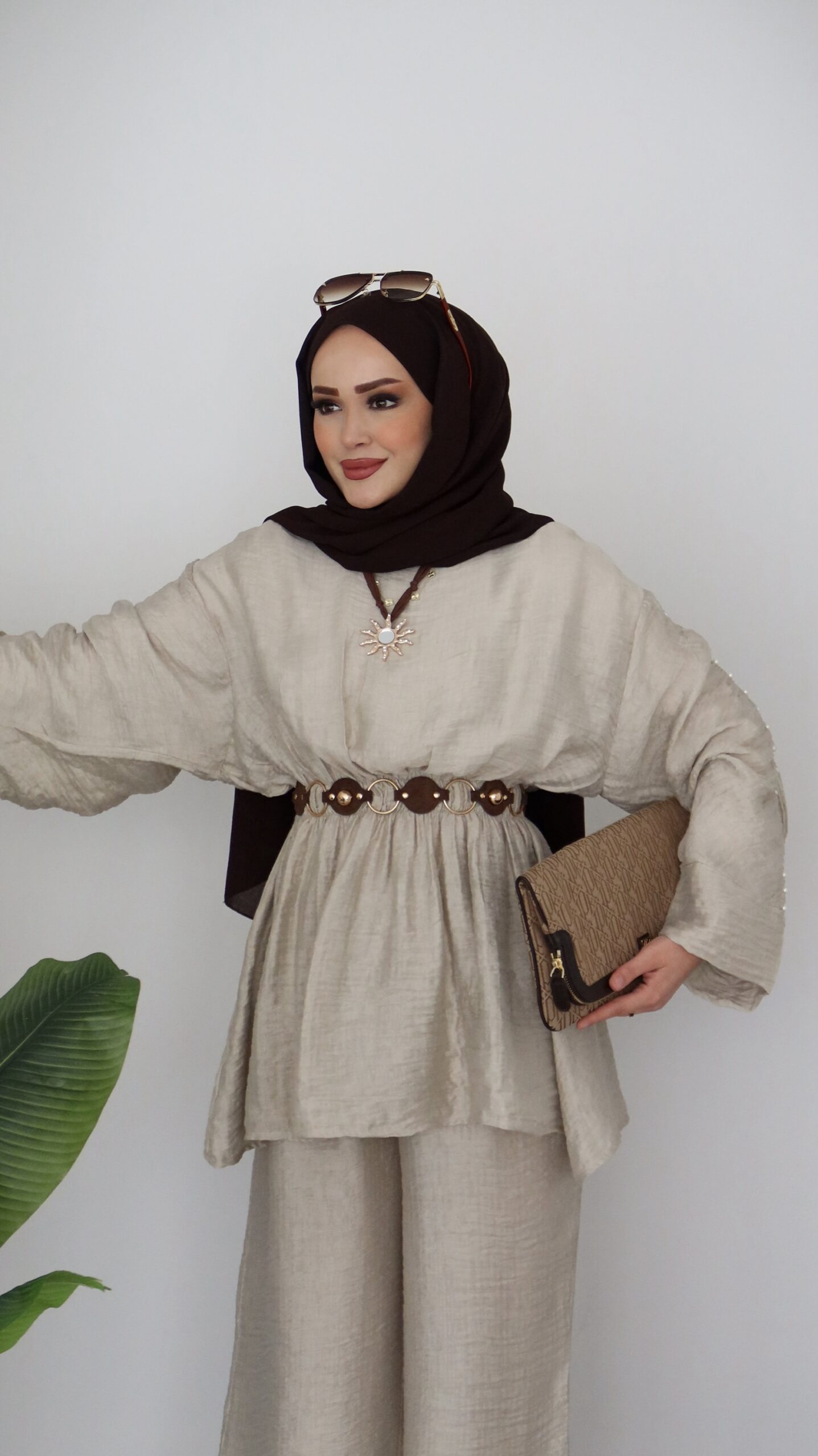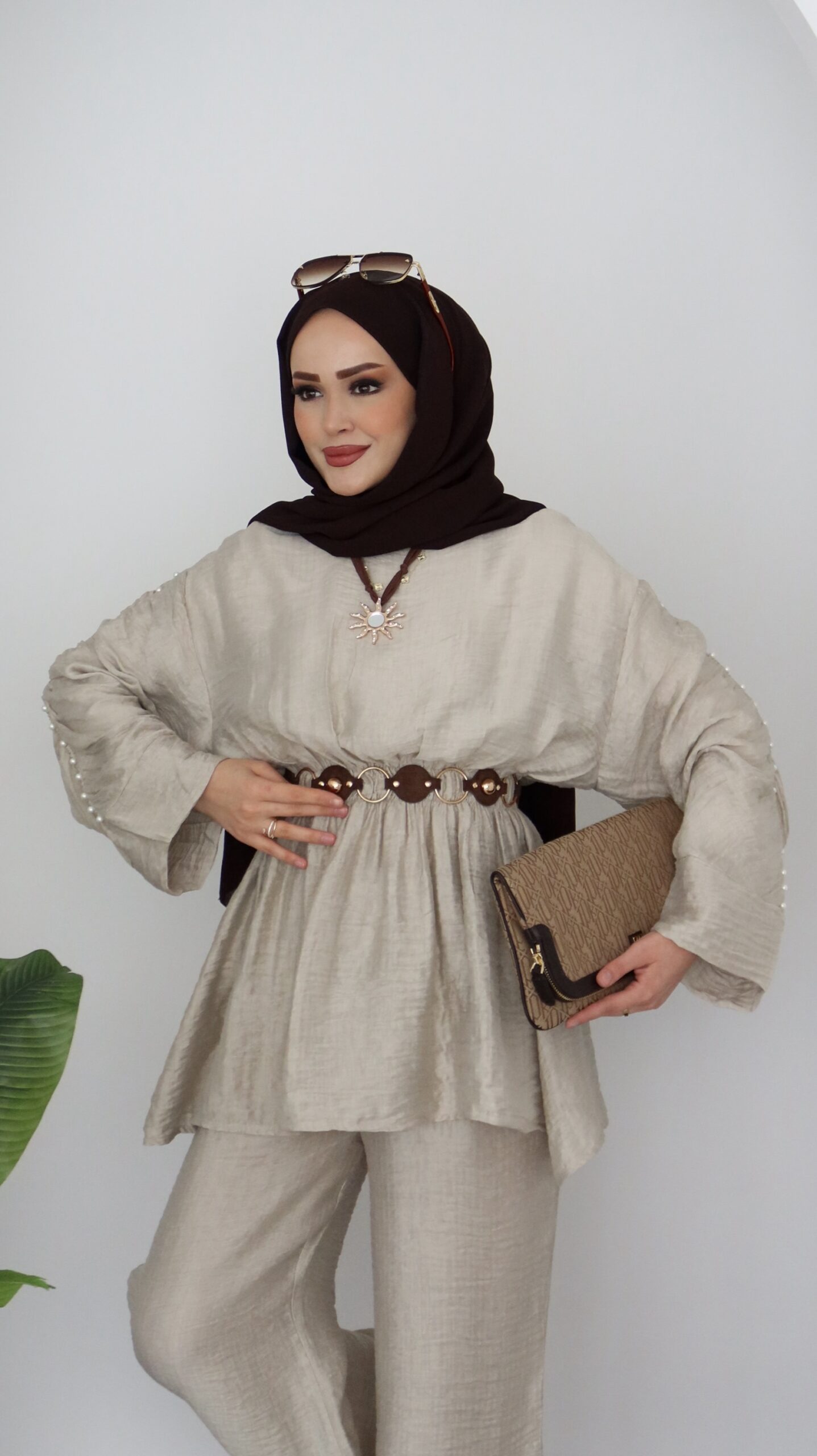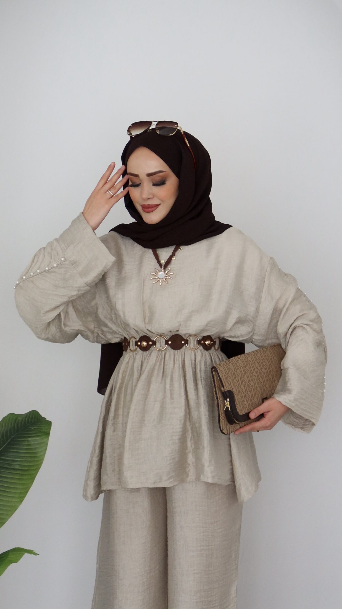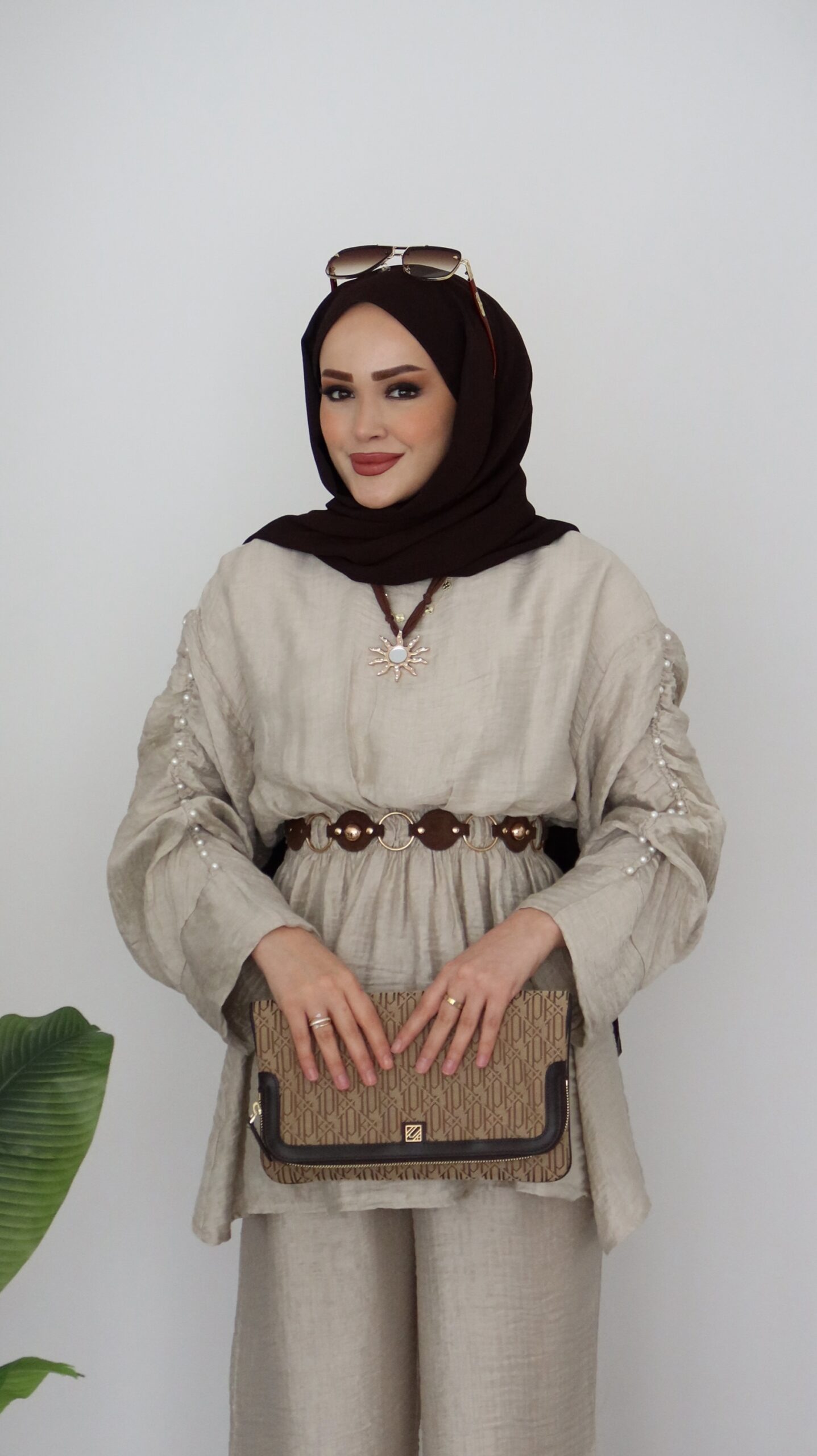 Quizi Oysh Tensel Garnili İkili Takım – Kahve