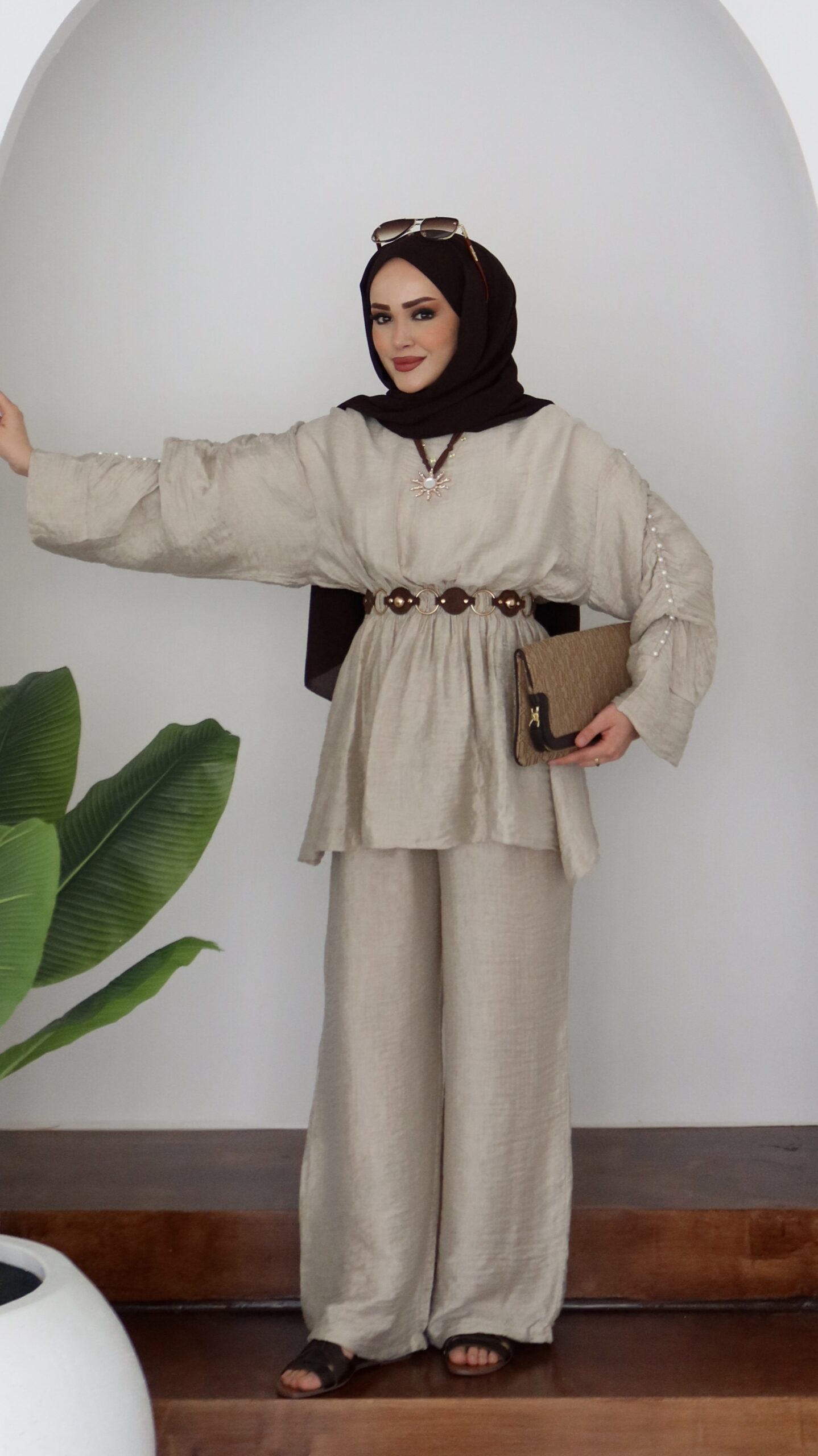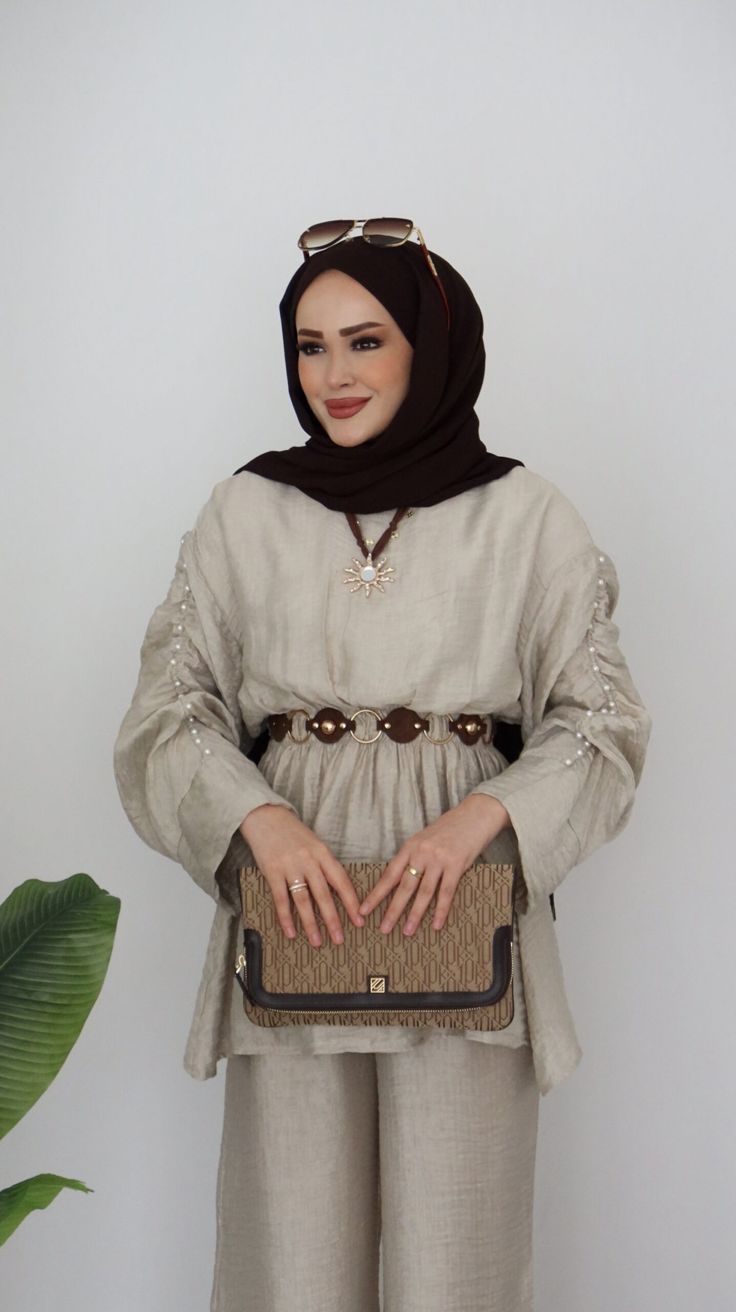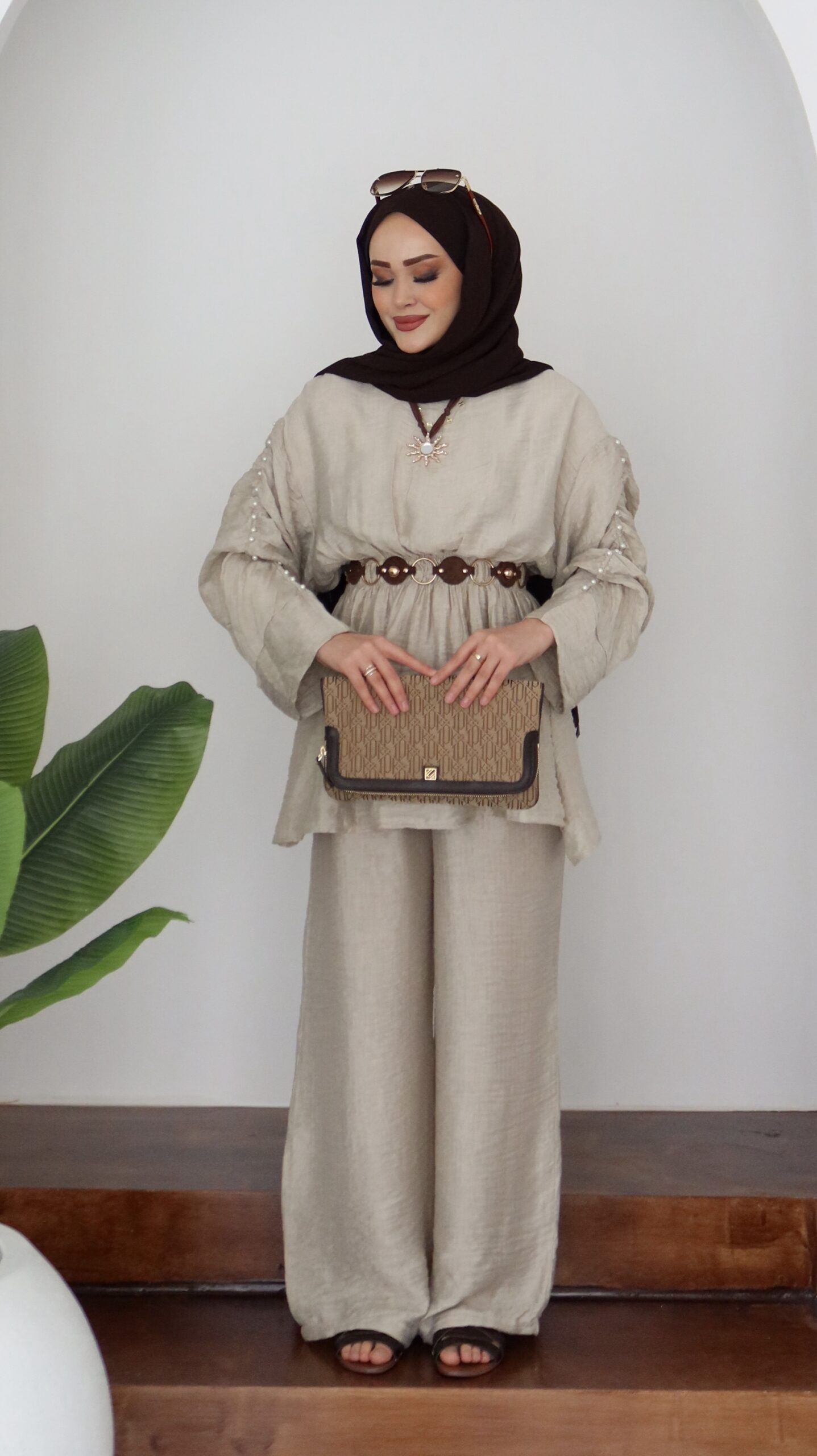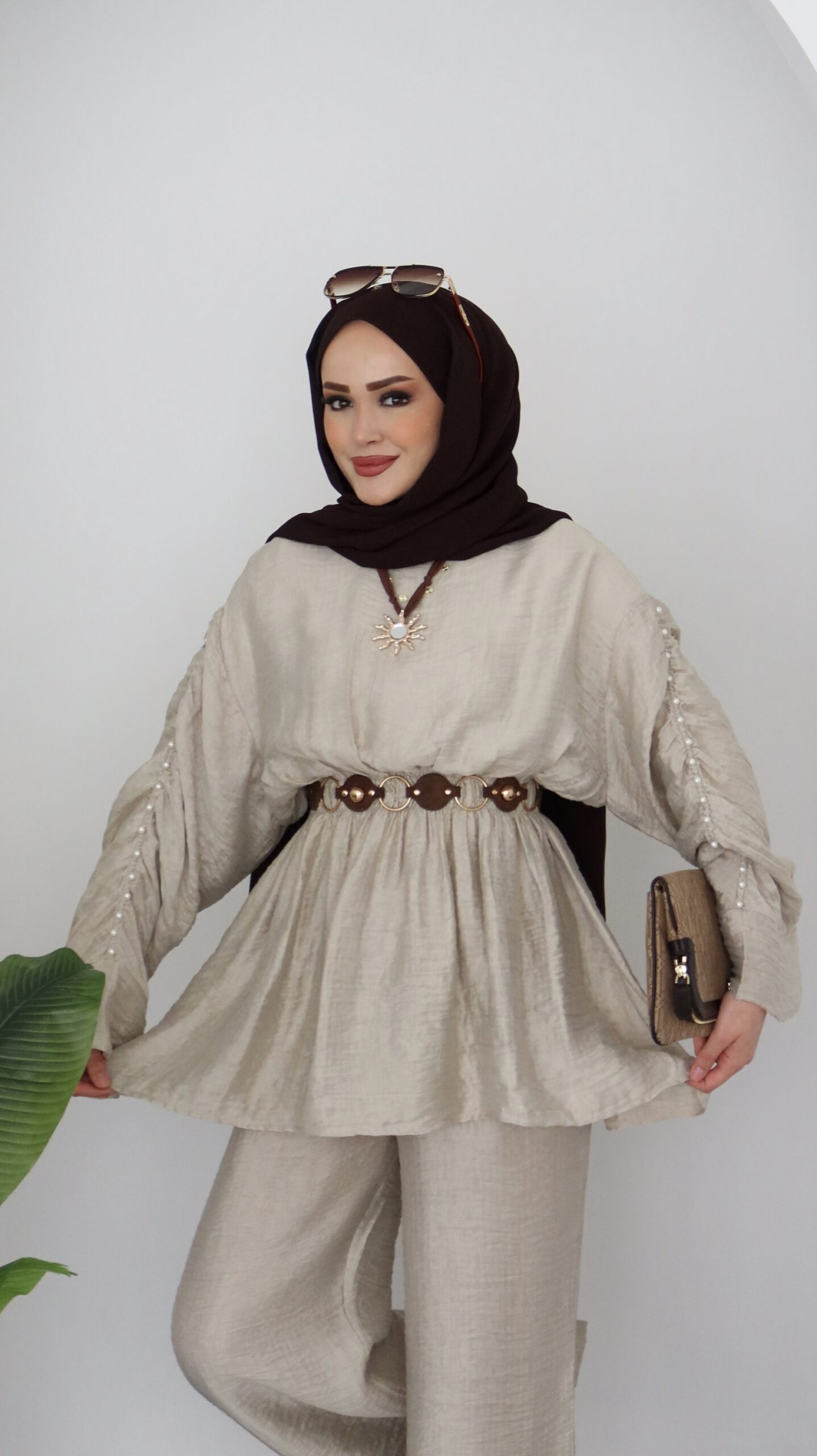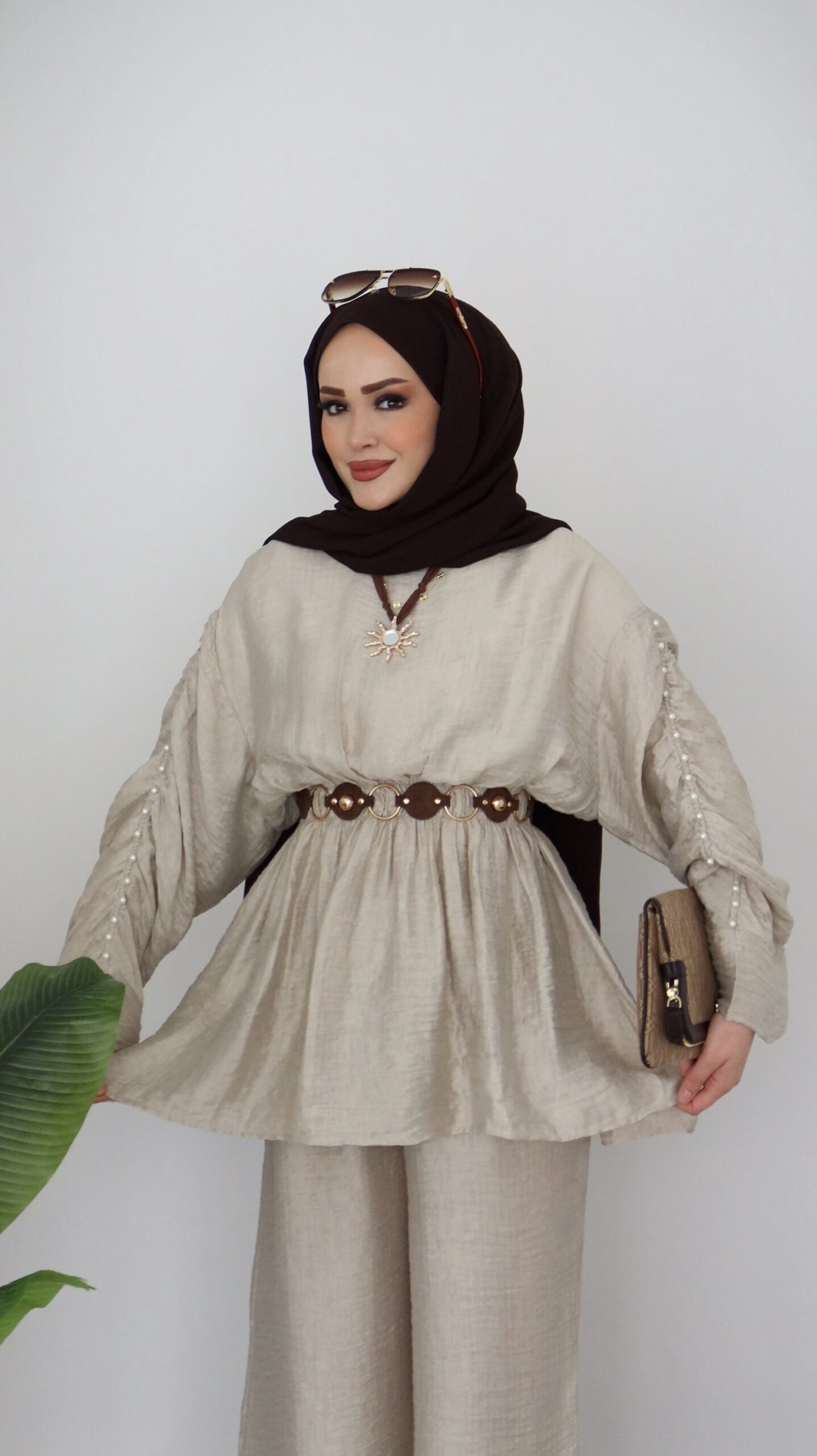 Quizi Oysh Tensel Garnili İkili Takım – Kahve
