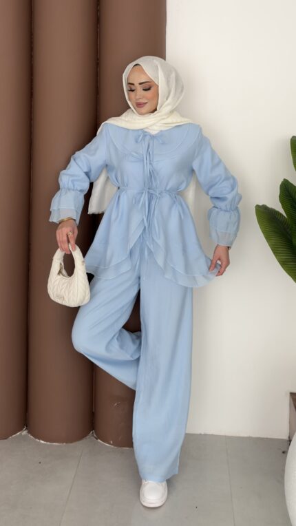 Lady Fırfırlı Vual İkili Takım – Mavi
