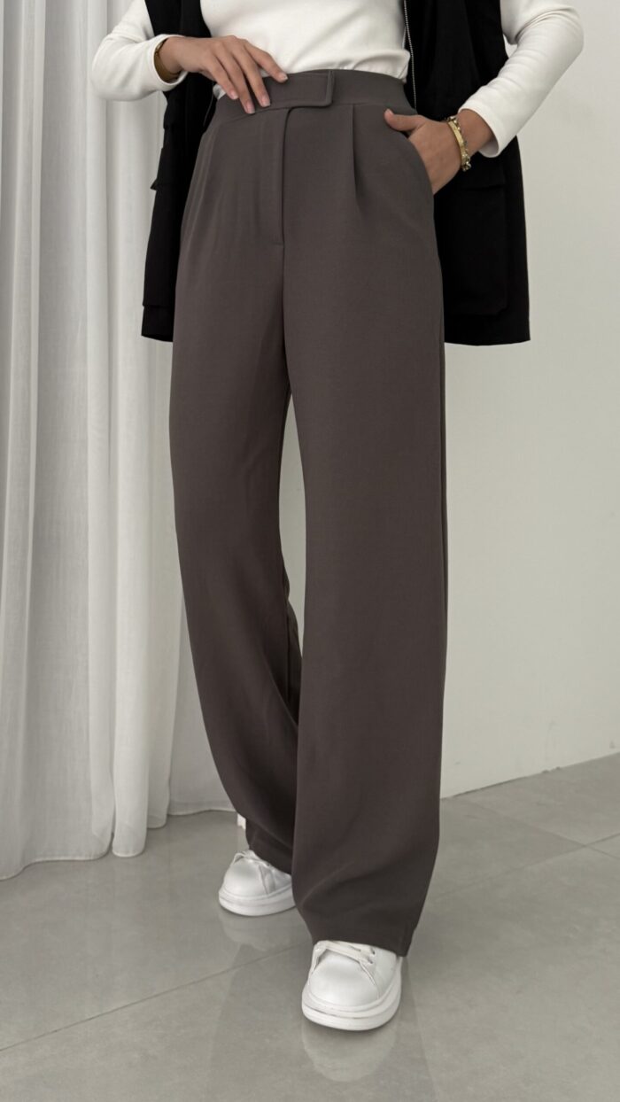 Çırtçırtlı Palazzo Krep Pantolon – Antrasit