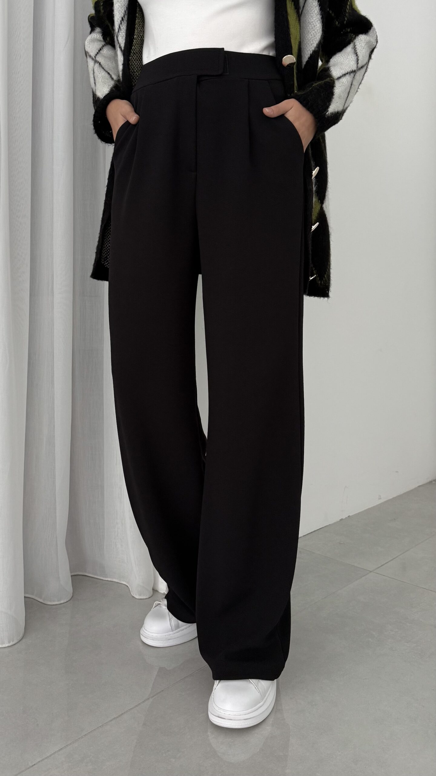 Çırtçırtlı Palazzo Krep Pantolon – Siyah