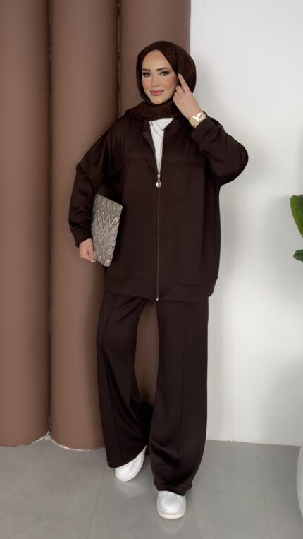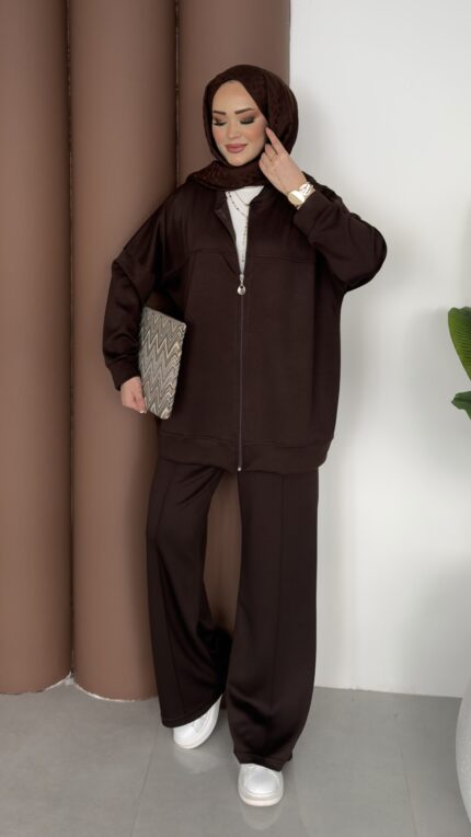 Fermuarlı Basic İkili Takım – Kahverengi