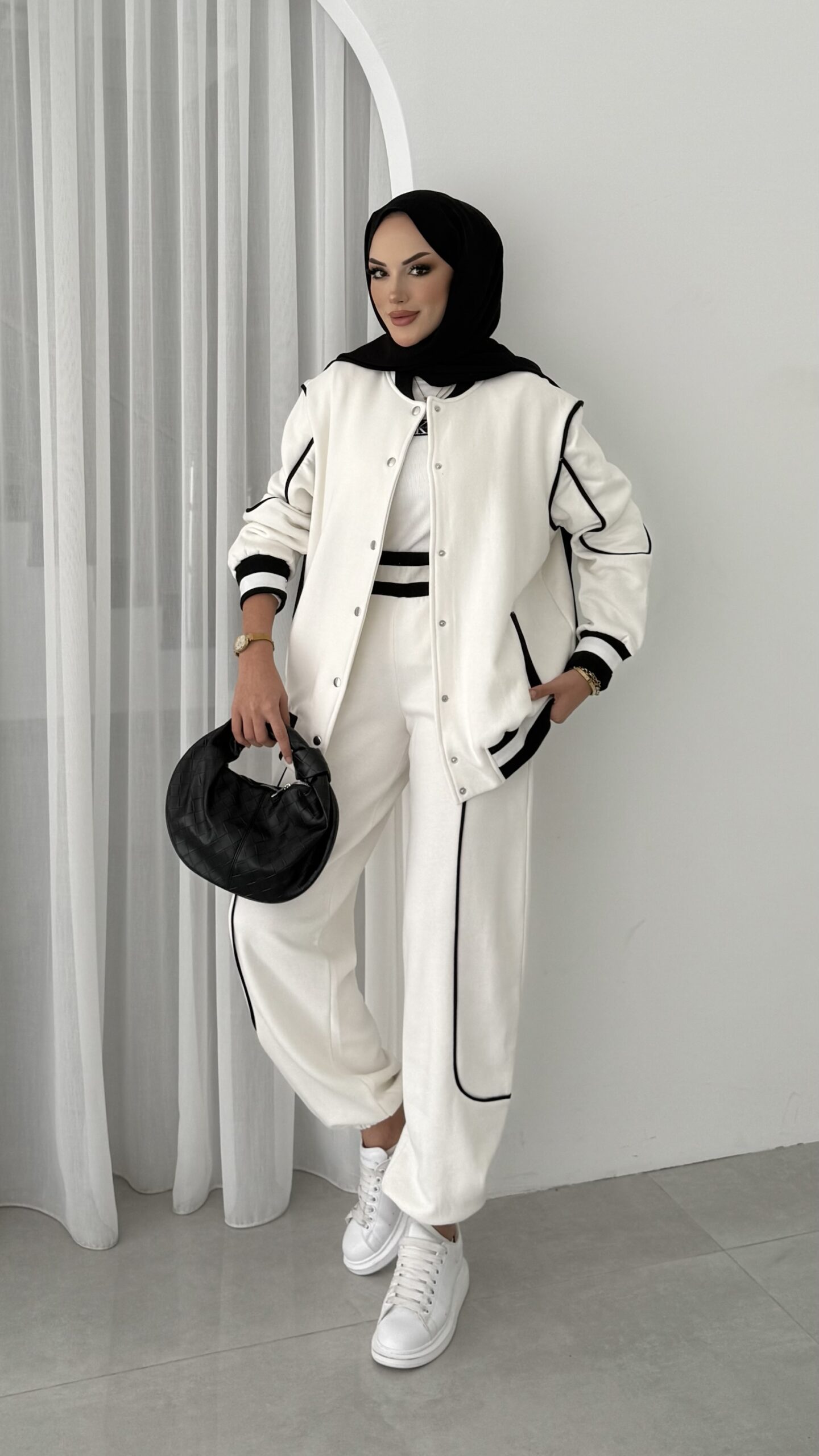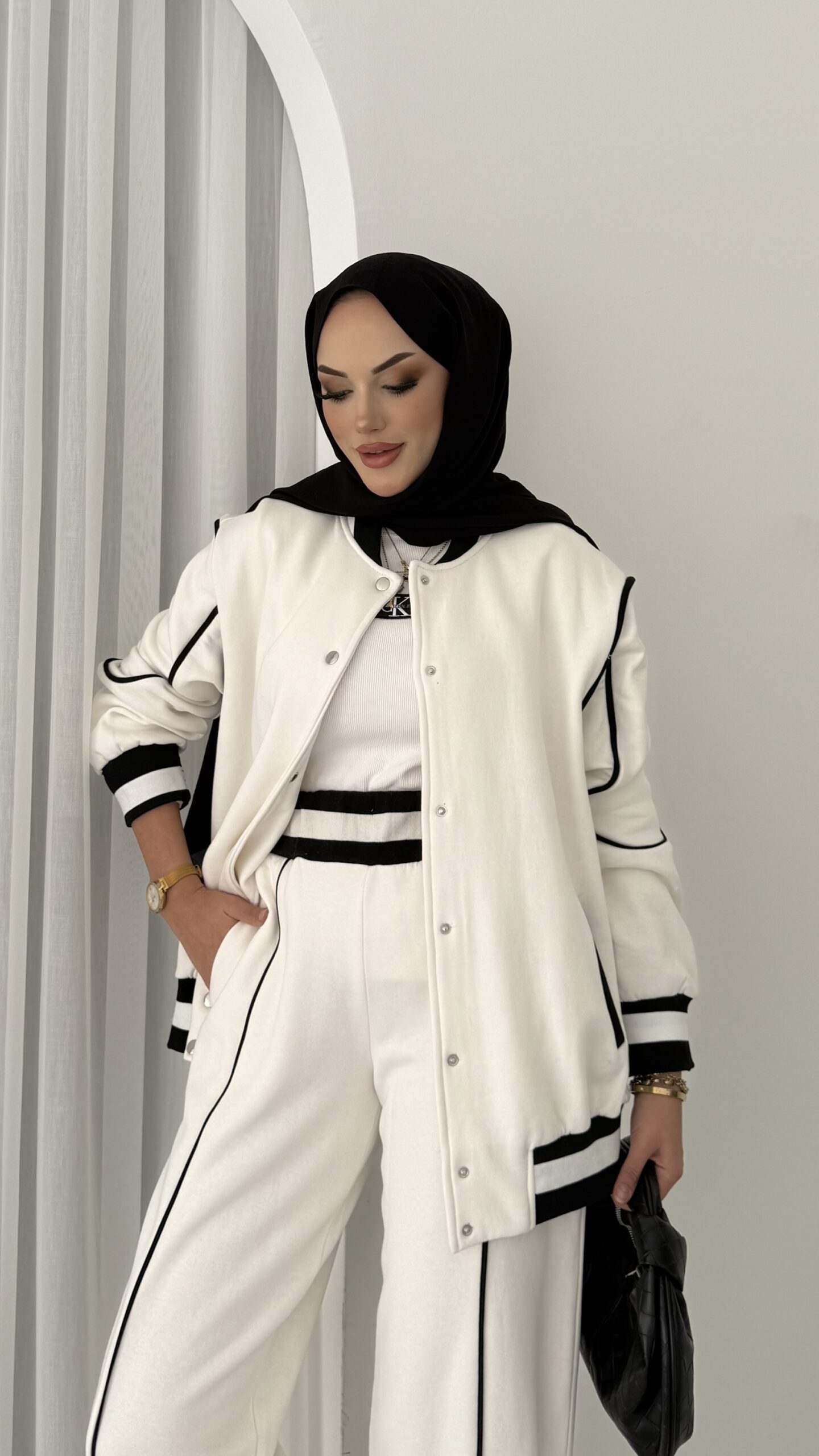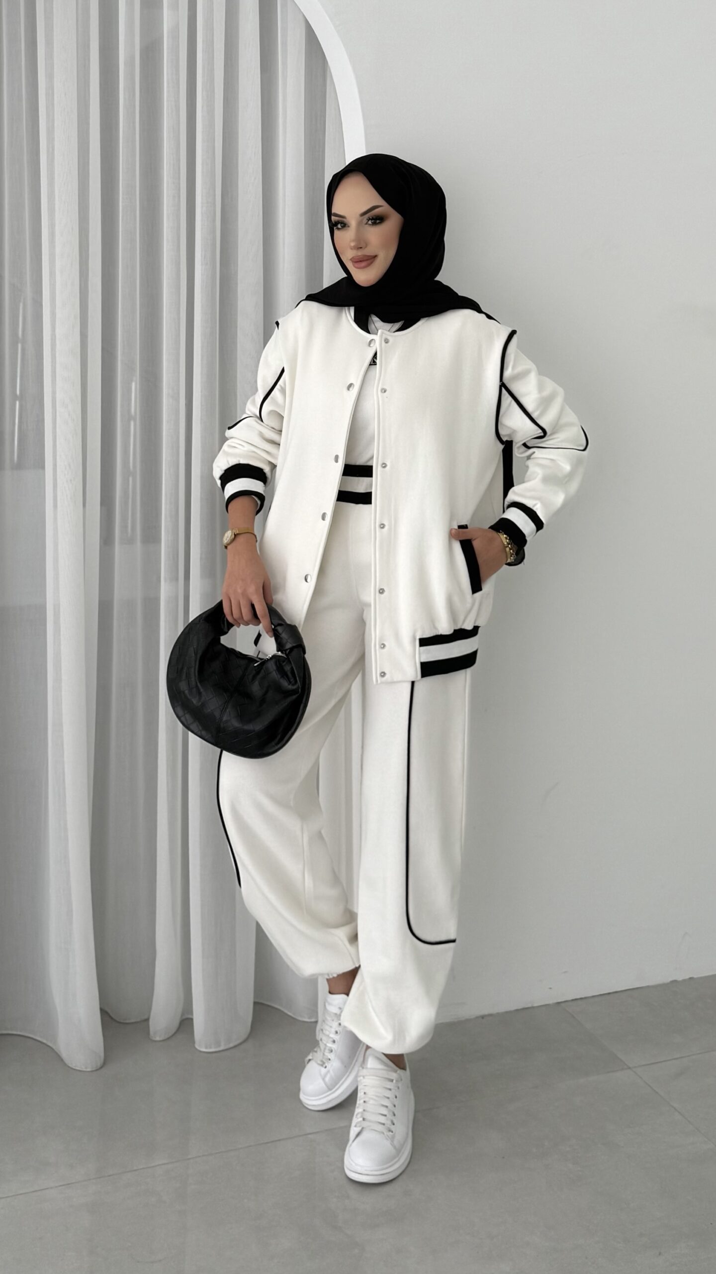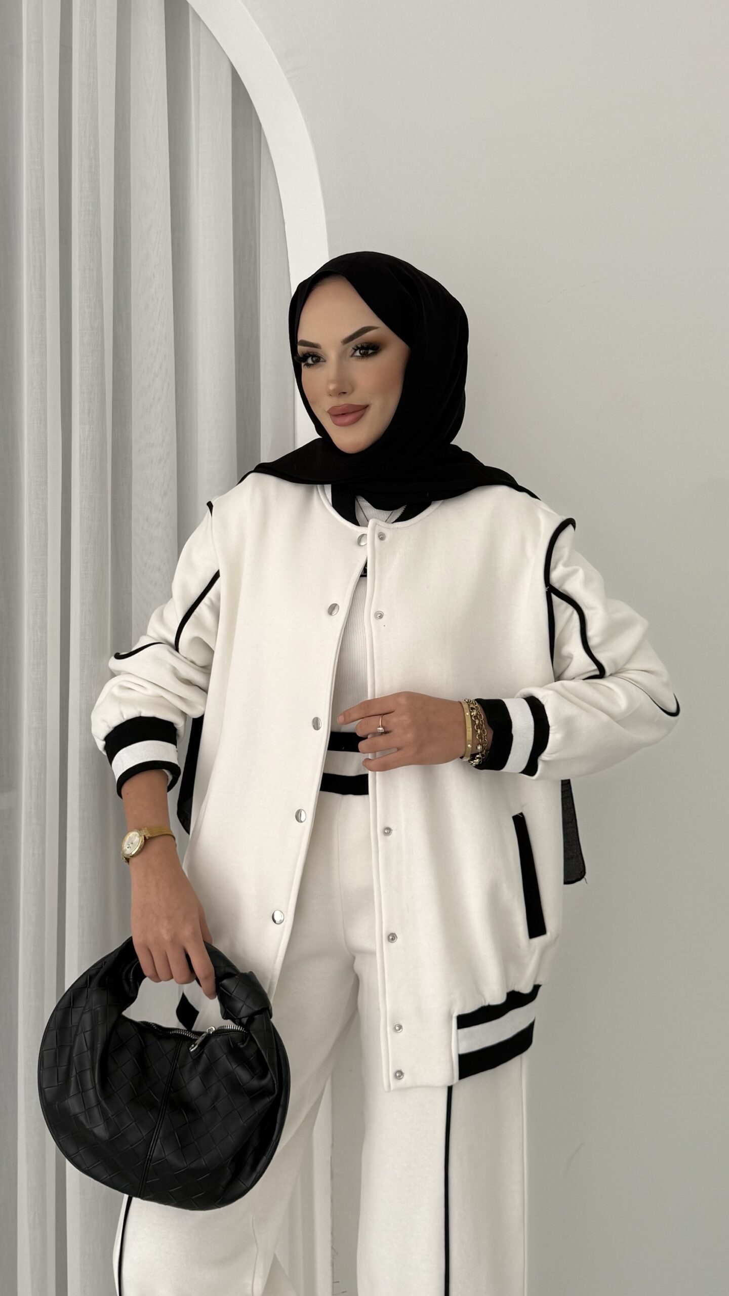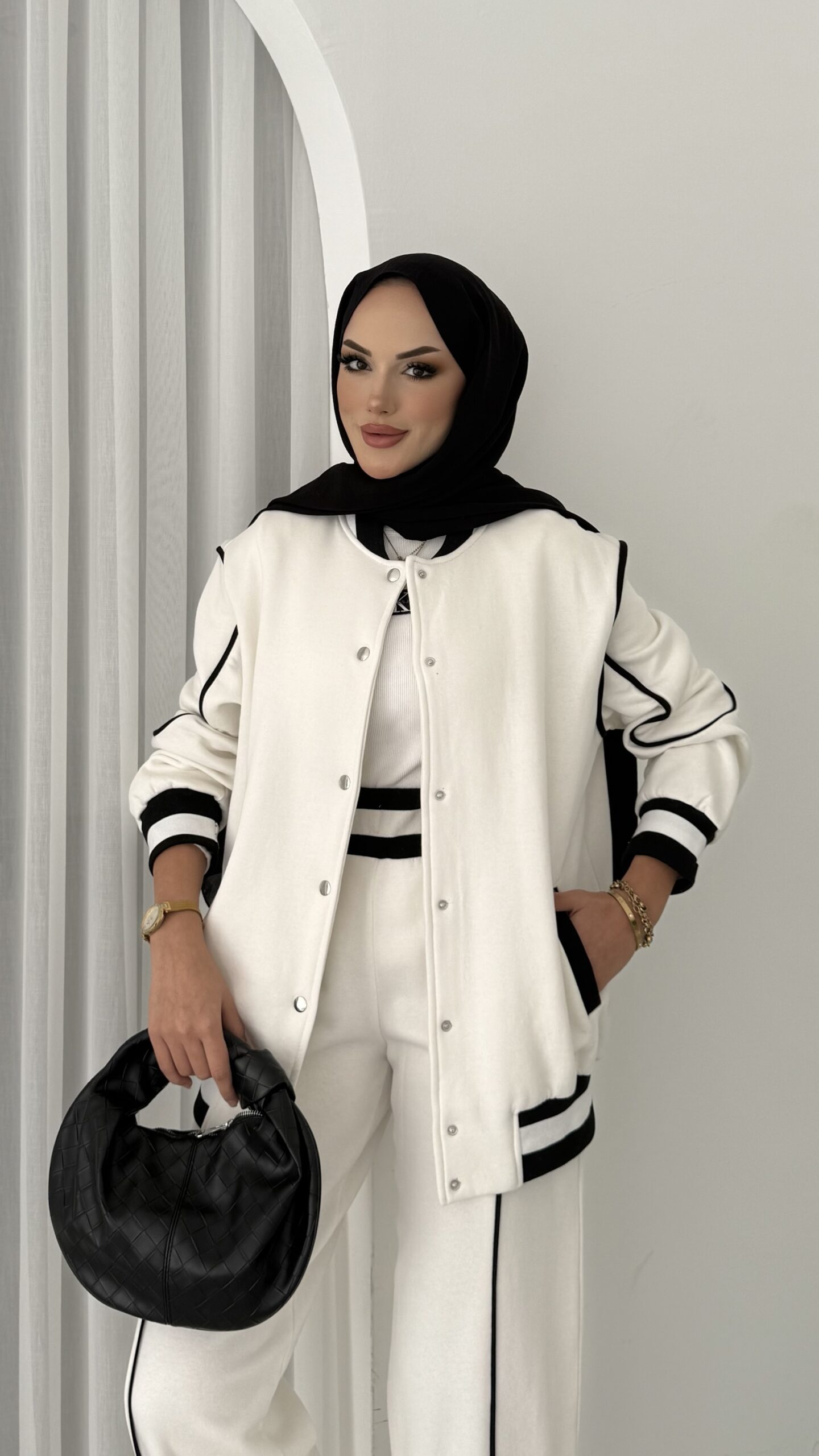 Collej Bomber Şeritli İkili Takım – Beyaz