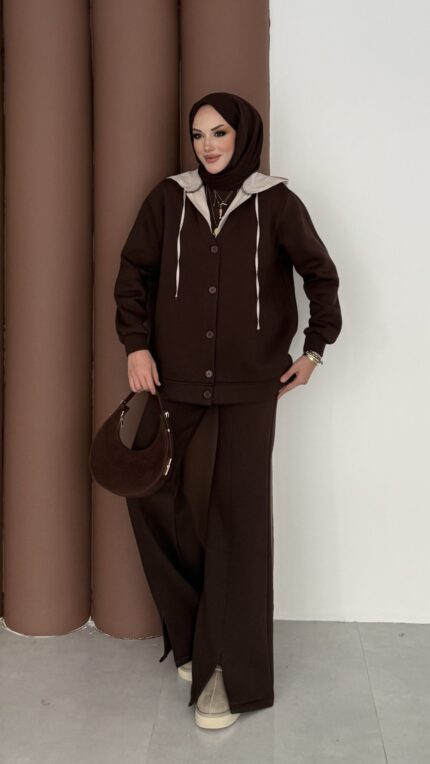 Snow Trenç Kapşonlu Şardonlu İkili Takım – Kahverengi