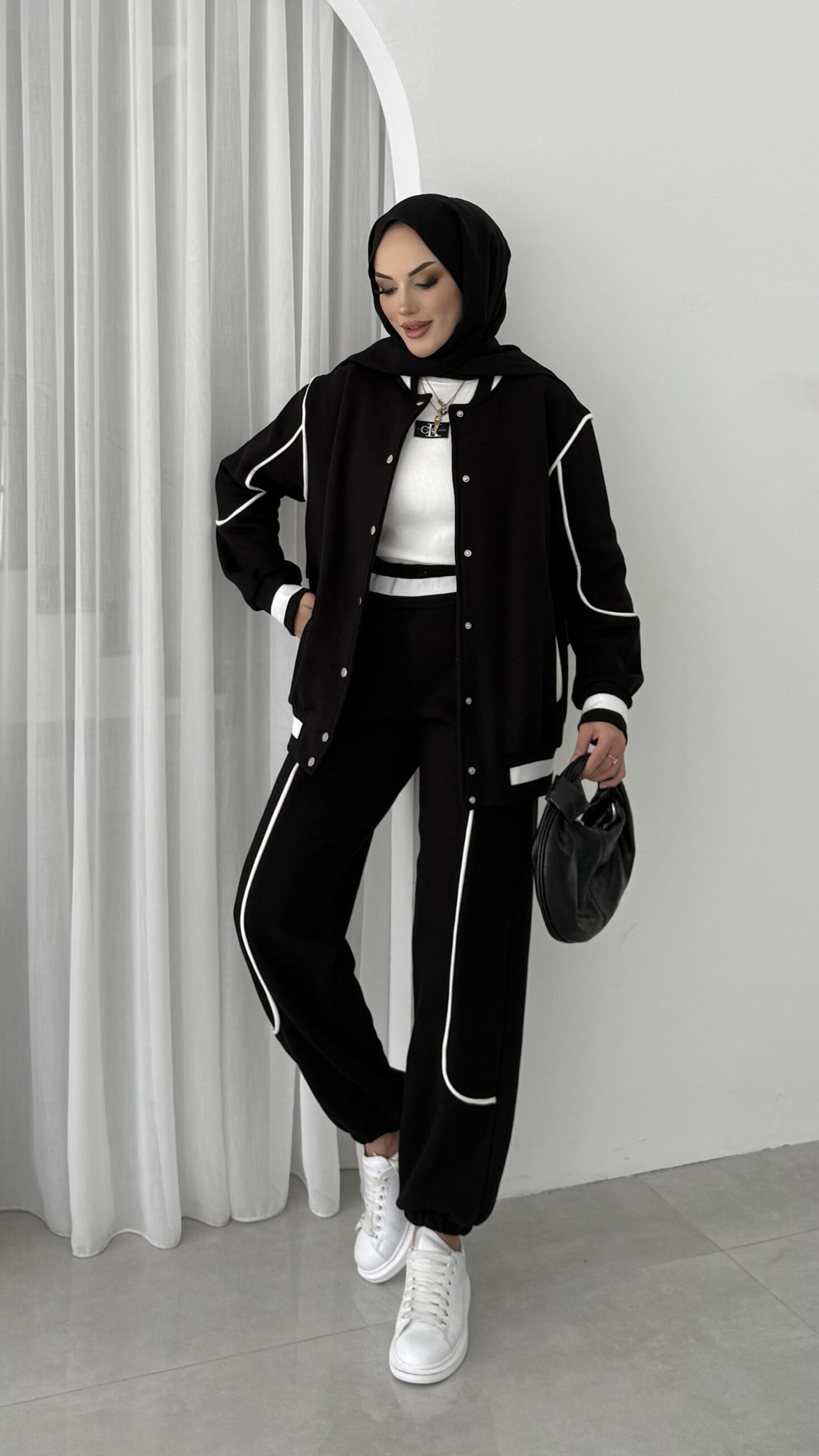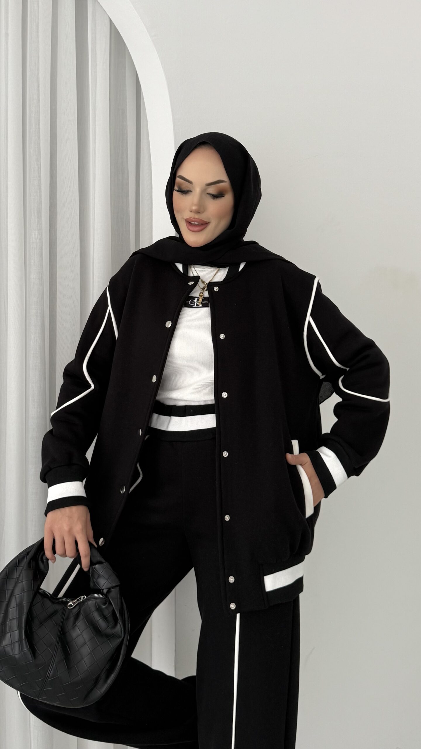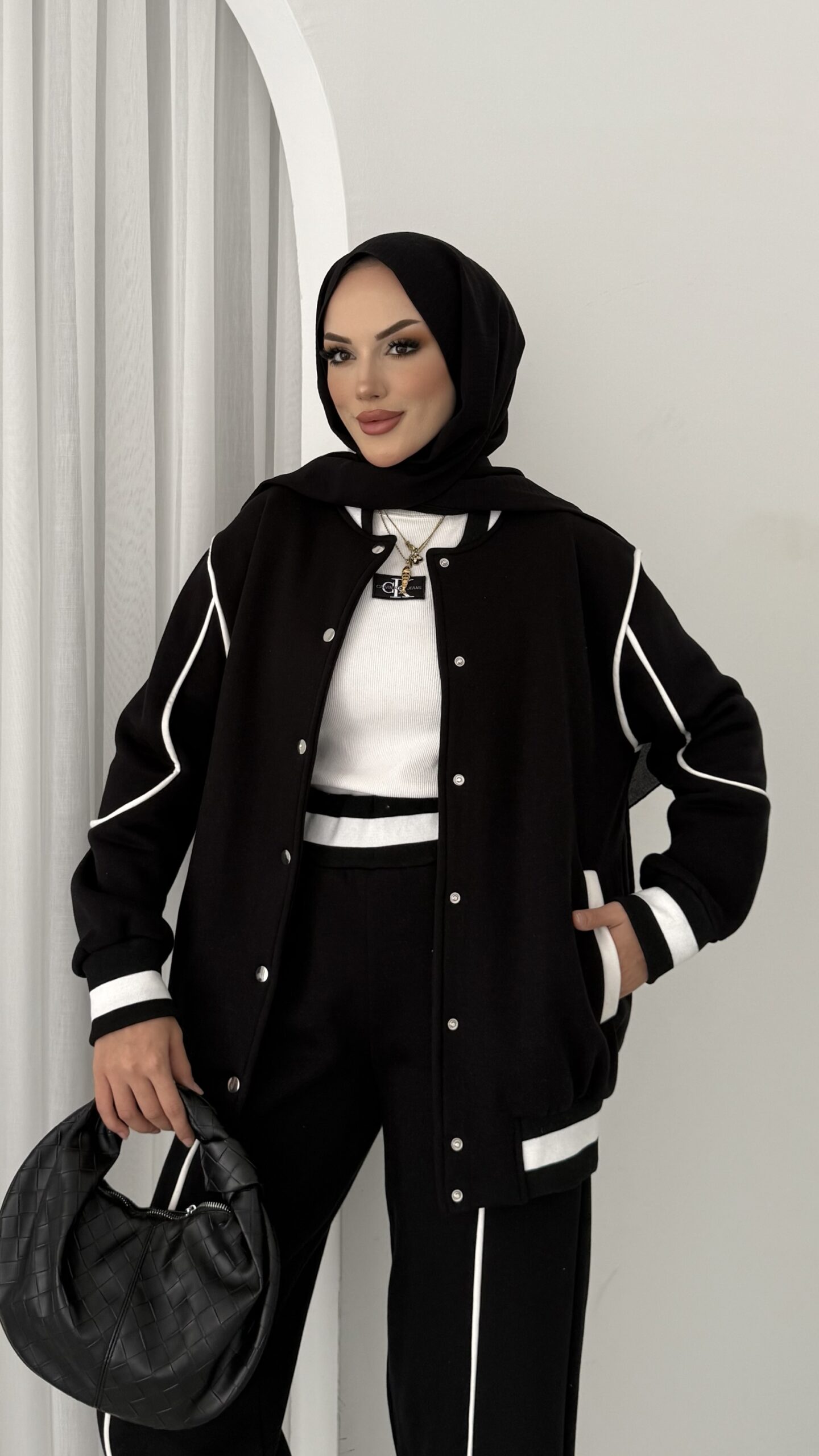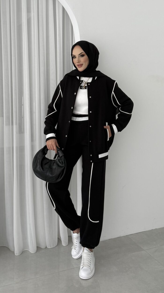 Collej Bomber Şeritli İkili Takım – Siyah