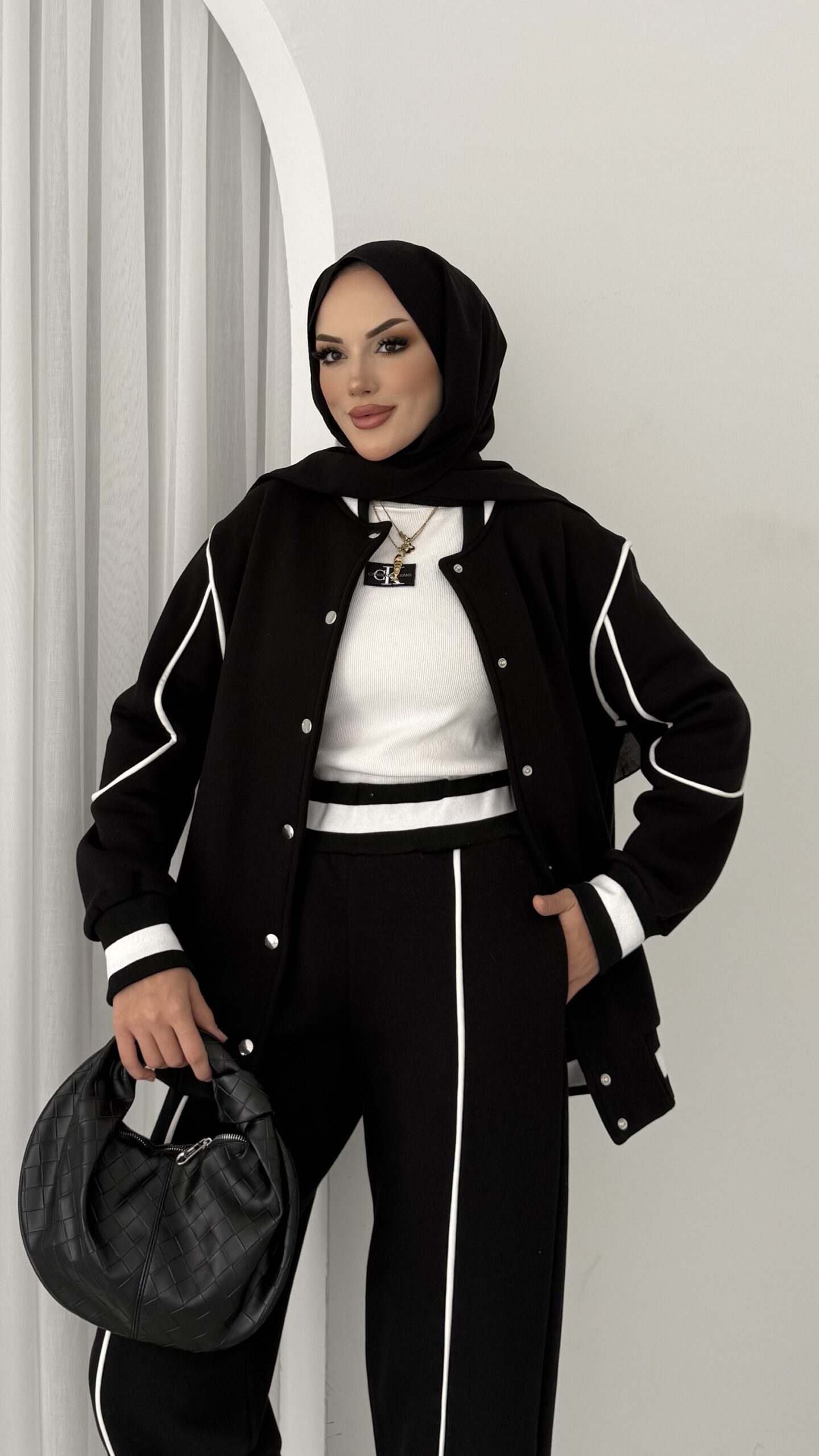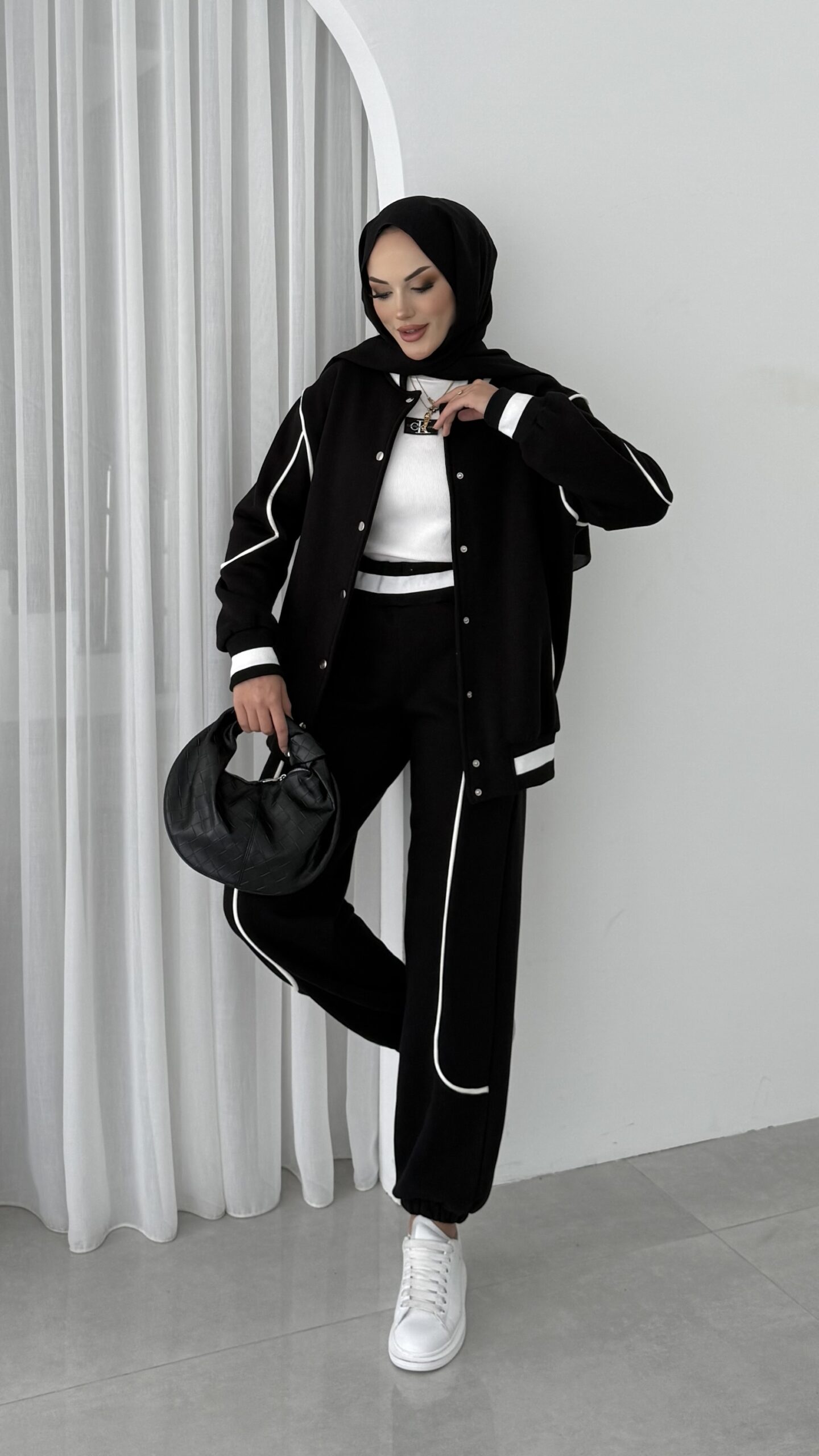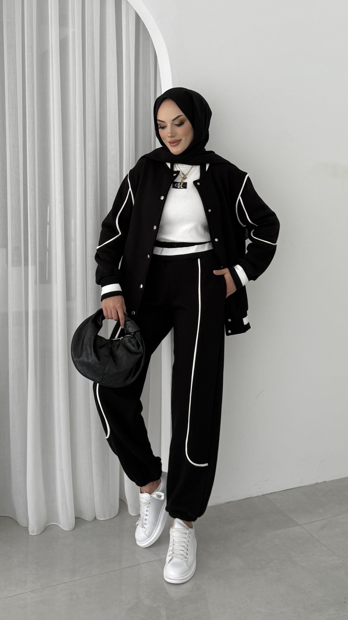 Collej Bomber Şeritli İkili Takım – Siyah
