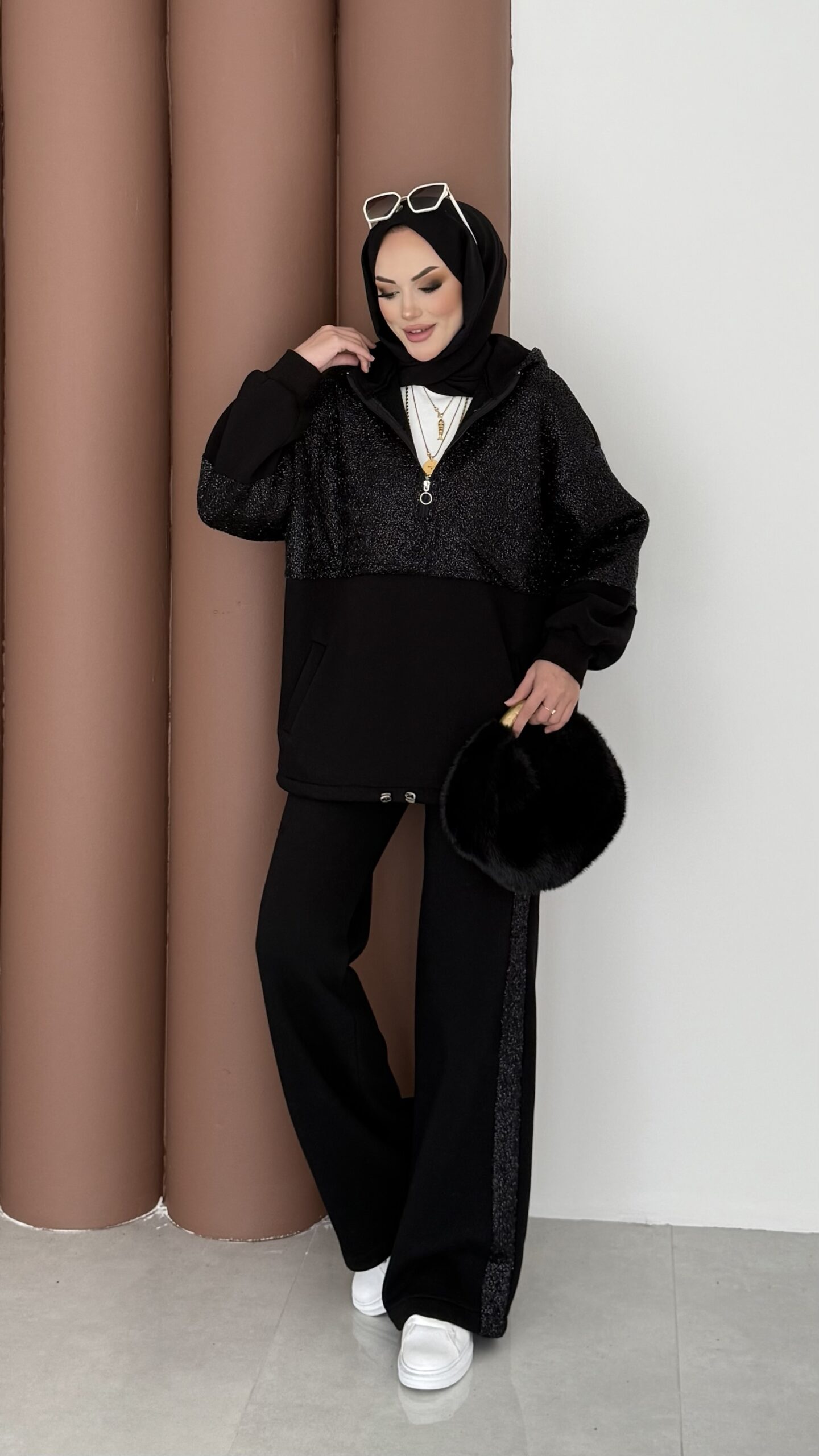 Cool Kum Payet Şardonlu İkili Takım – Siyah