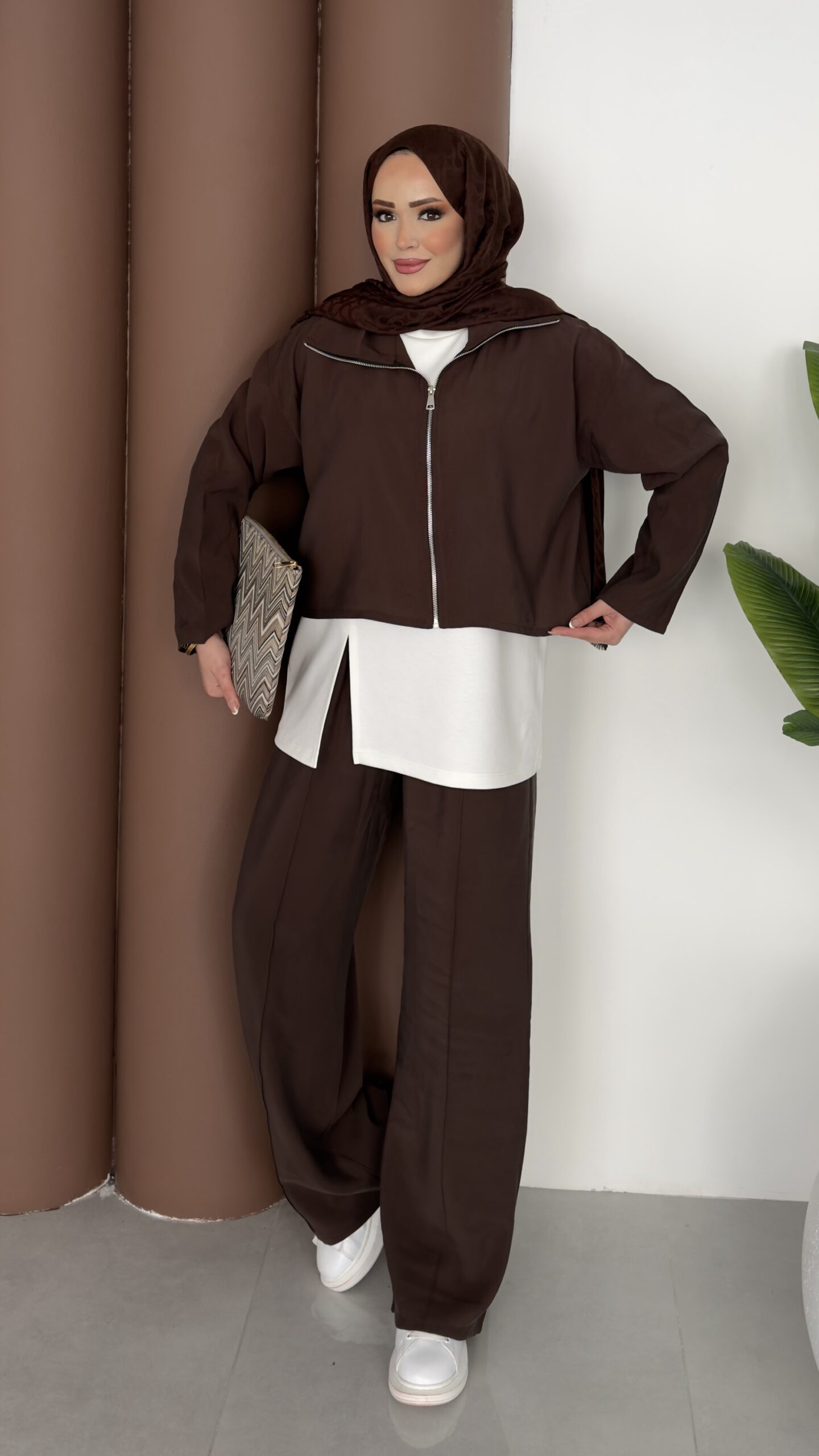 Crop Tensel İçlikli İkili Takım – Kahverengi