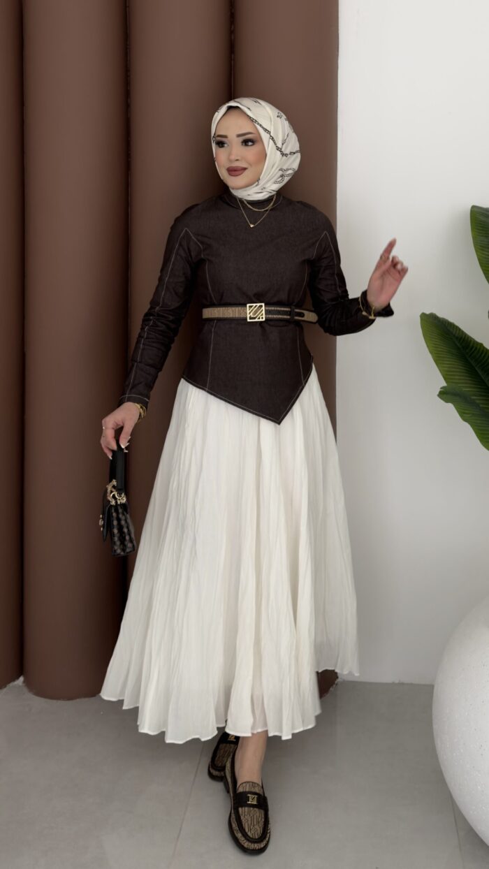 Ürün Kumaşı: Üst:( Kot), Etek: (Crush) Kumaştır