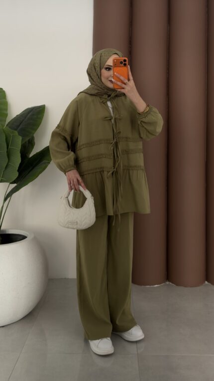 Sunset Bağcıklı Tensel İkili Takım – Yağyeşil