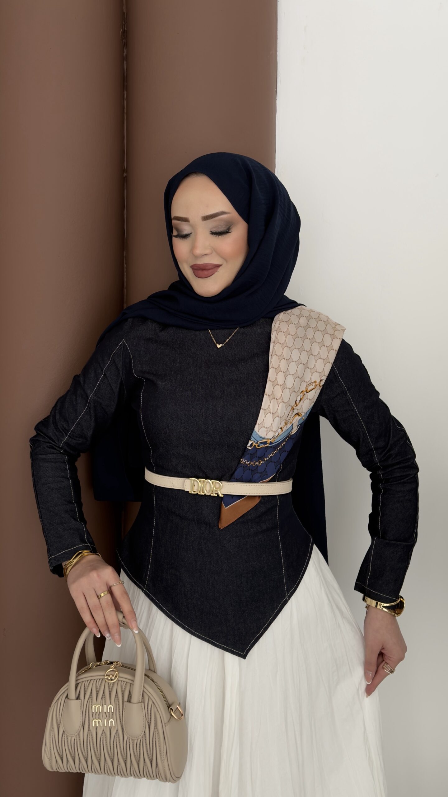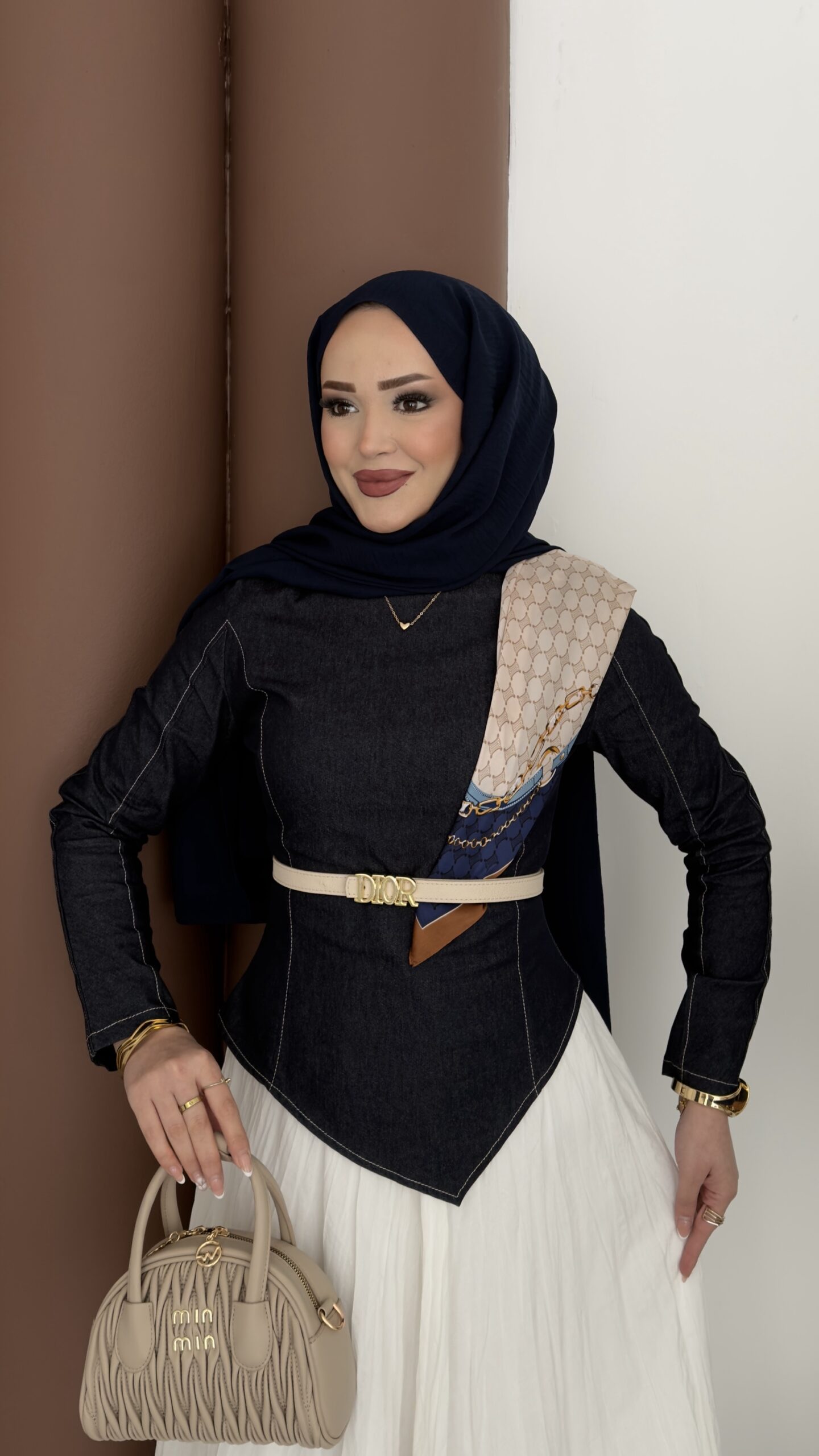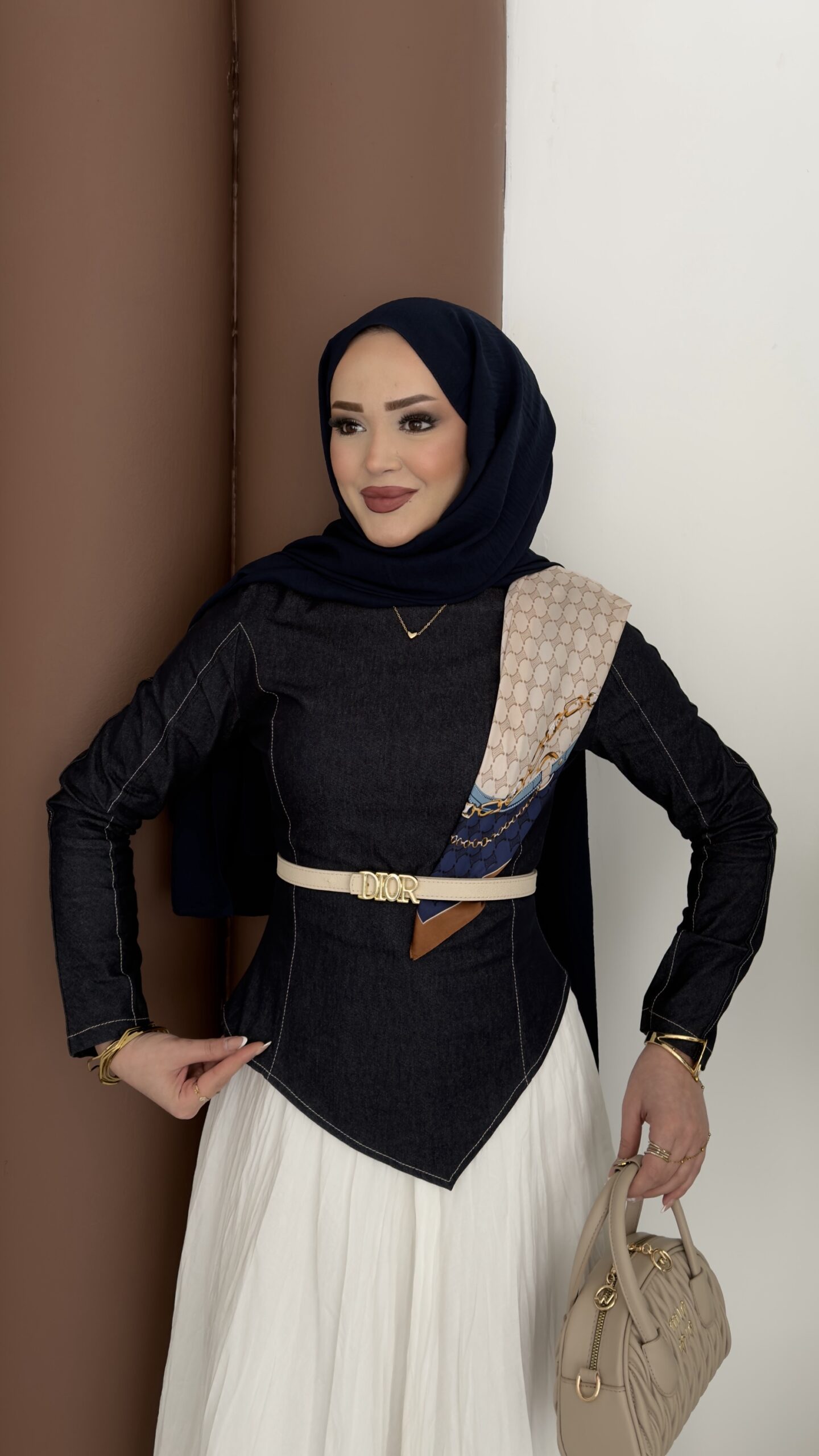 ZRA Muadil Örgü Kemerli Denim Takım – Koyu Mavi