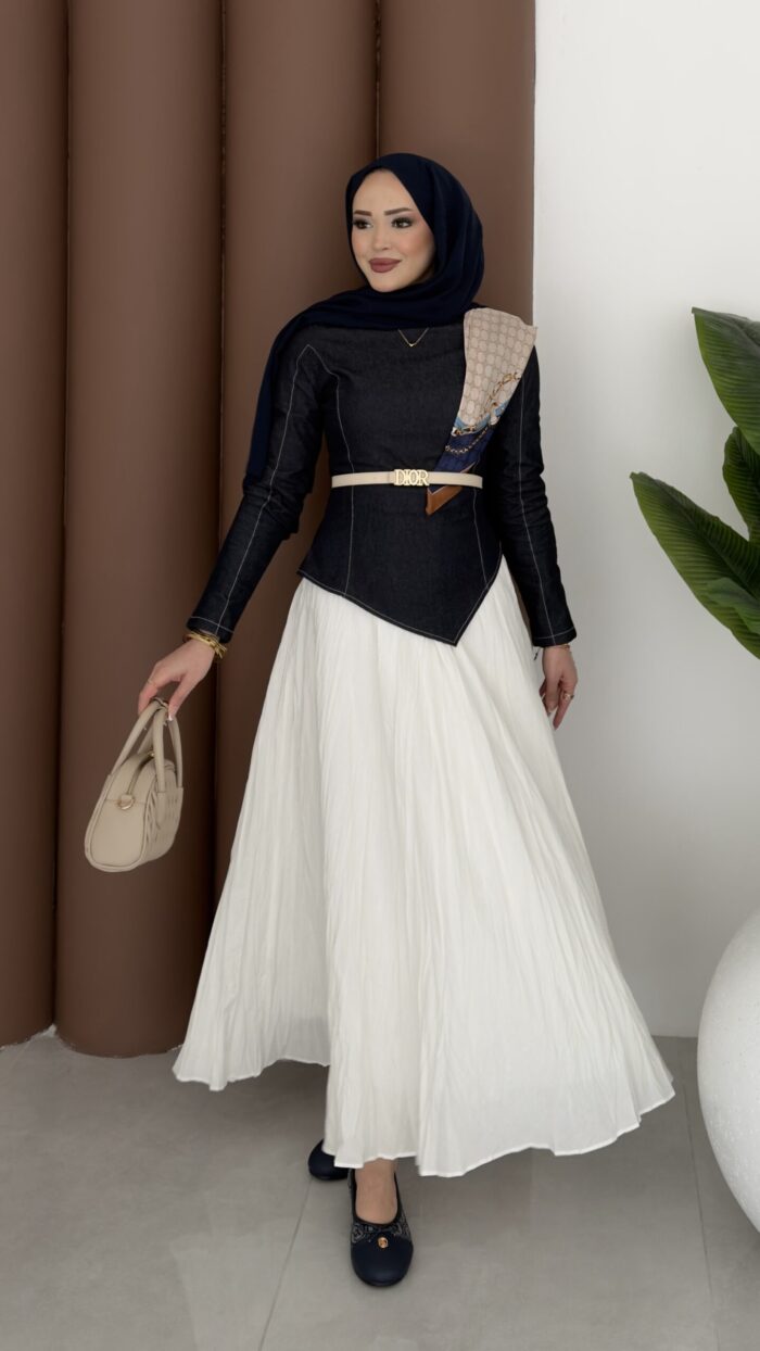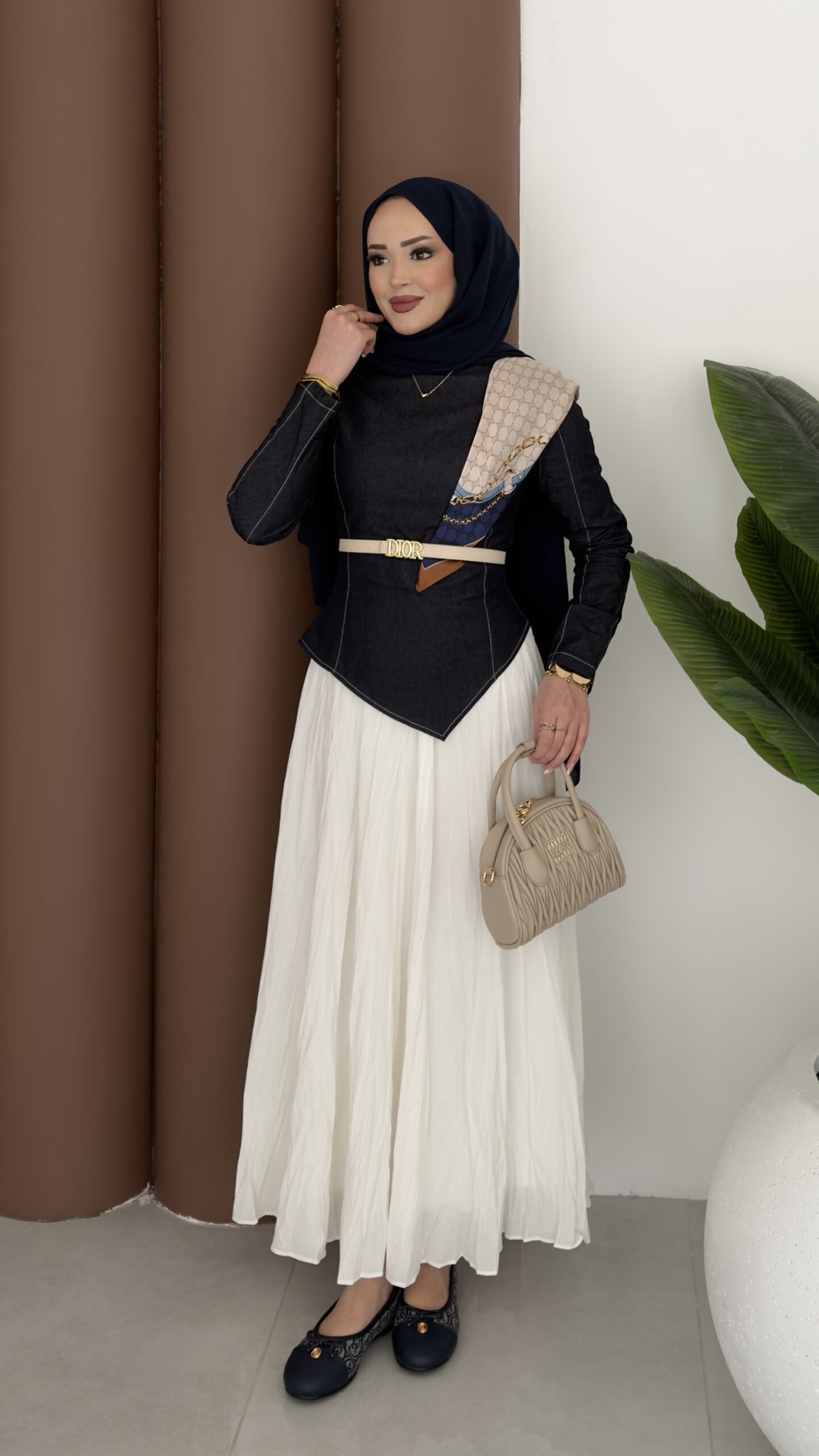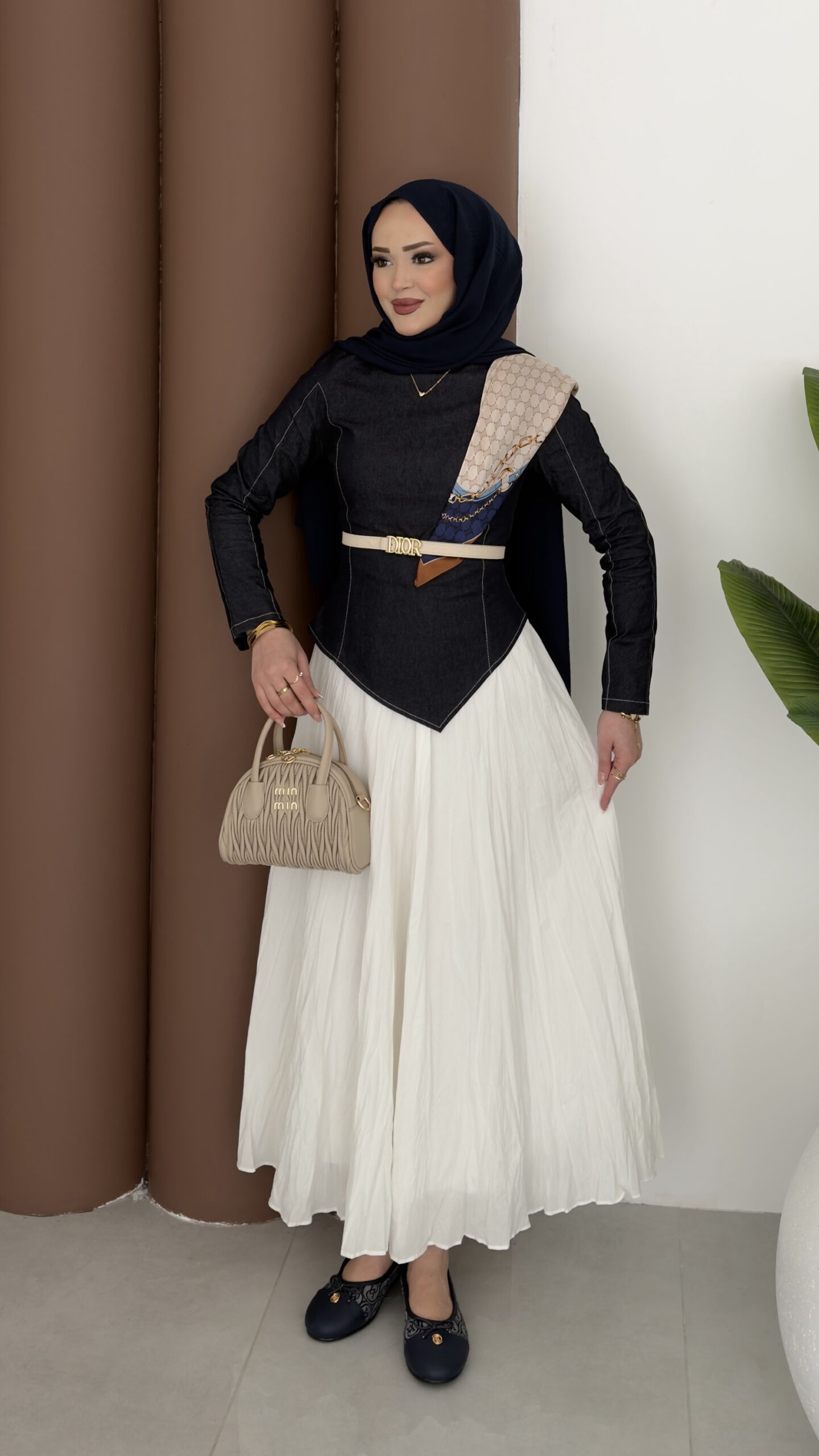 Ürün Kumaşı: Üst:( Kot), Etek: (Crush) Kumaştır