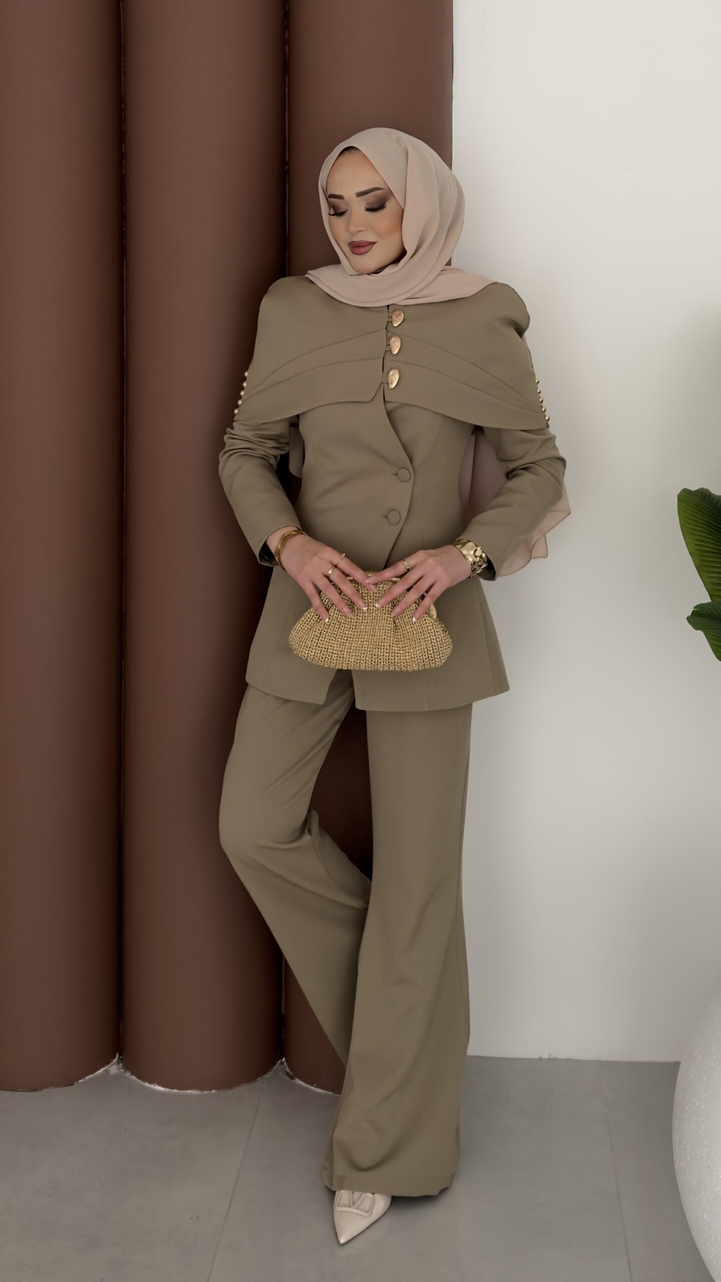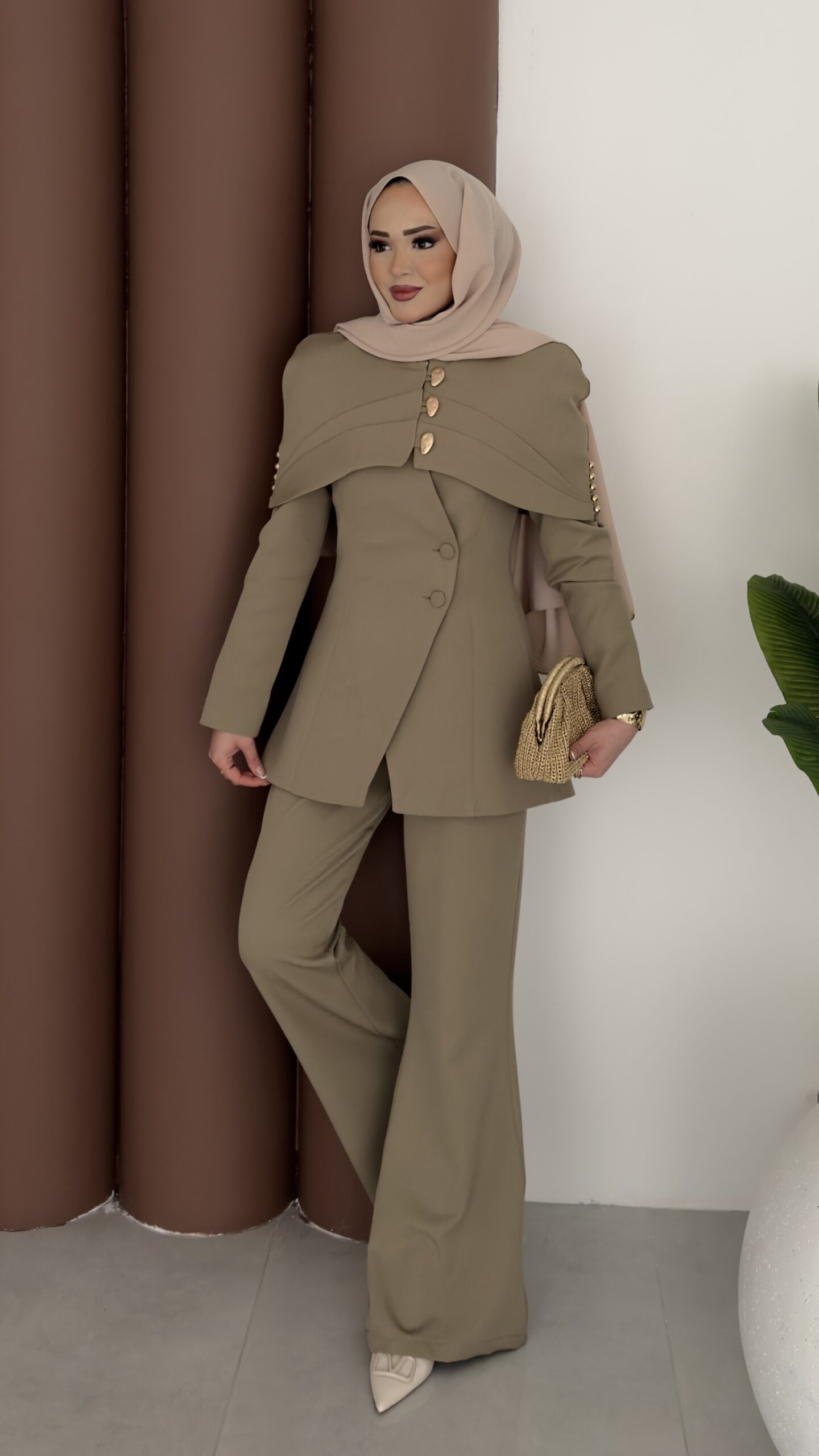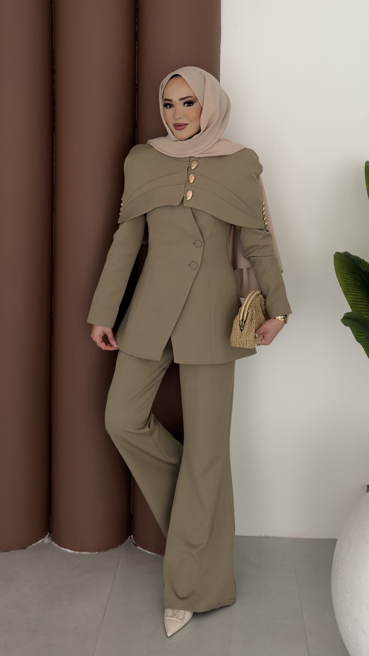 Deluxe Pelerin Blazer İkili Takım – Haki