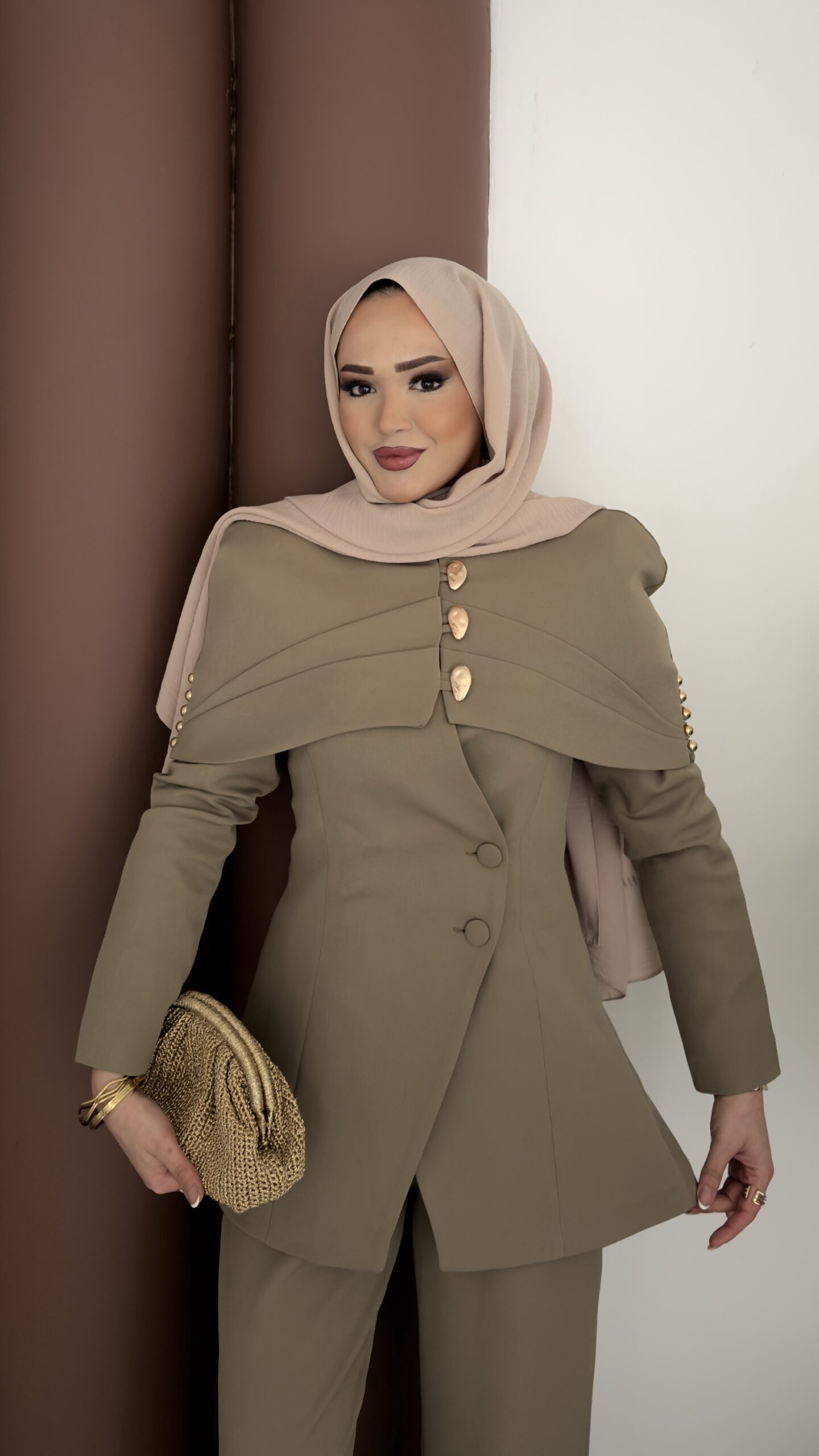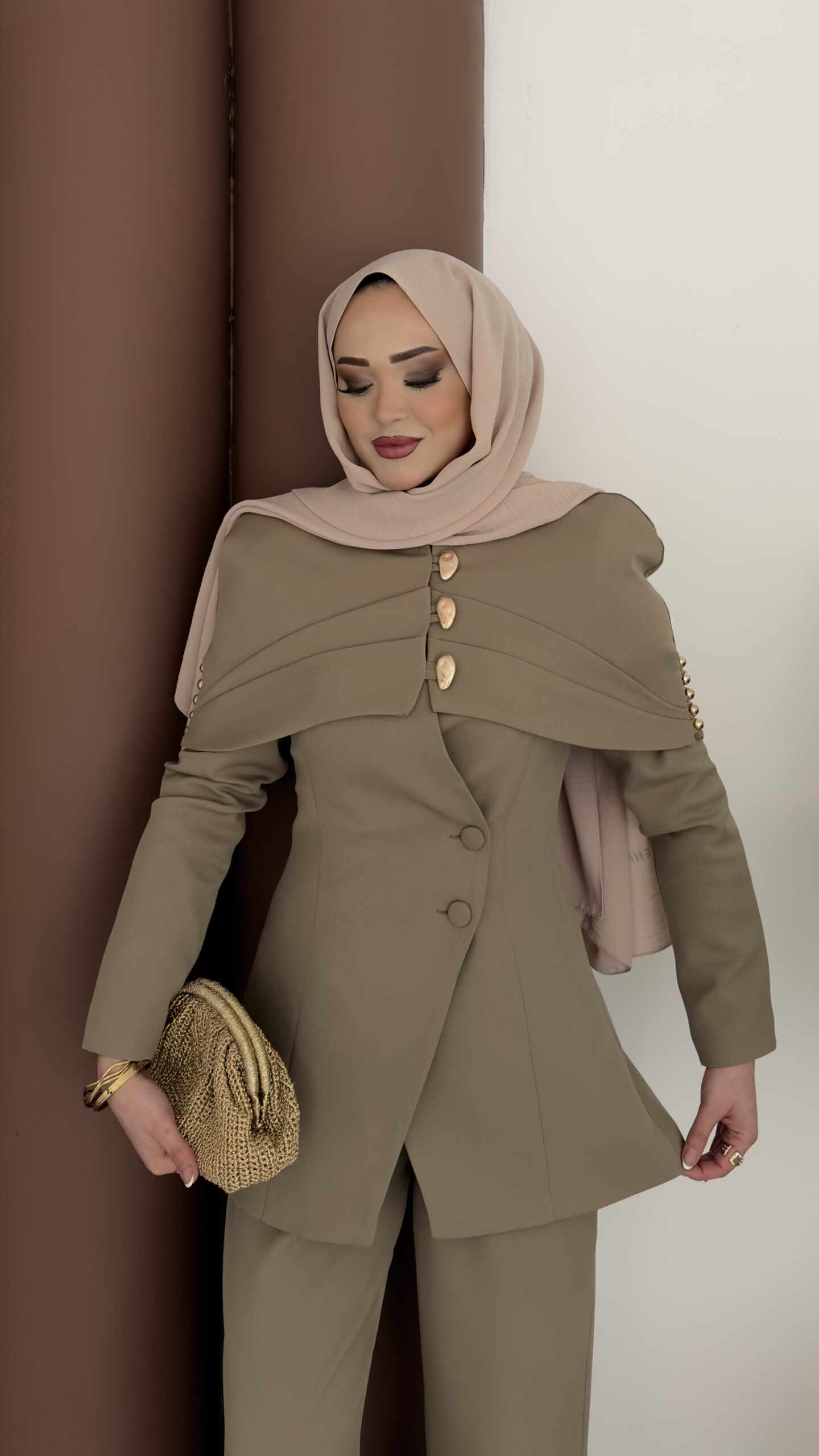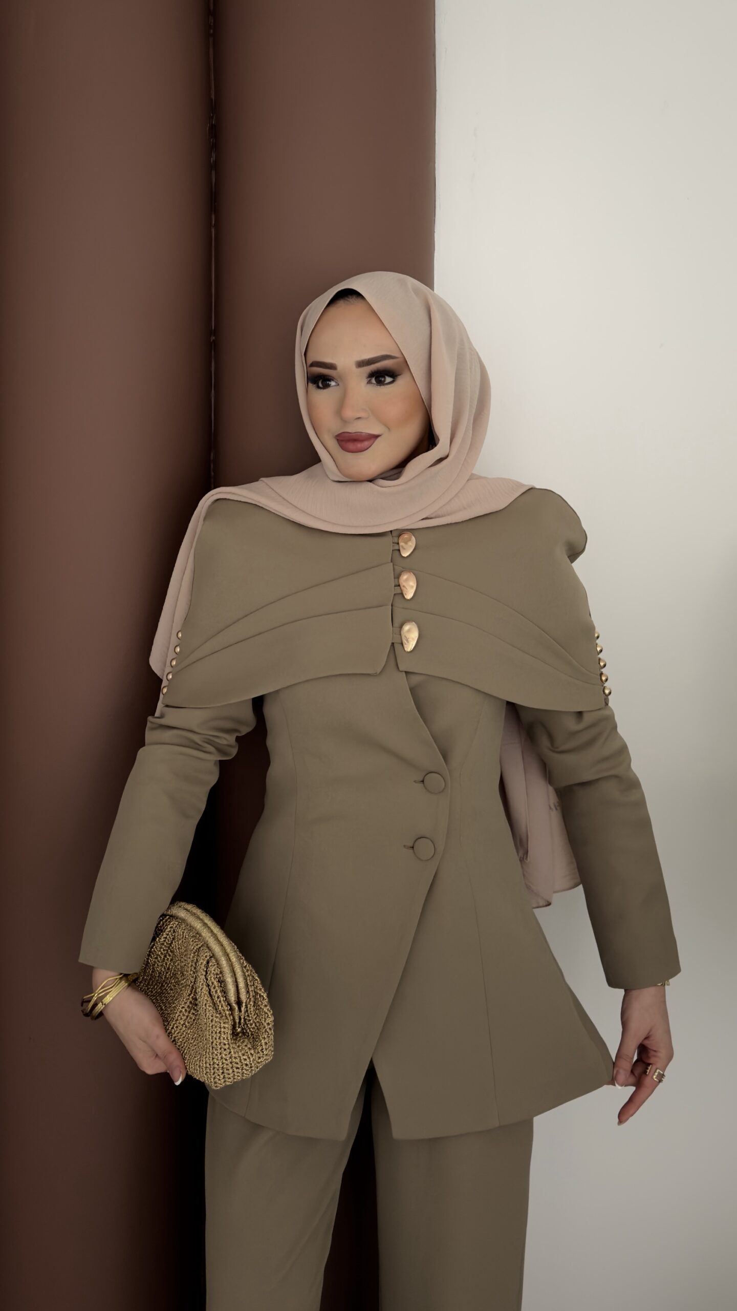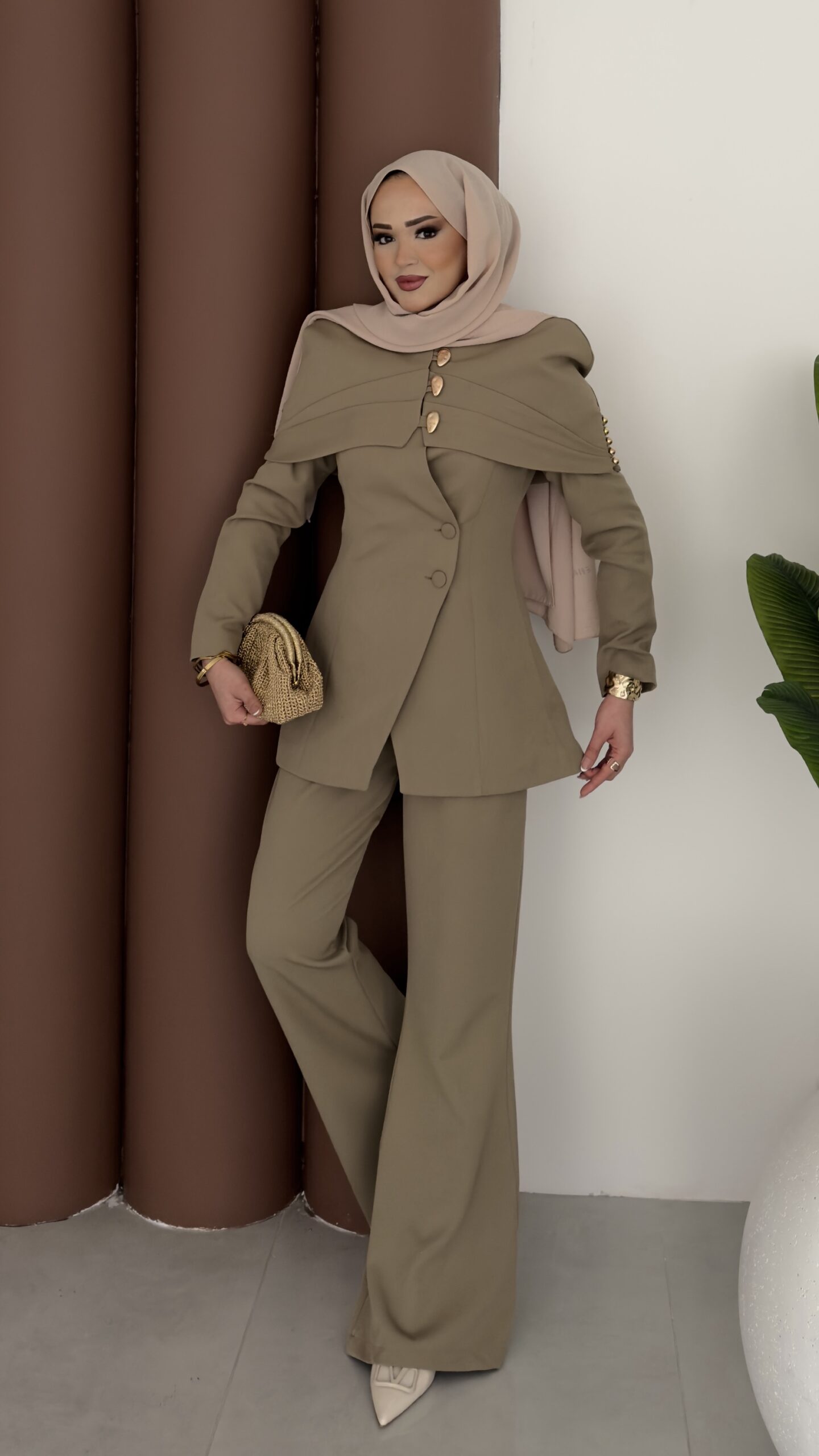Deluxe Pelerin Blazer İkili Takım – Haki