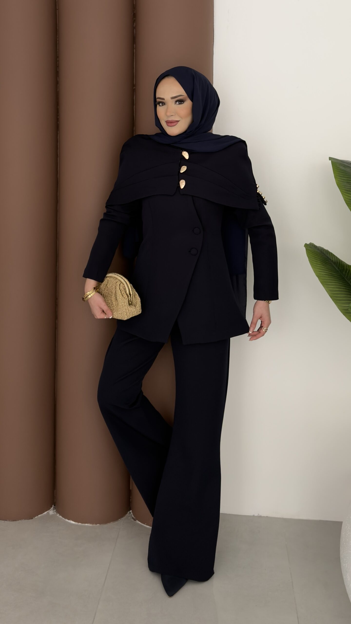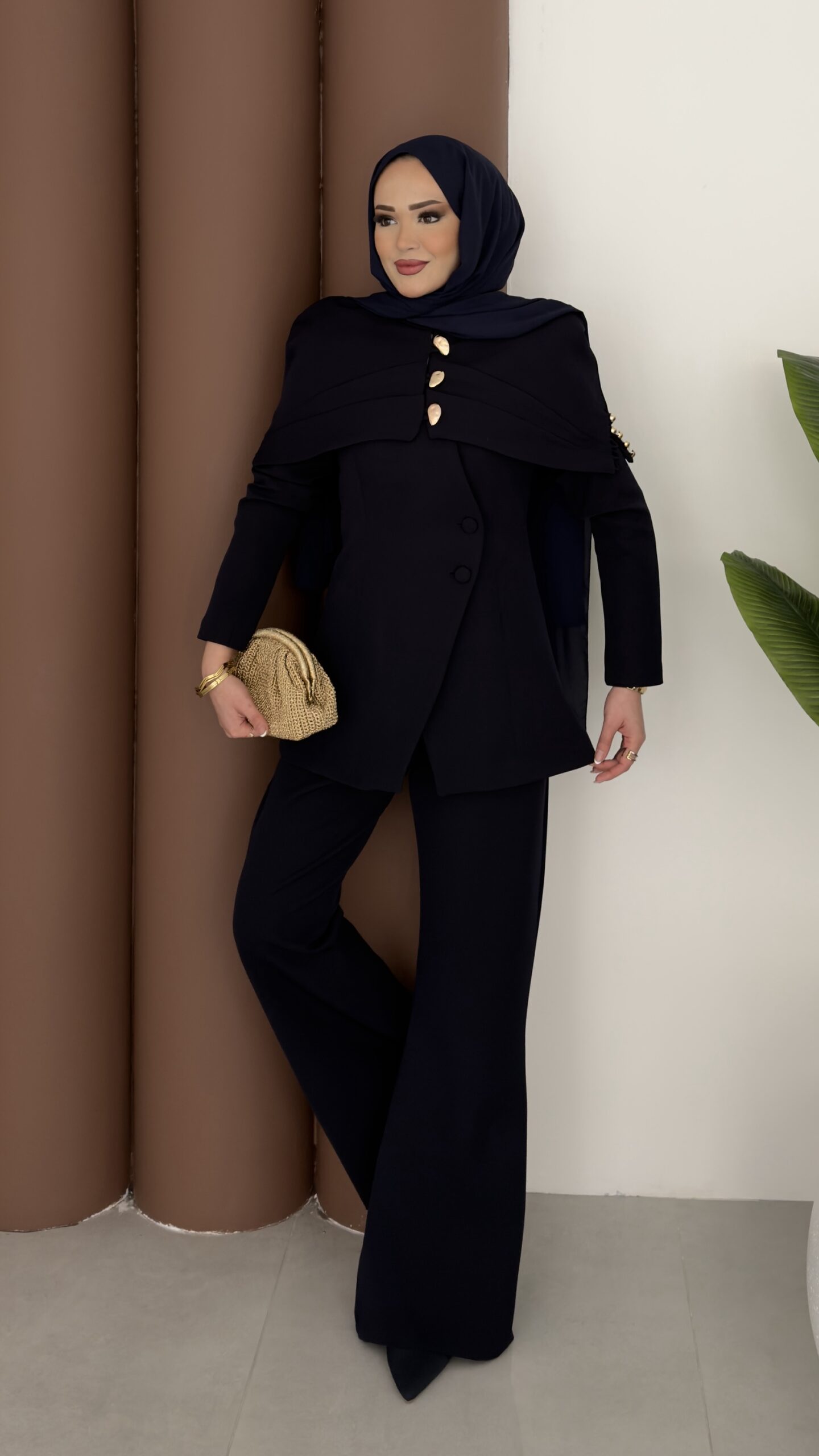 Deluxe Pelerin Blazer İkili Takım – Lacivert