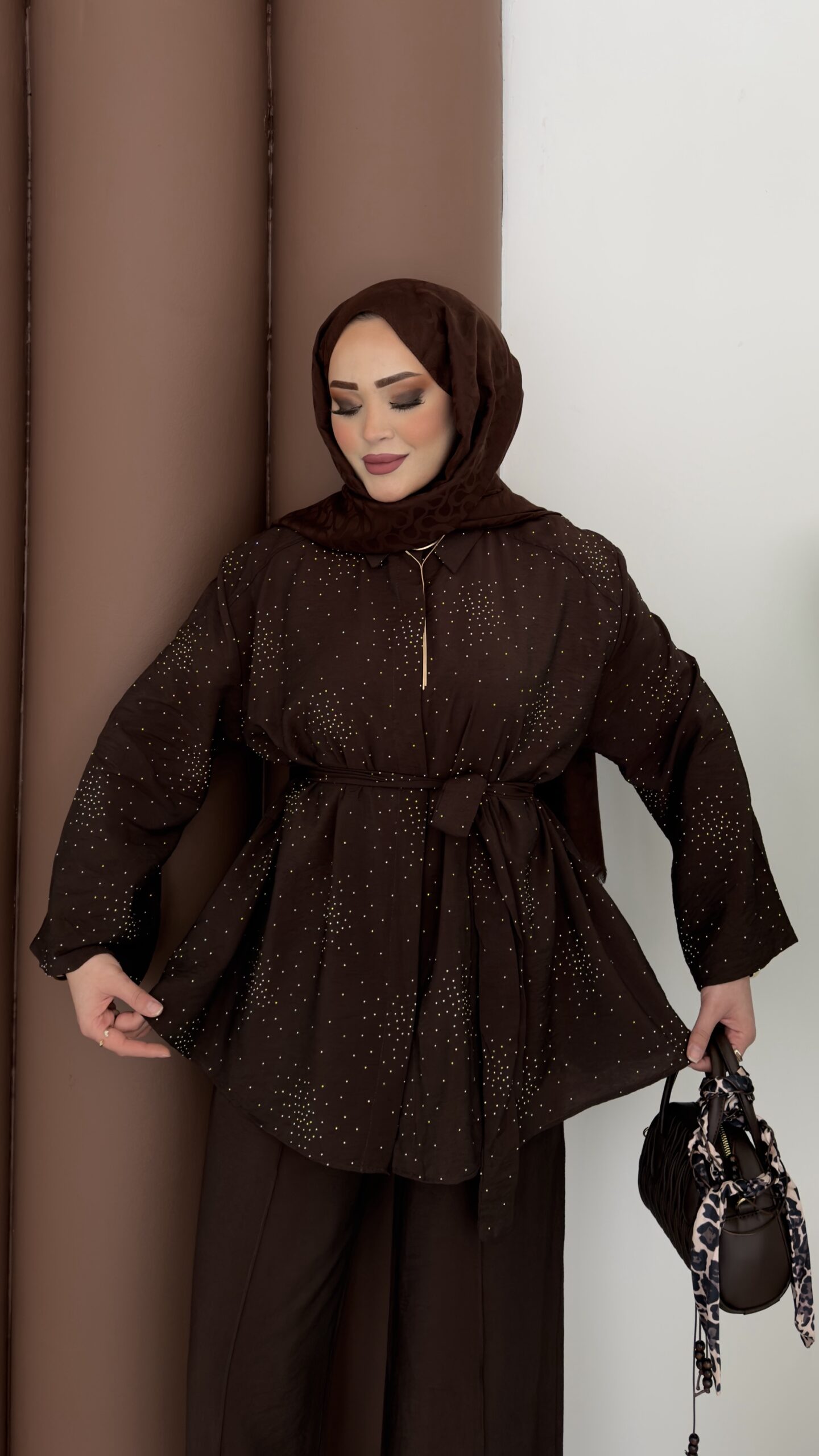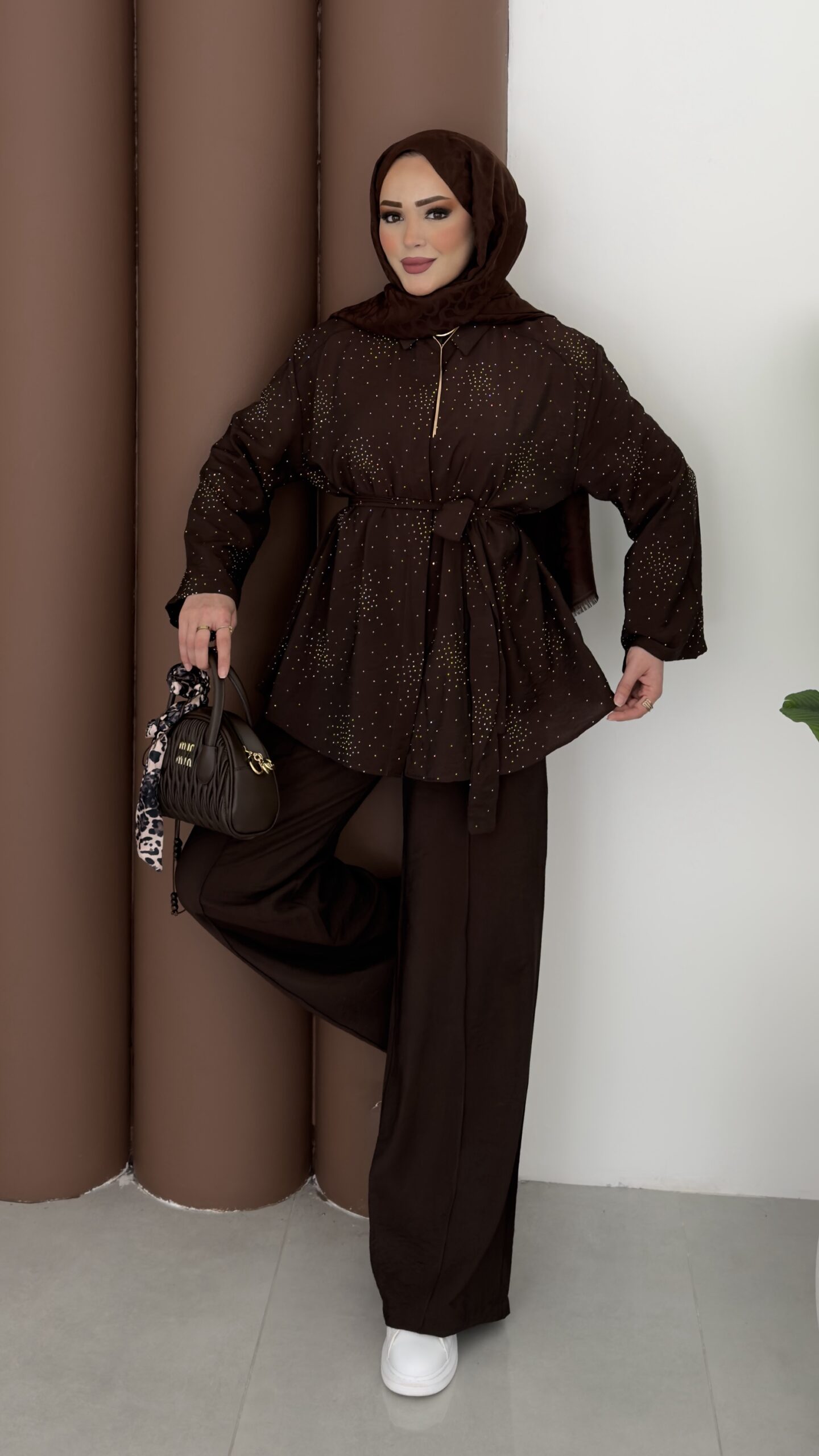 Diamond Tensel Kuşaklı İkili Takım – Kahverengi