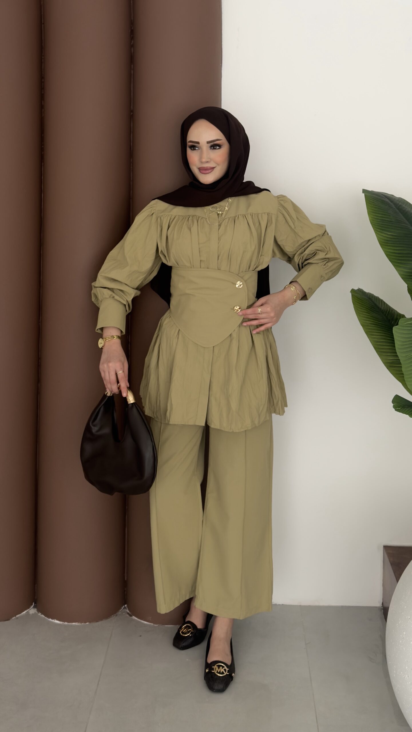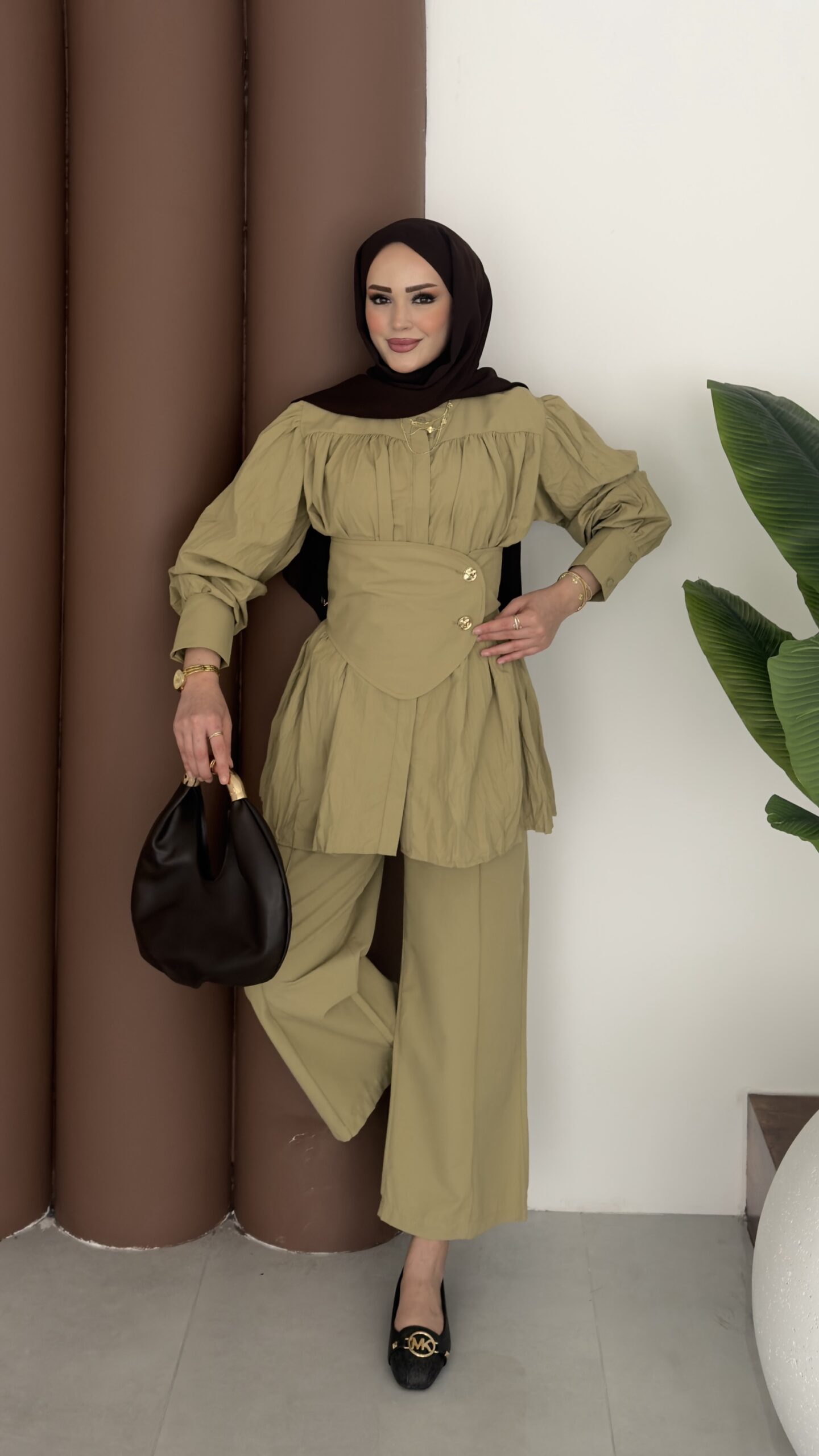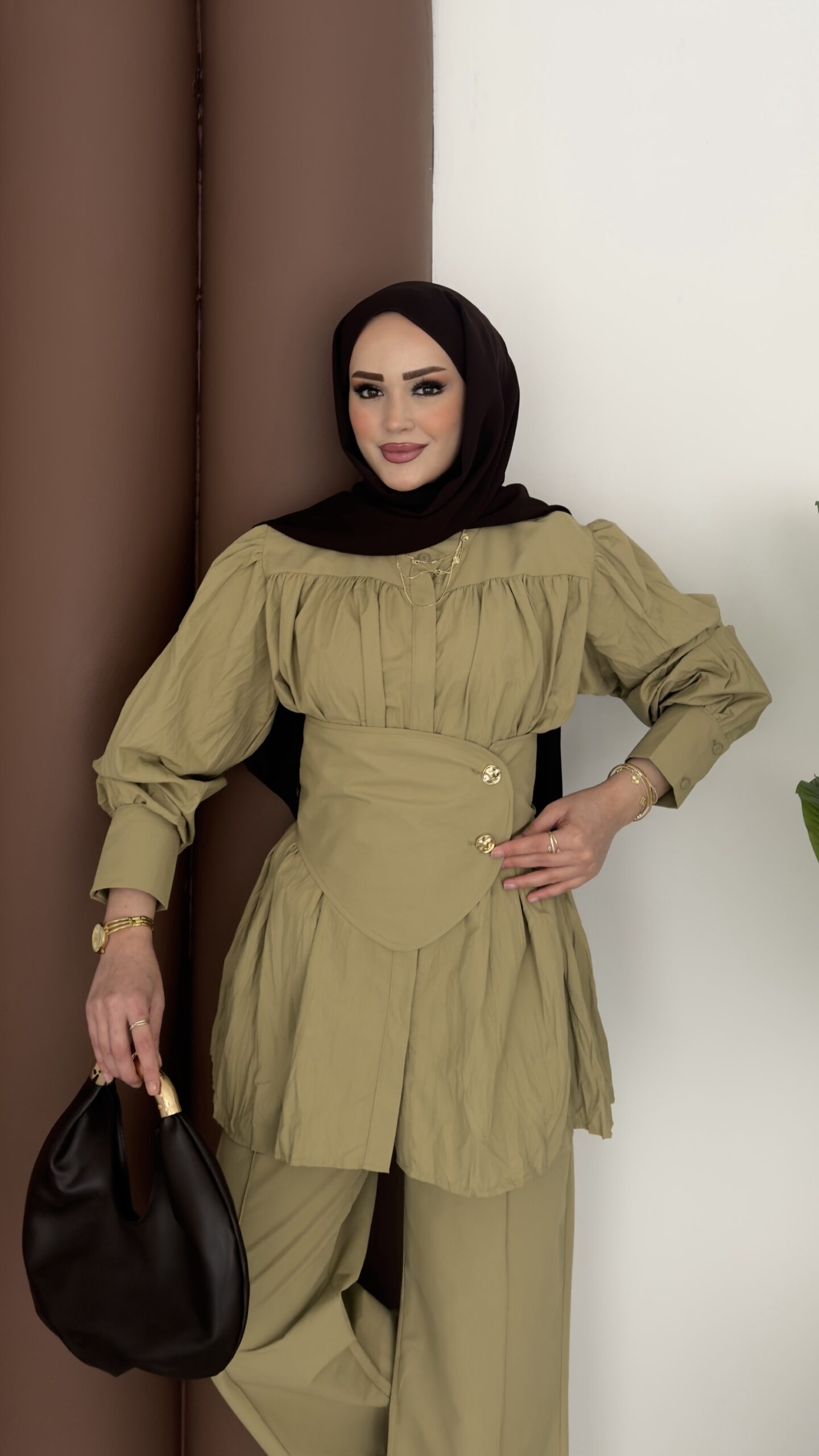Diana Kraş Poplin İkili Takım – Yağyeşil