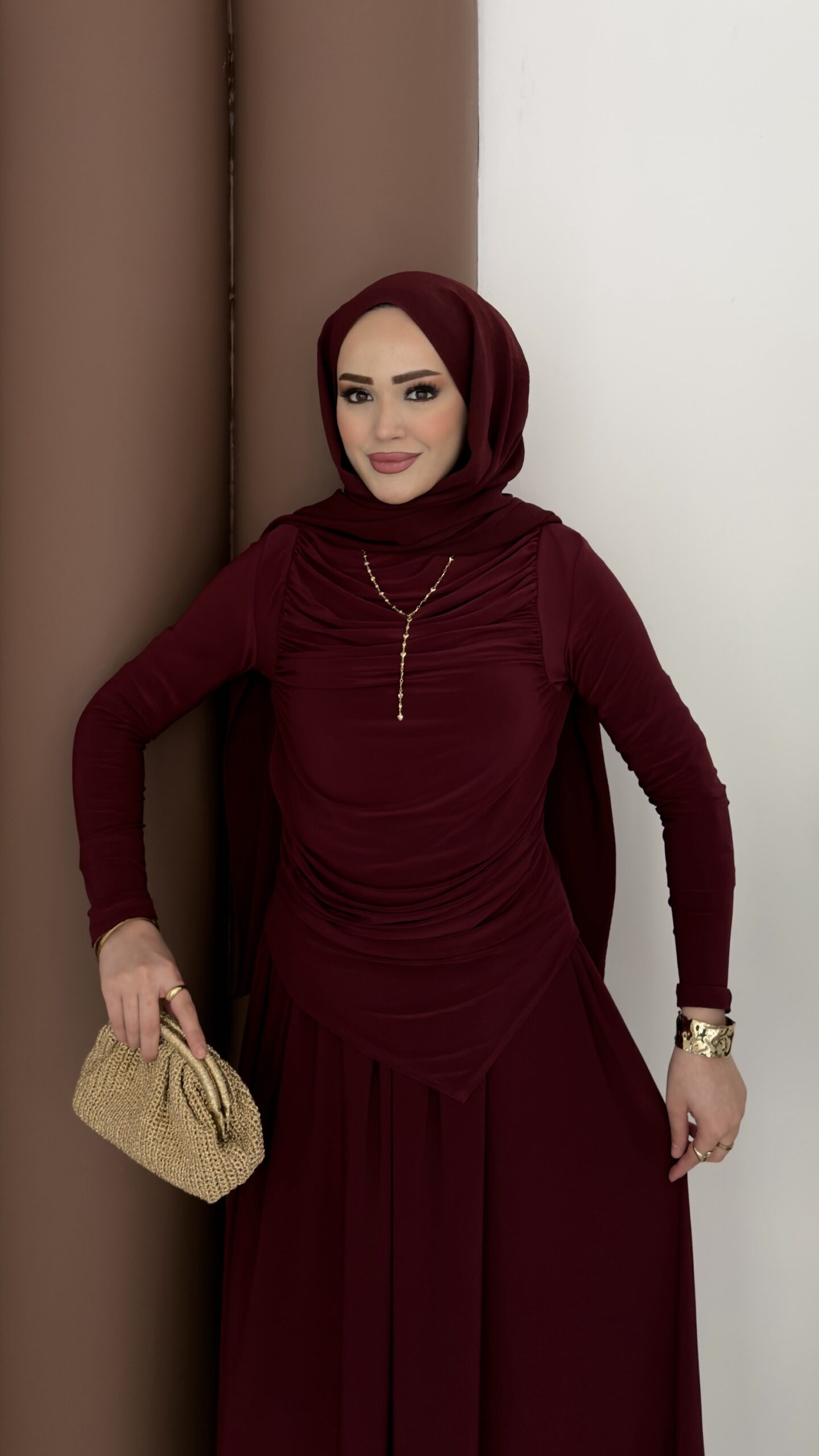 Muadil Biye Detaylı Etek İkili Takım – Kahverengi
