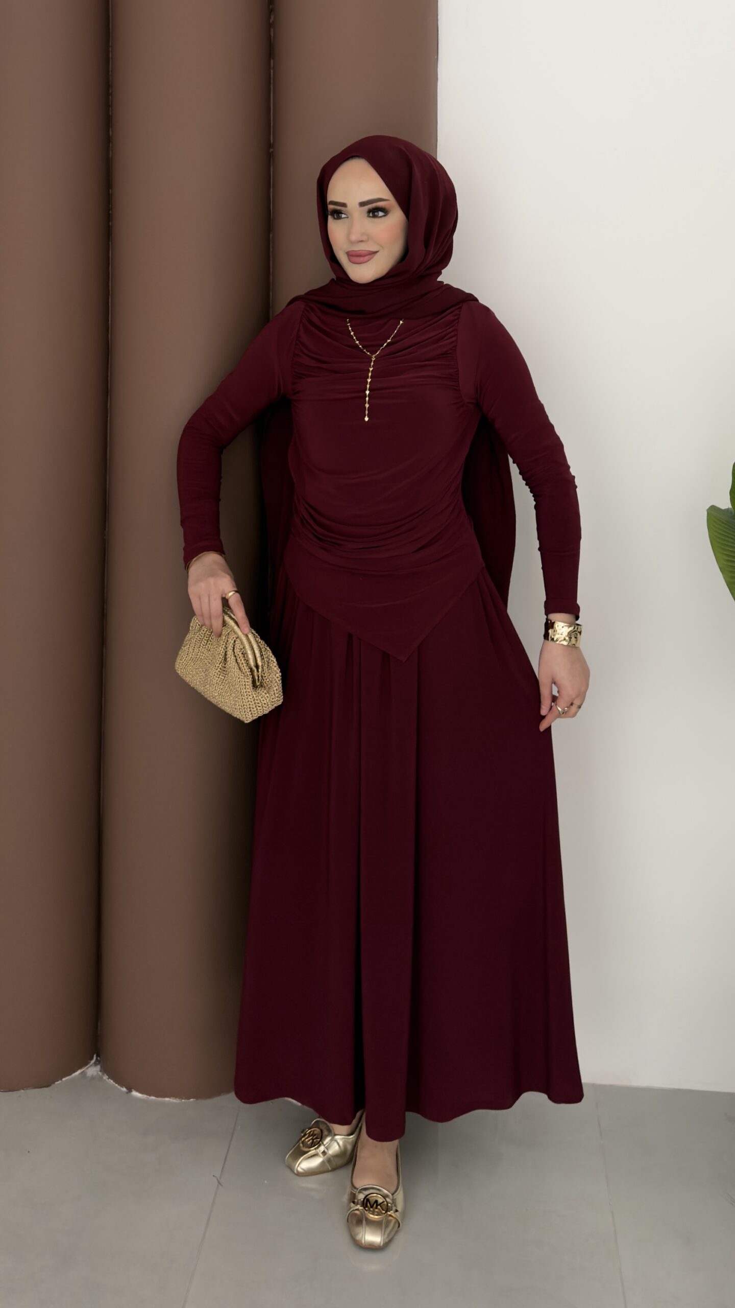 Drapeli Sandy Etekli İkili Takım – Bordo