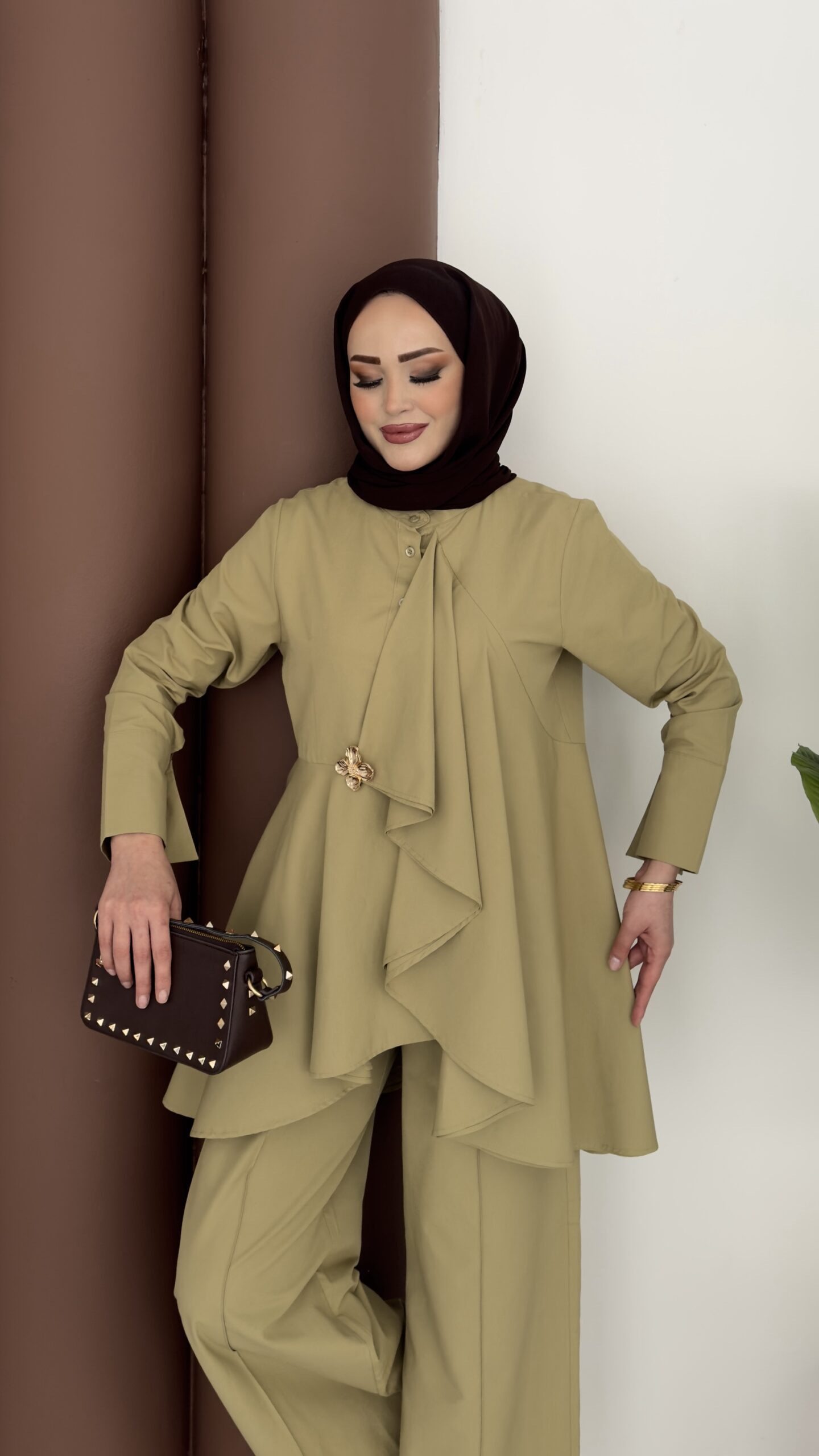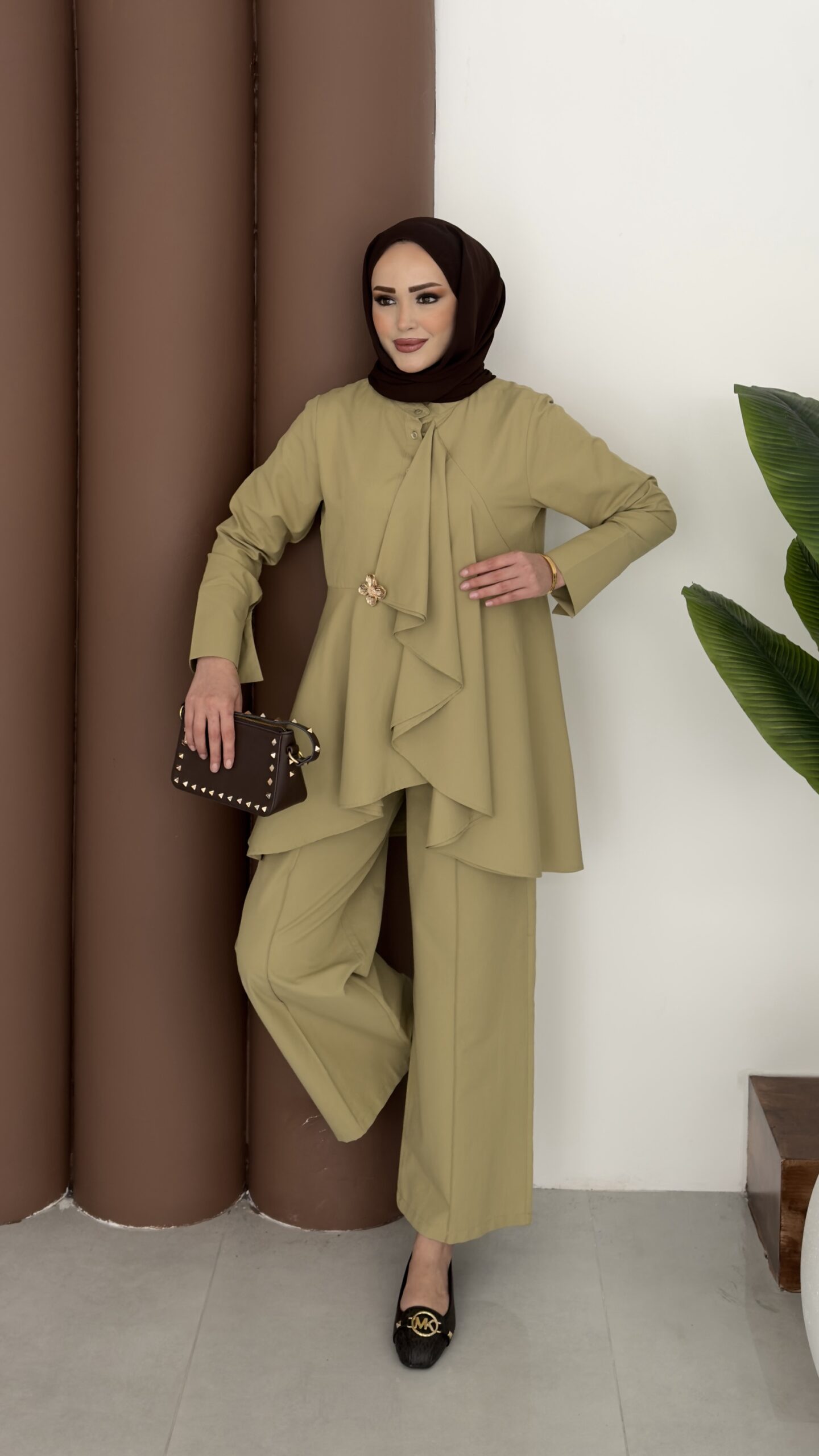 Moila Bronşlu Tensel İkili Takım – Yağ Yeşil