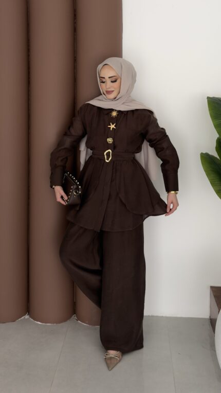 Bohem İncili Müslin İkili Takım – Kahverengi