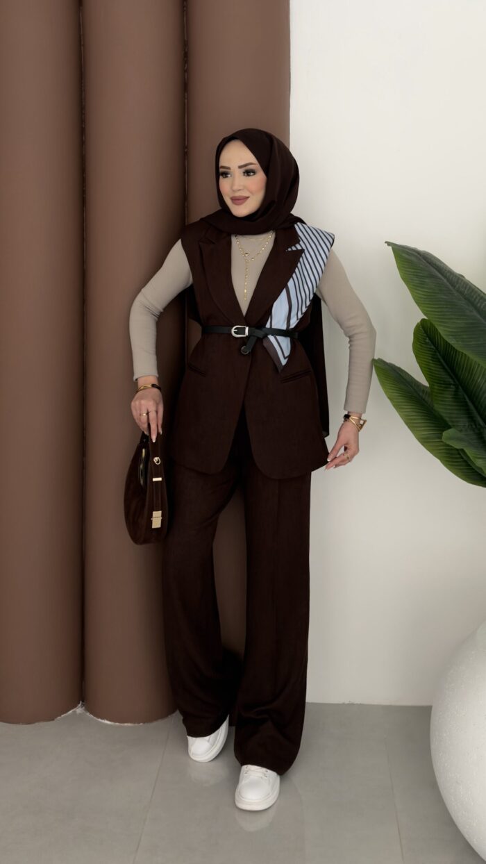 Dufy Kemerli Yelek İkili Takım – Kahverengi