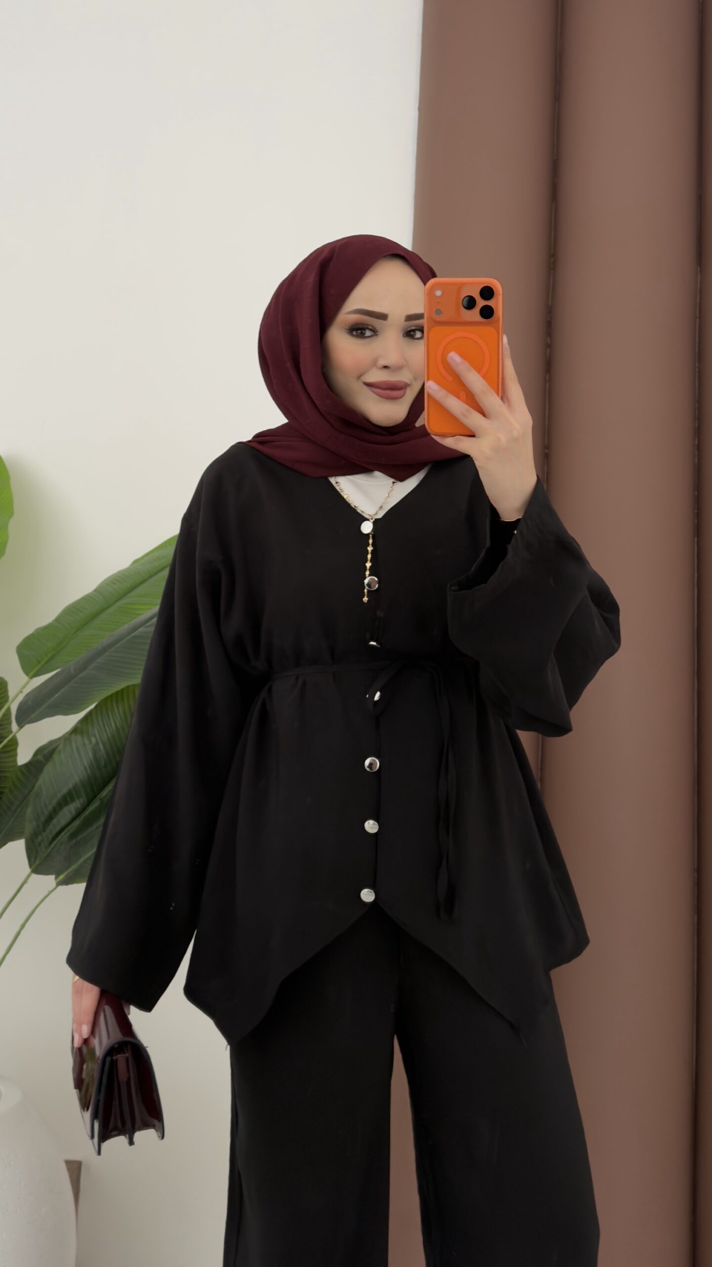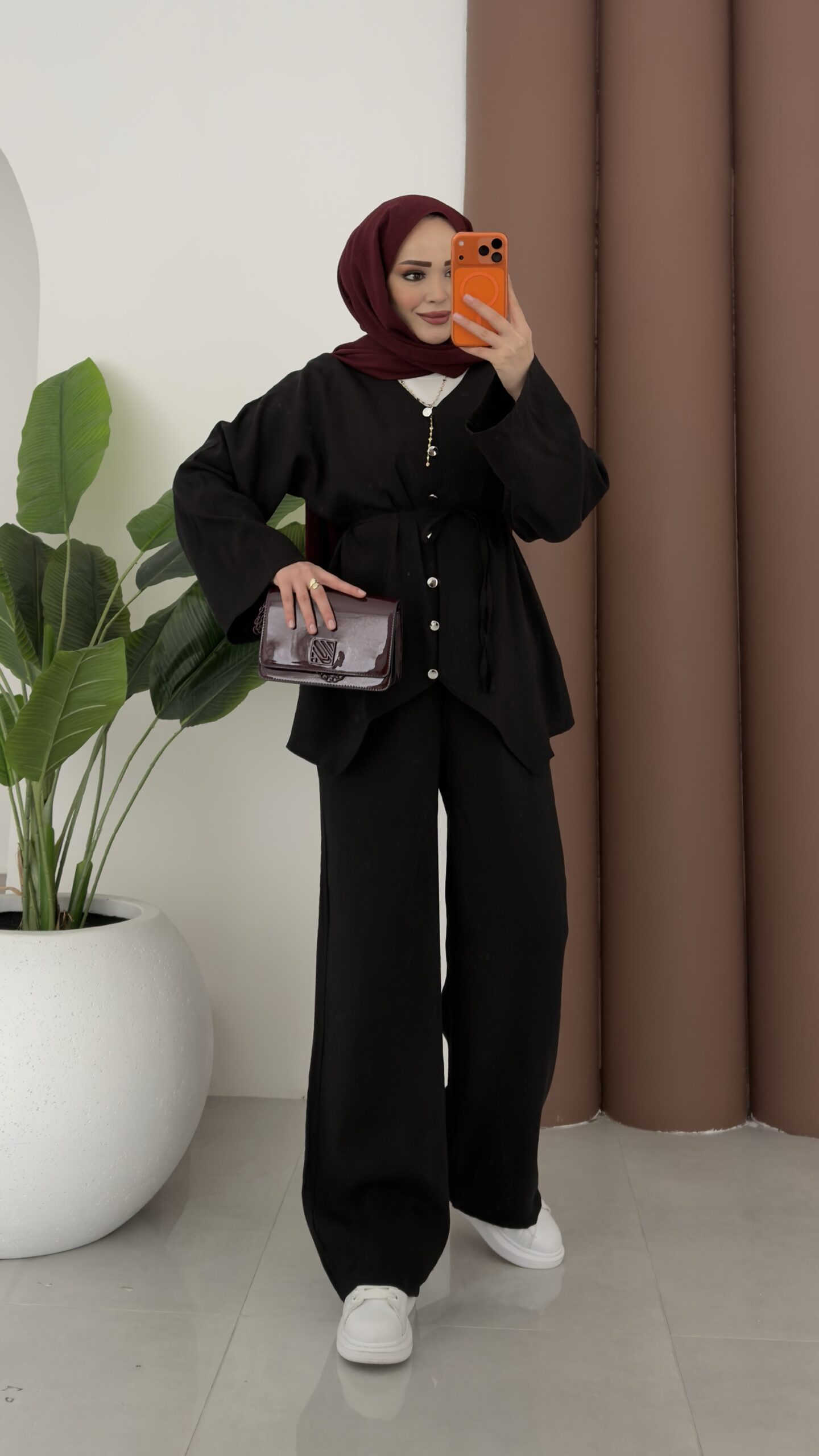Helen Düğmeli Tensel İkili Takım – Siyah
