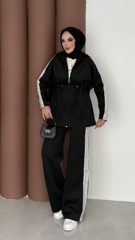 Glow Fermuarlı Scuba İkili Takım – Siyah