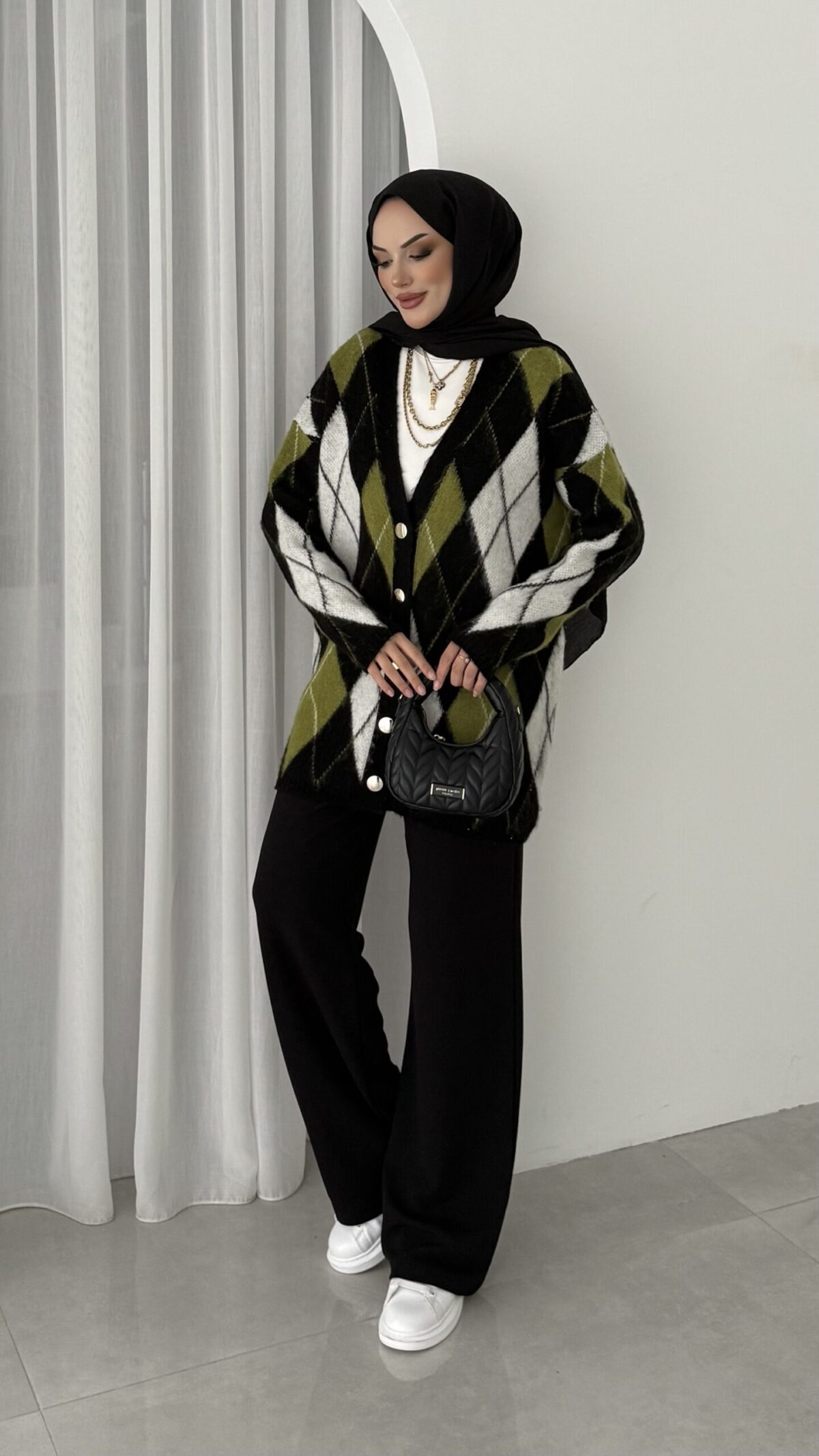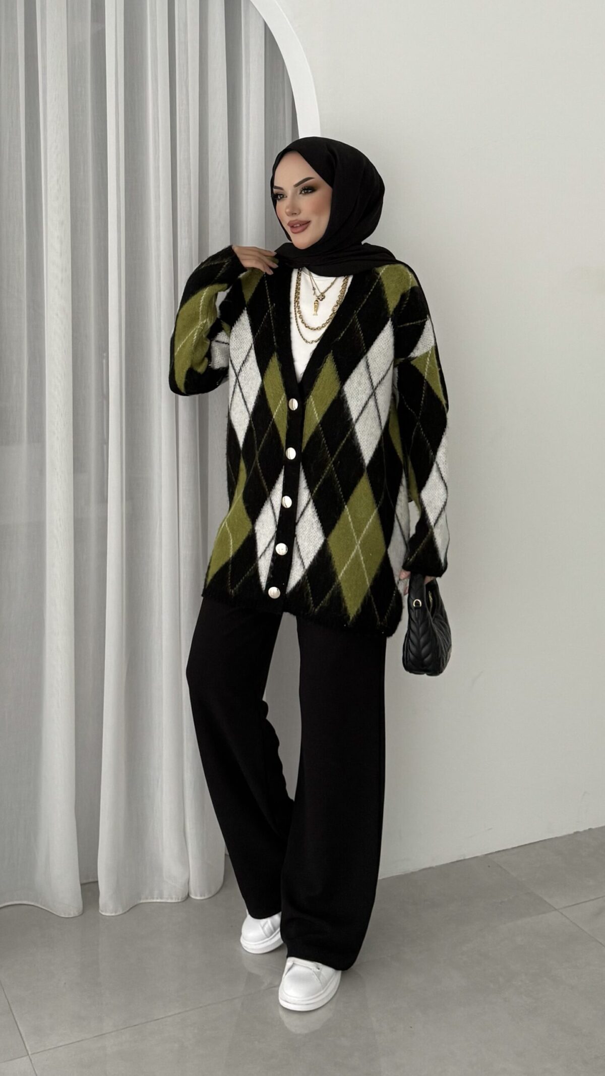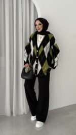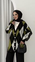 Baklava Desen Muadil Hırka – Siyah
